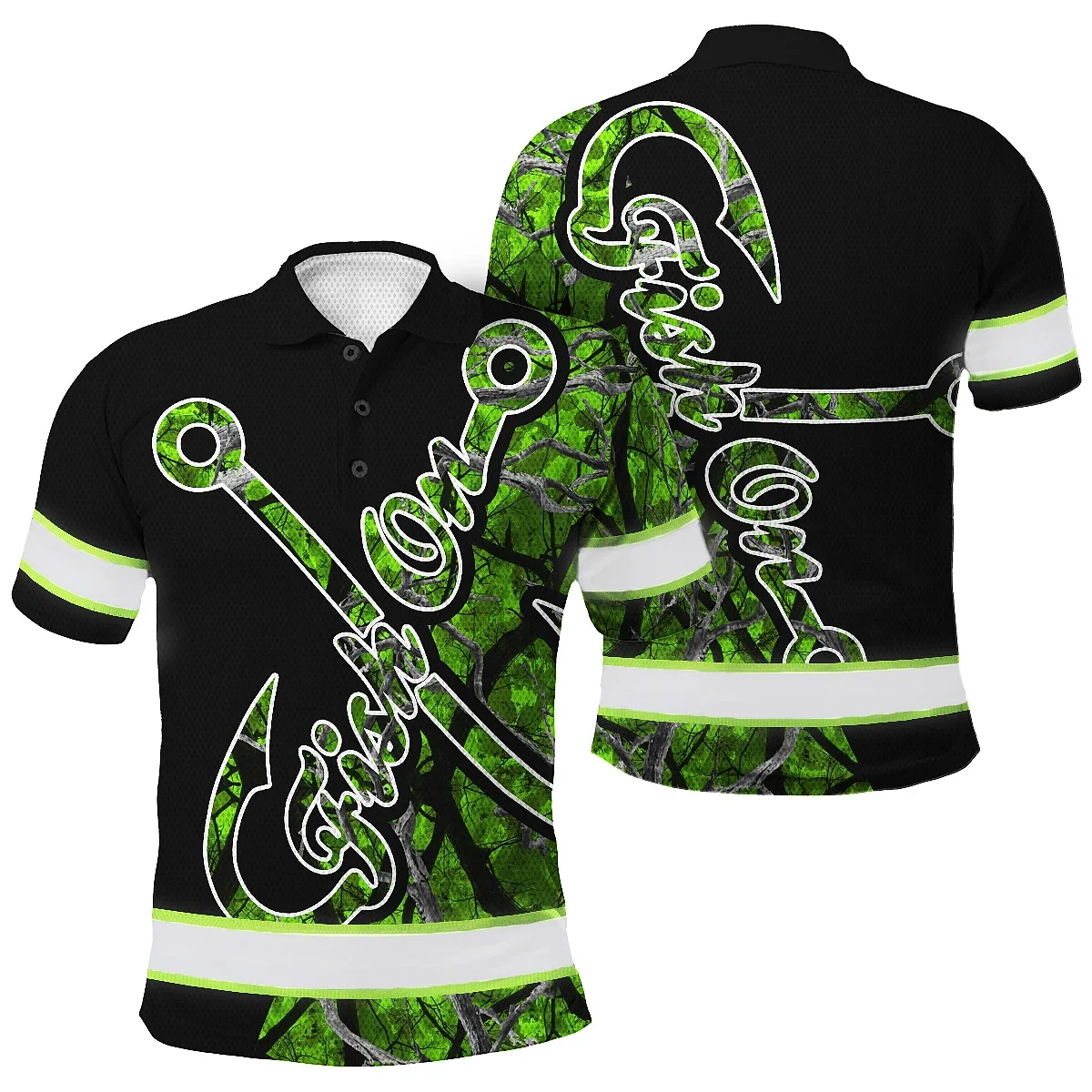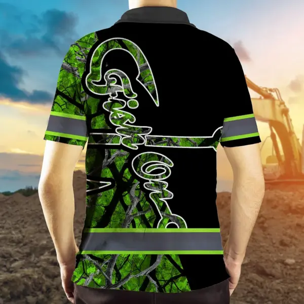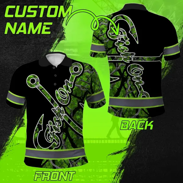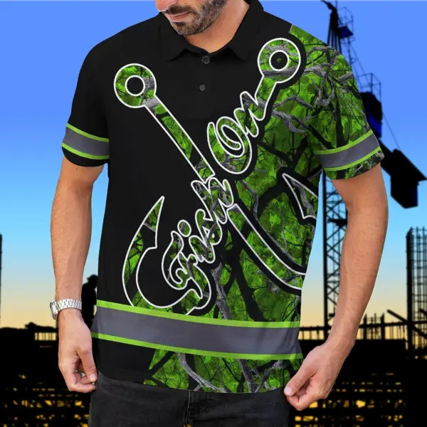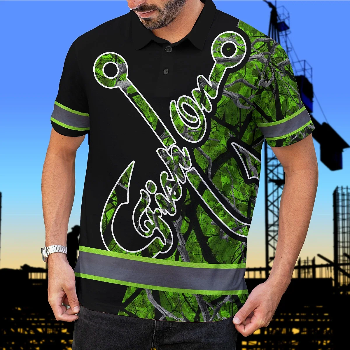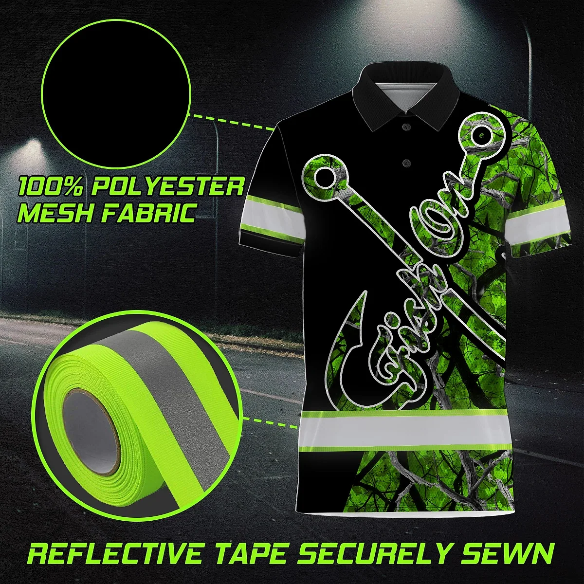 Hi Vis Polo Shirt Reflective Tapes Green Bass Fish Fishing Safety Workwear For Fishing Lovers Workers, Runners, Cyclists, Trucker, Operator, Patriotic