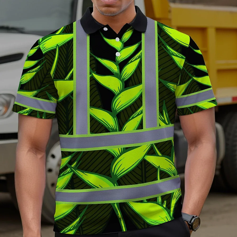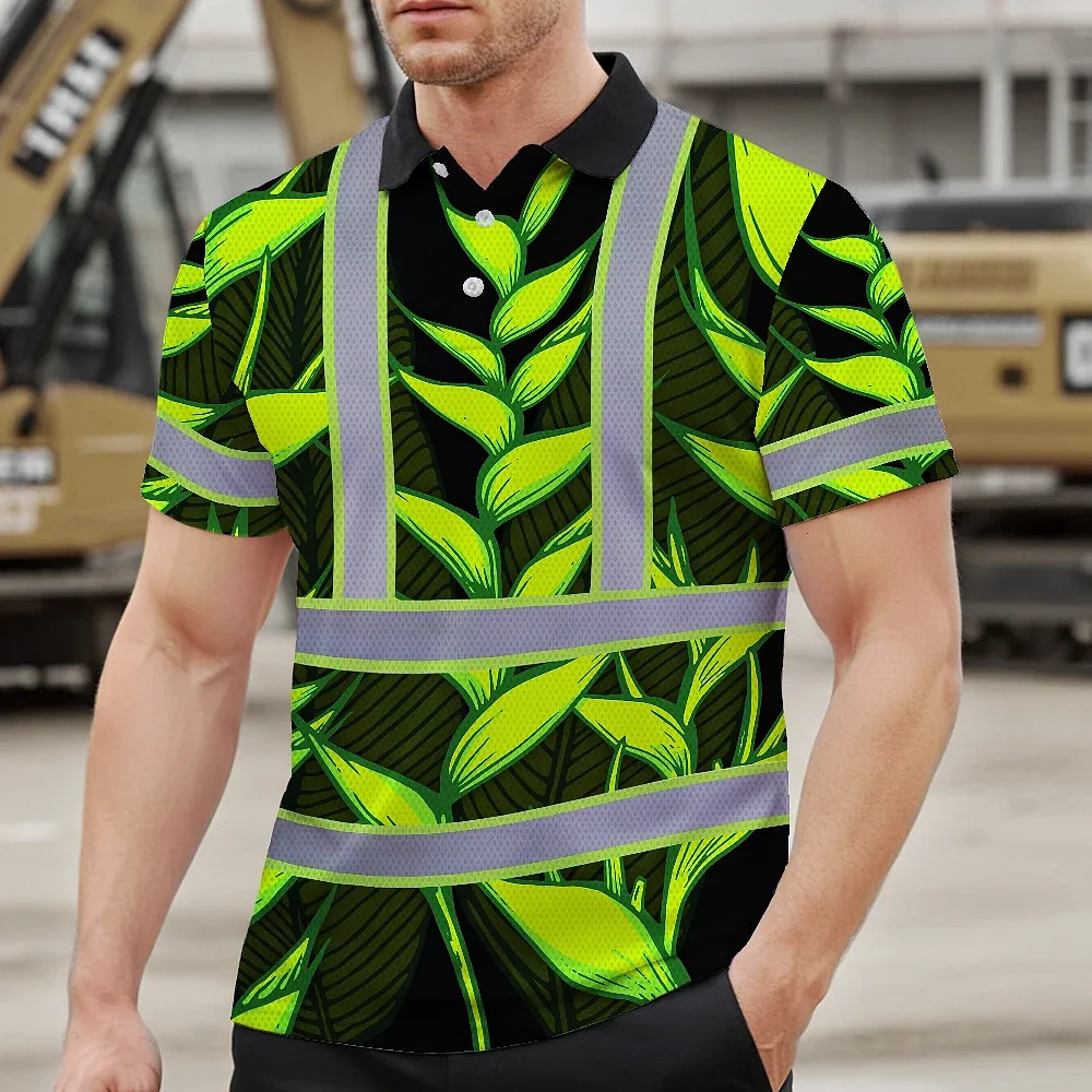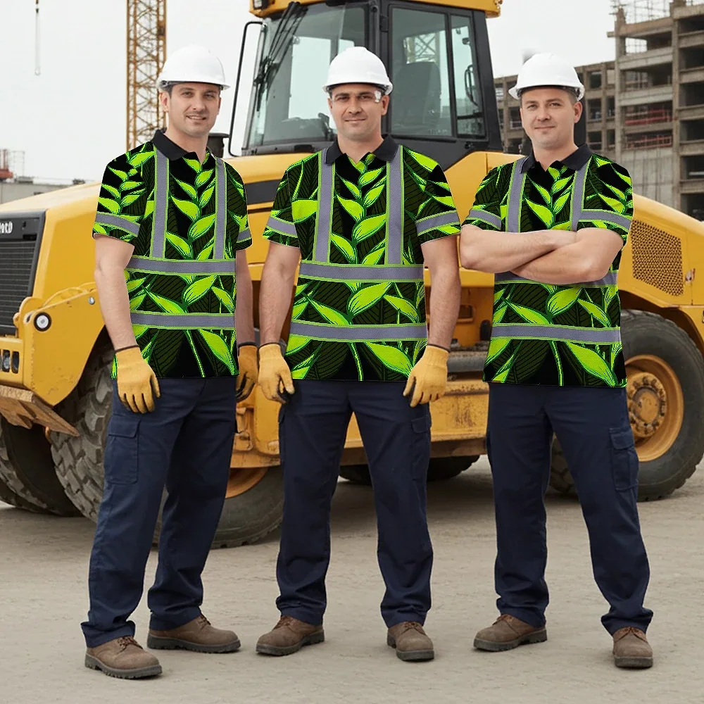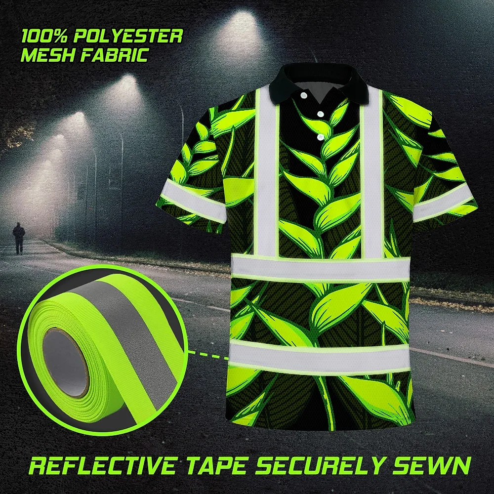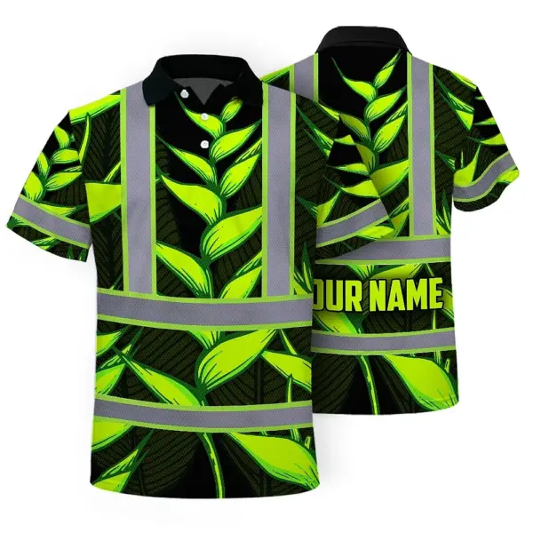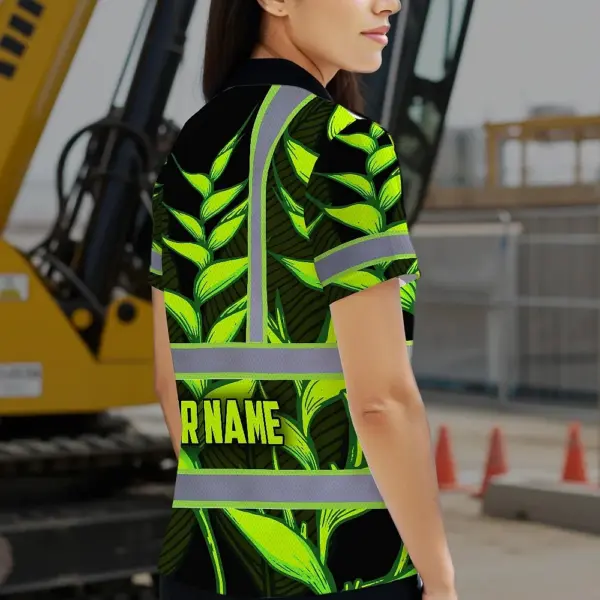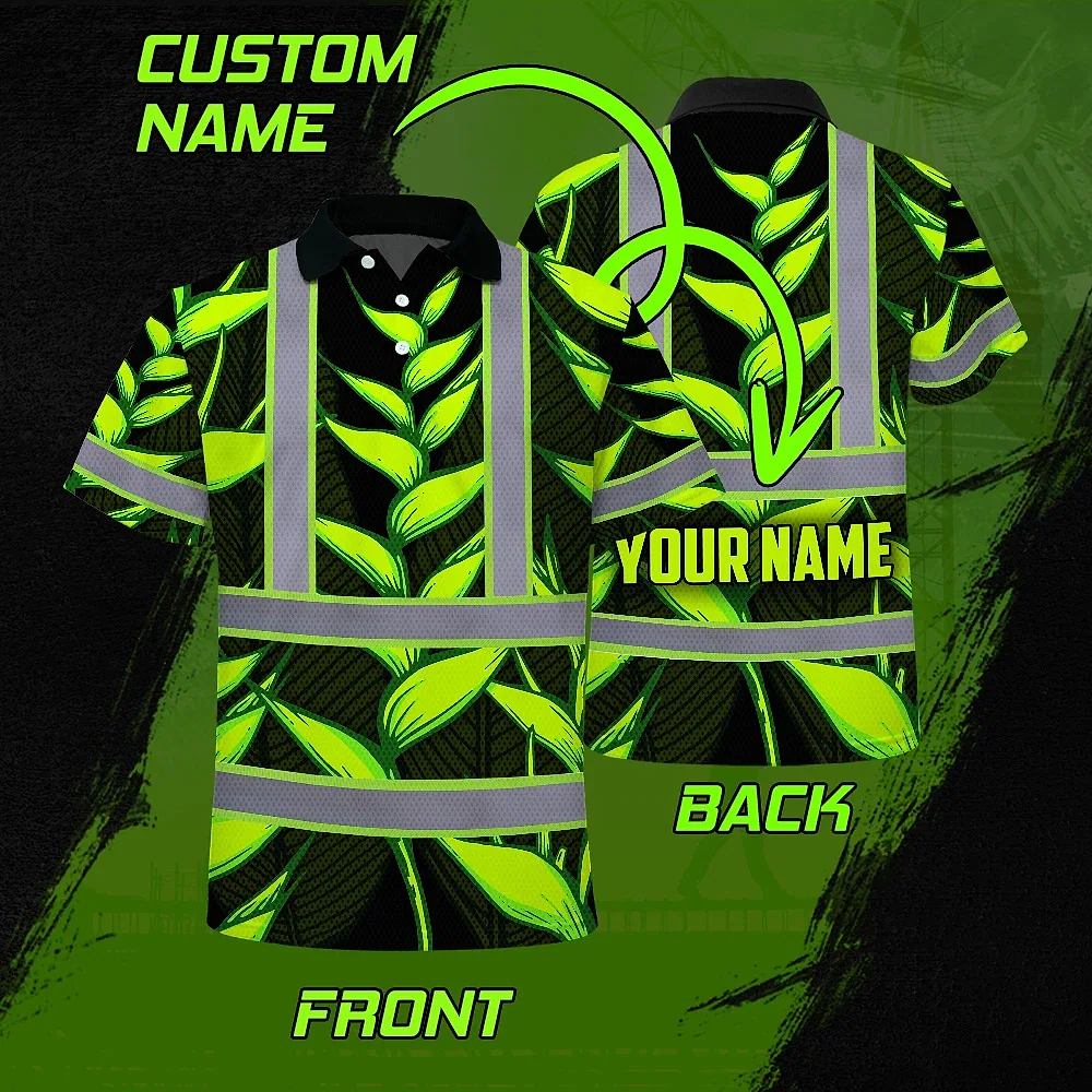 Hi Vis Polo Shirt Reflective Tapes Green Neon Black Heliconia Custom Name Safety Workwear For Workers, Truckers, Operators