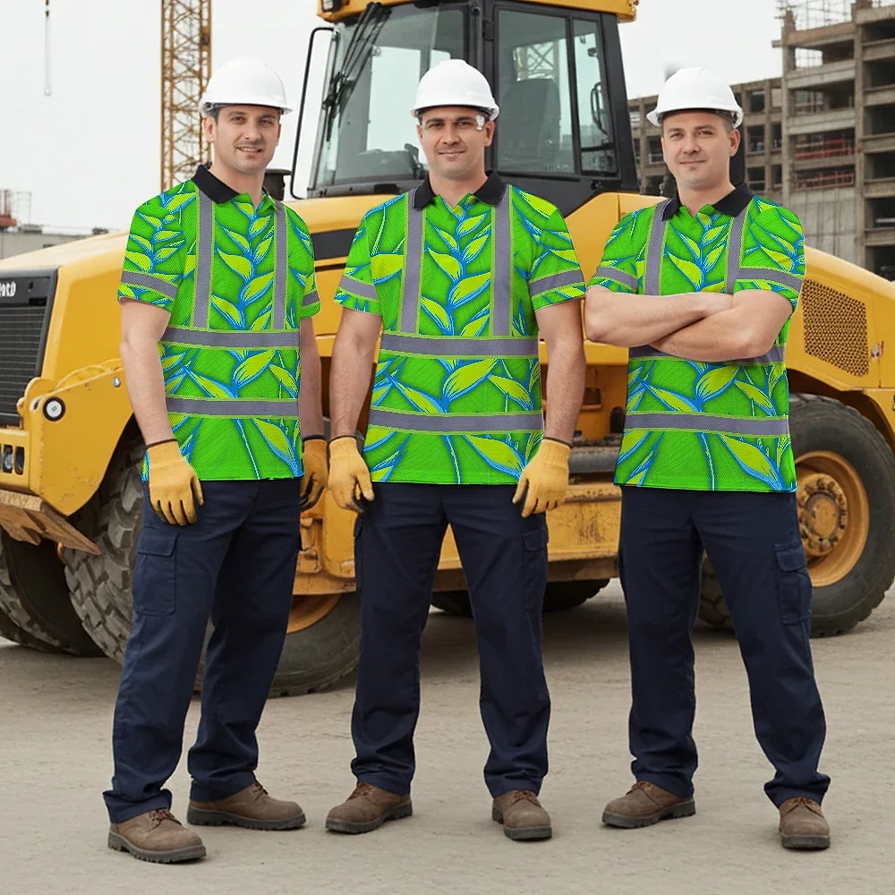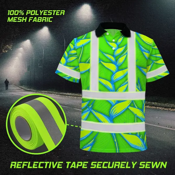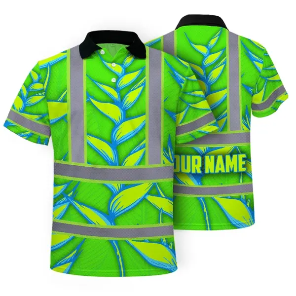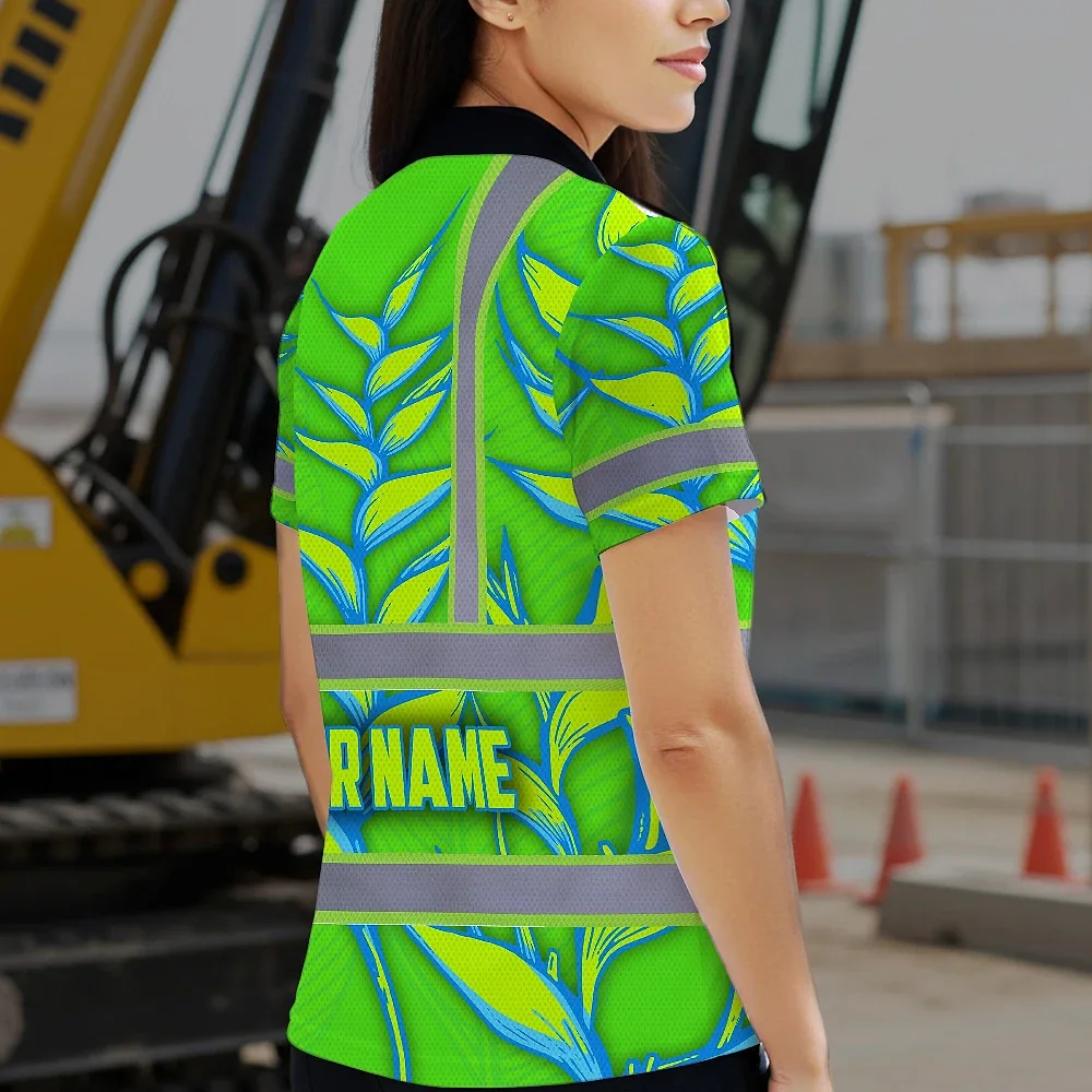 Hi Vis Polo Shirt Reflective Tapes Green Neon Blue Heliconia Custom Name Safety Workwear For Workers, Truckers, Operators