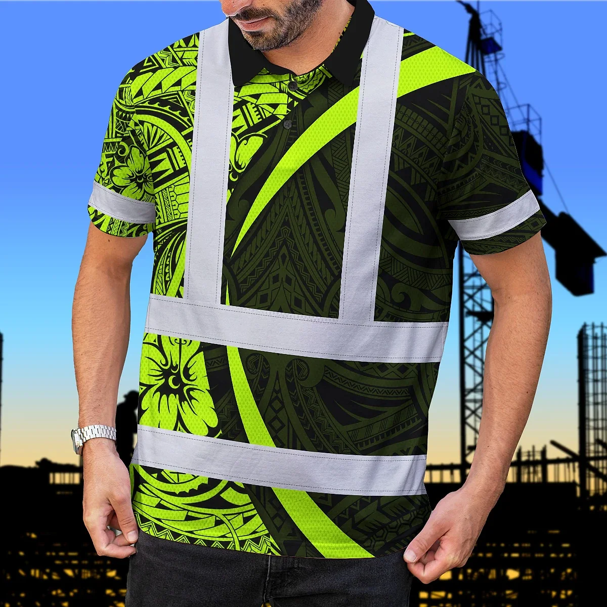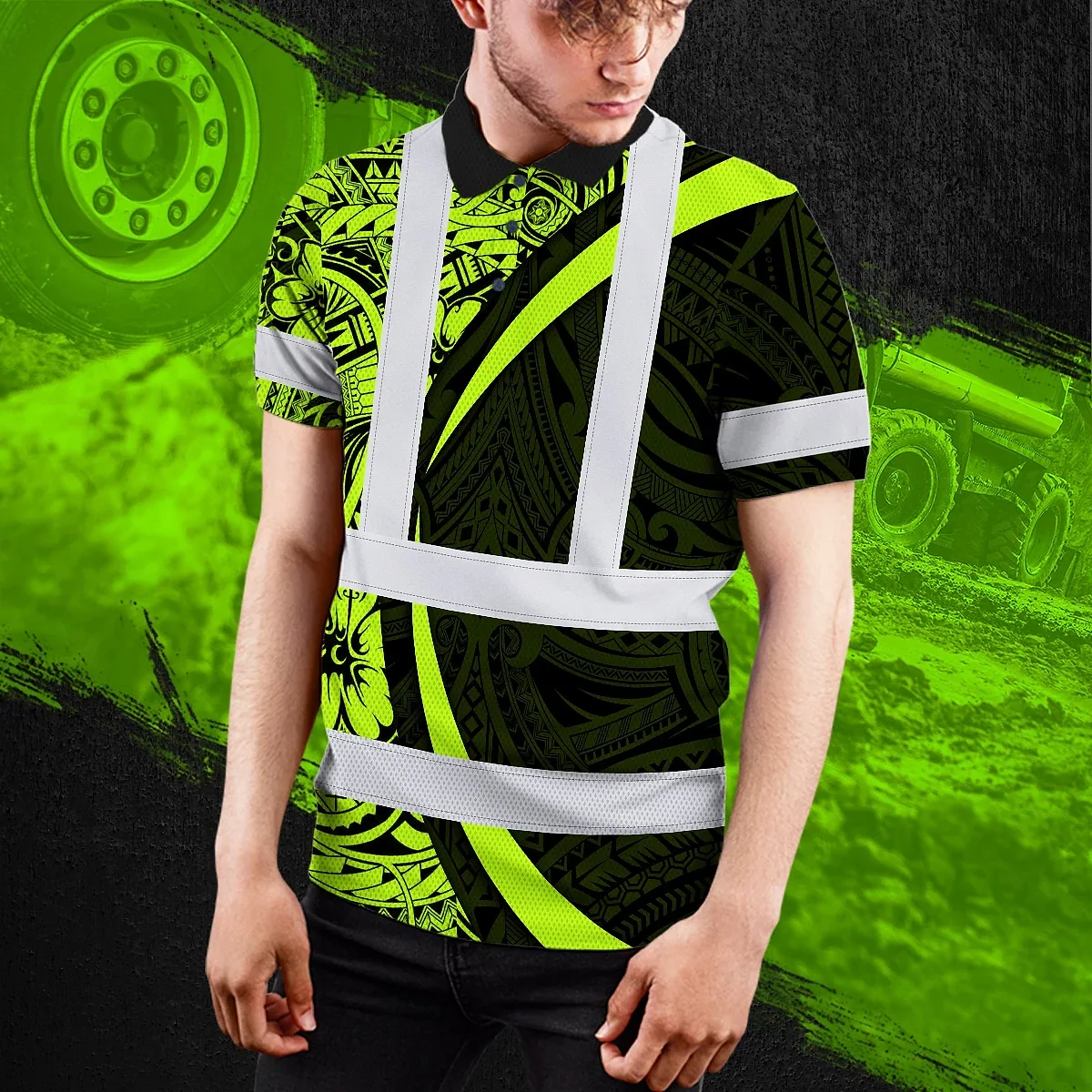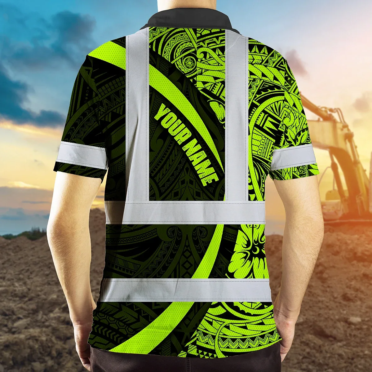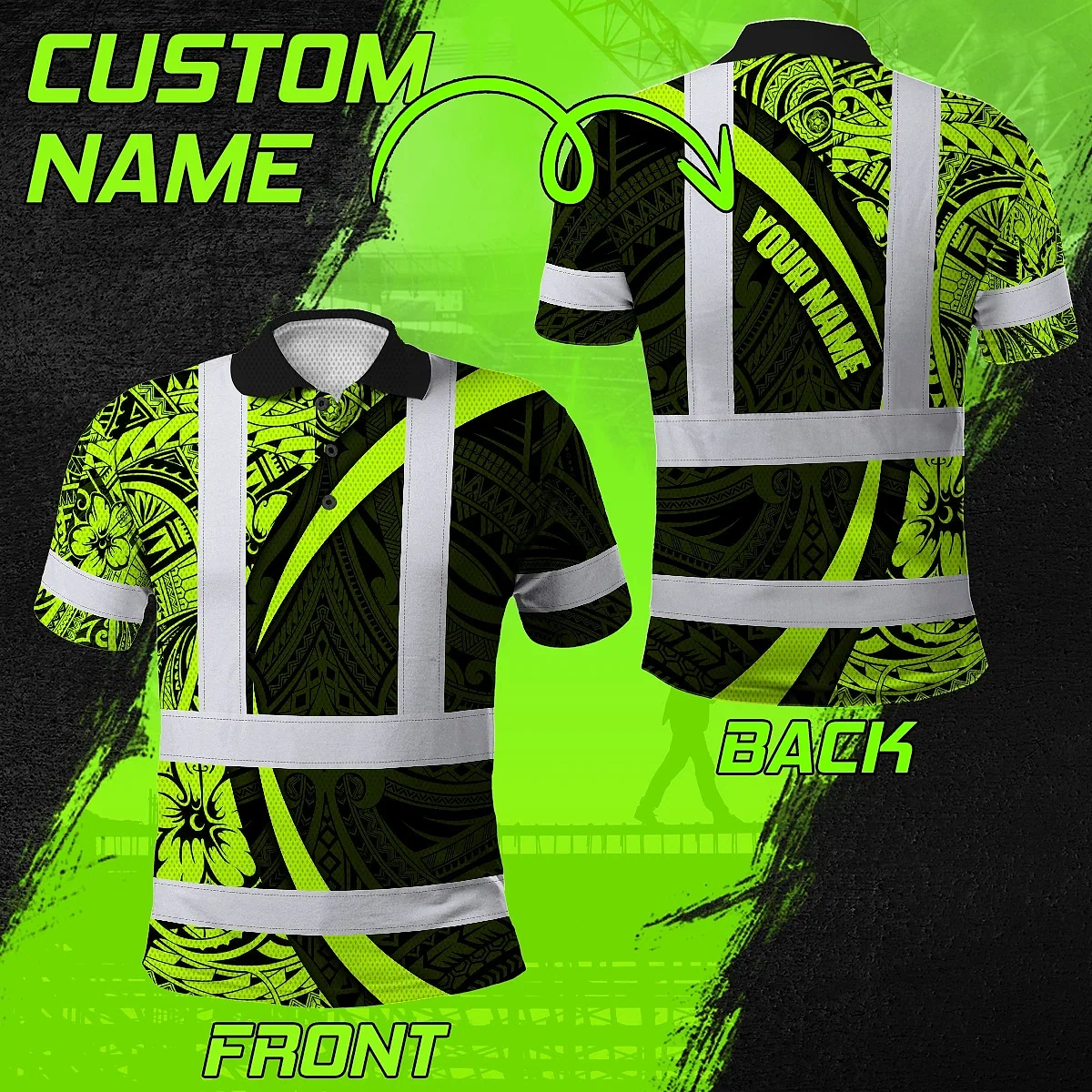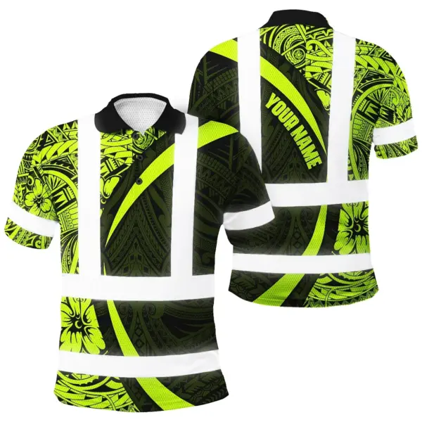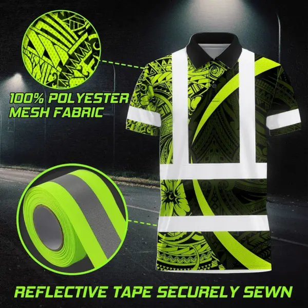 Hi Vis Polo Shirt Reflective Tapes Hawaiian Polynesian Tribal Custom Name Safety Workwear Workers, Truckers