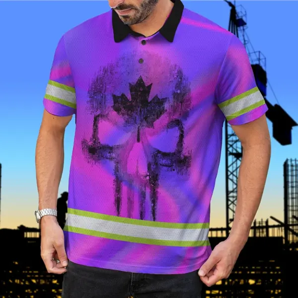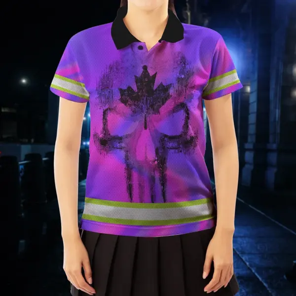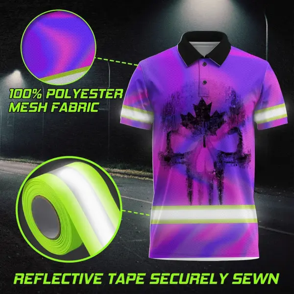 Hi Vis Polo Shirt Reflective Tapes Hologram Canada Flag Custom Name Safety Workwear For Worker, Operator, Patriotic