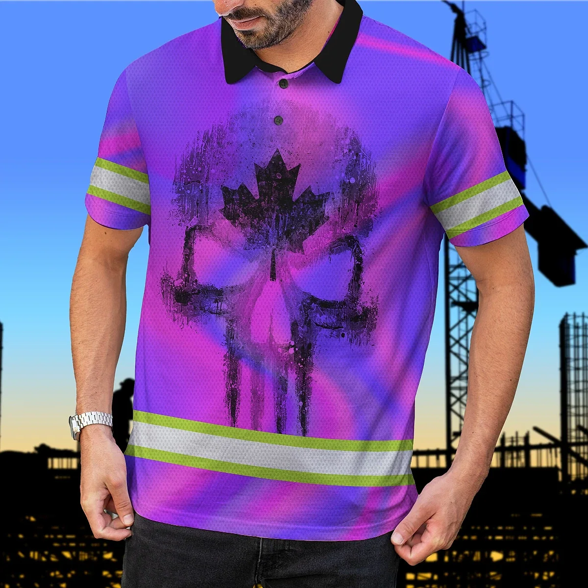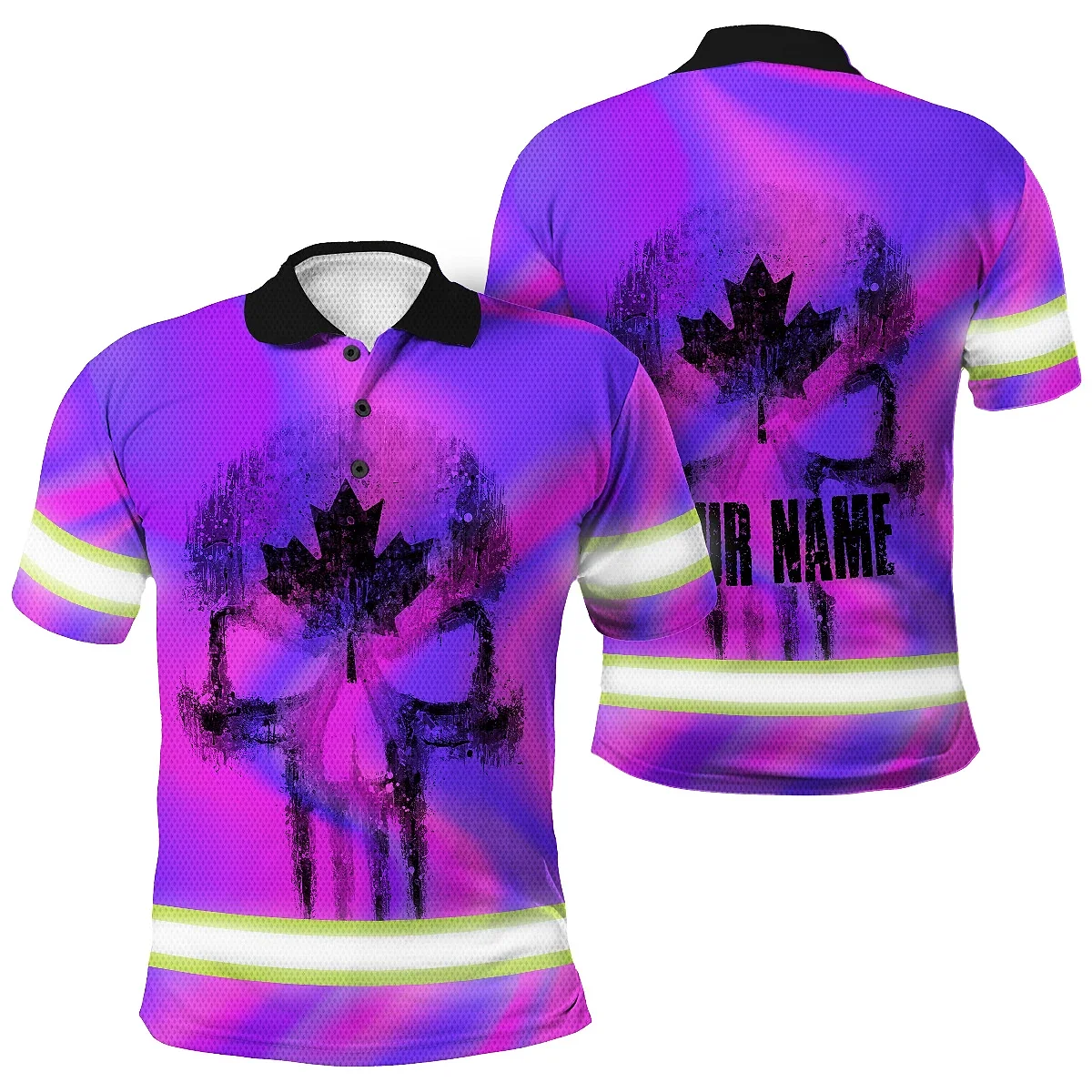 Be the first to review “Hi Vis Polo Shirt Reflective Tapes Hologram Canada Flag Custom Name Safety Workwear For Worker, Operator, Patriotic”