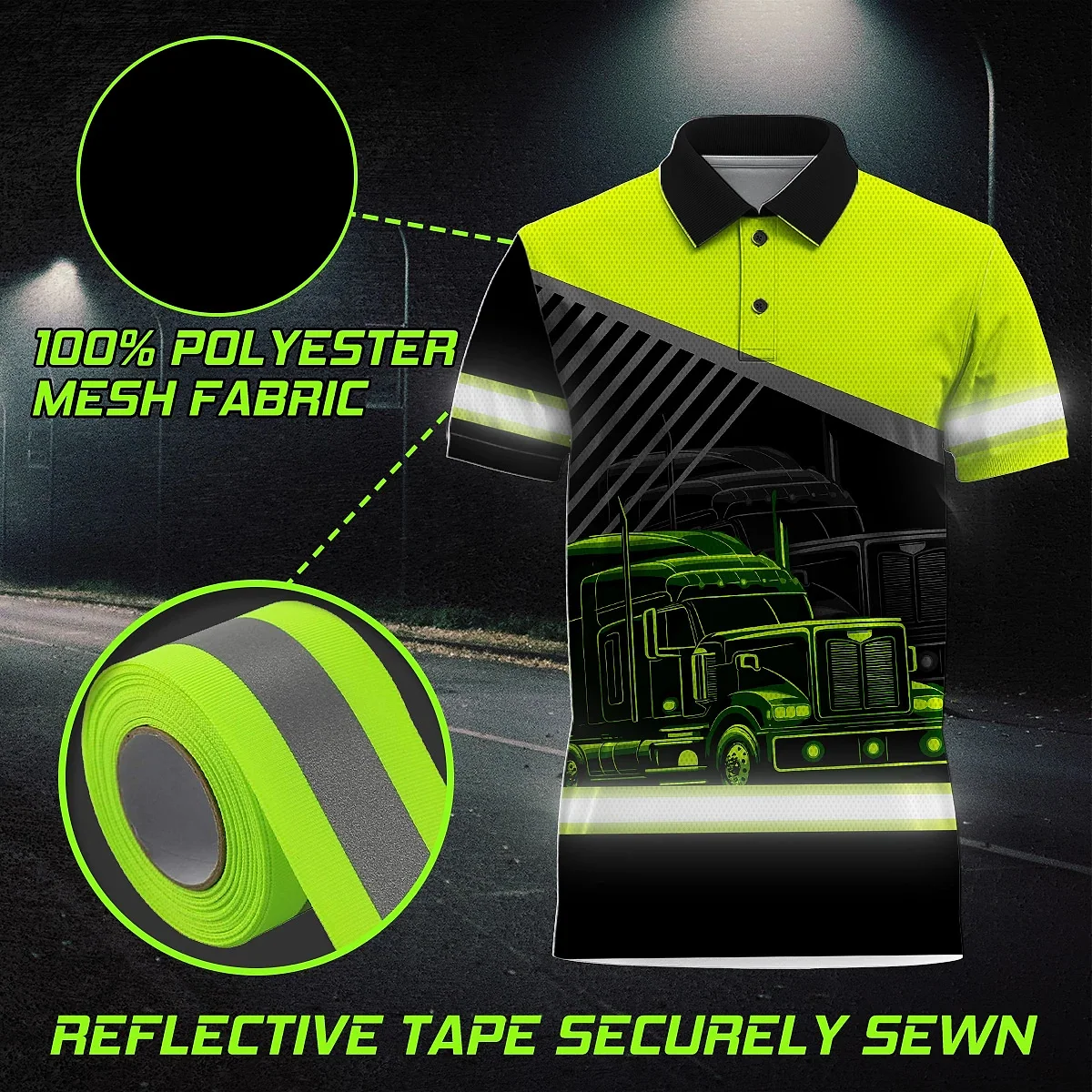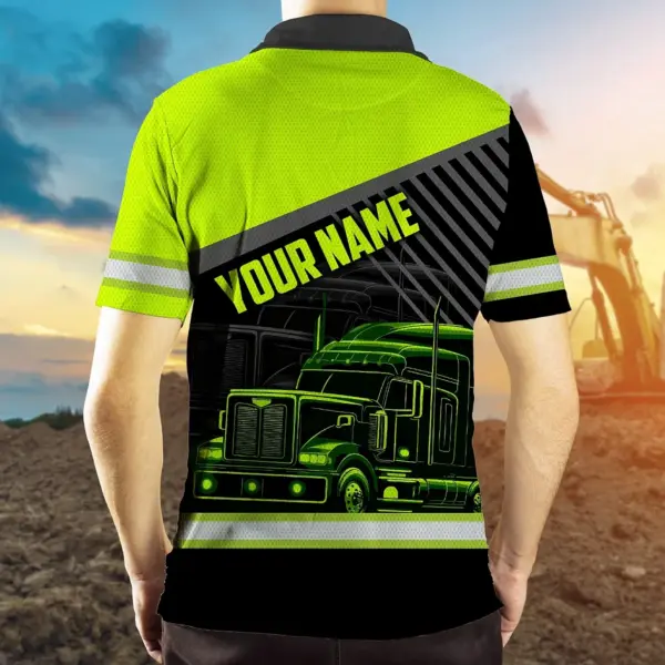Hi Vis Polo Shirt Reflective Tapes Light Green Neon Trucker Custom Name Safety Workwear For Workers, Runners