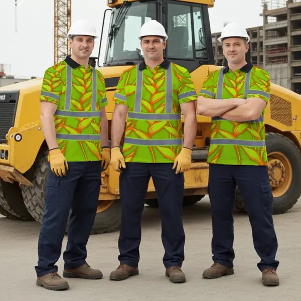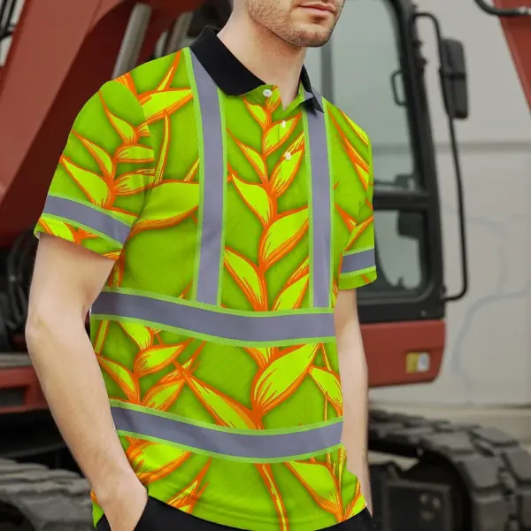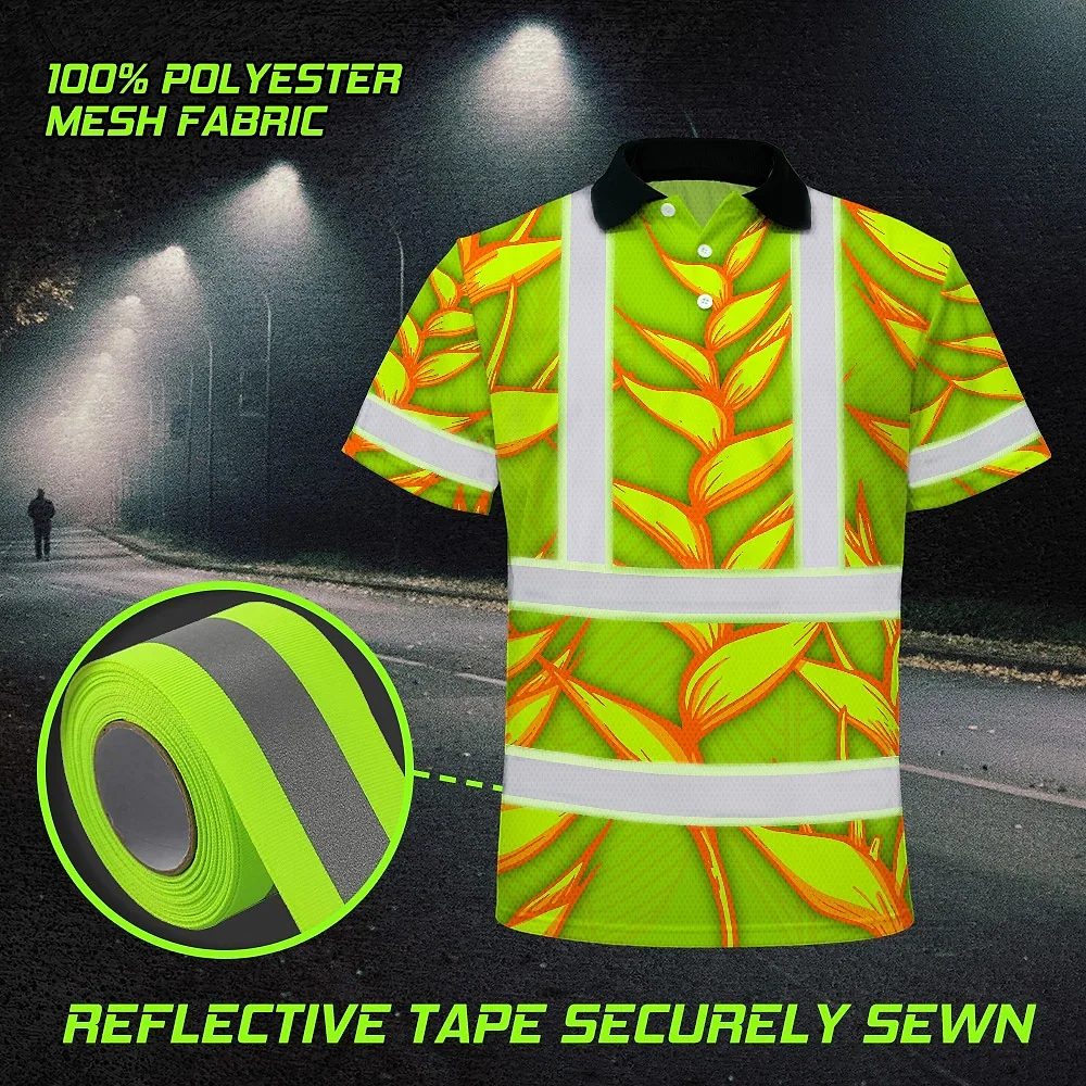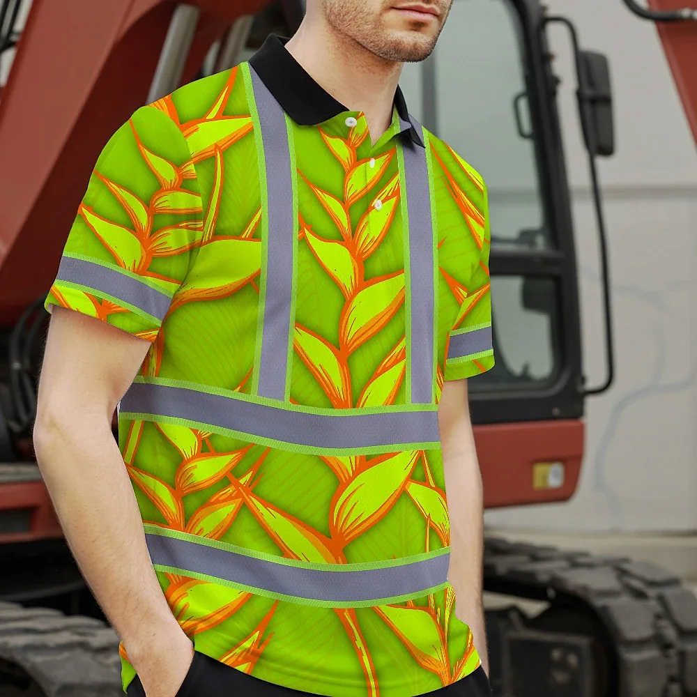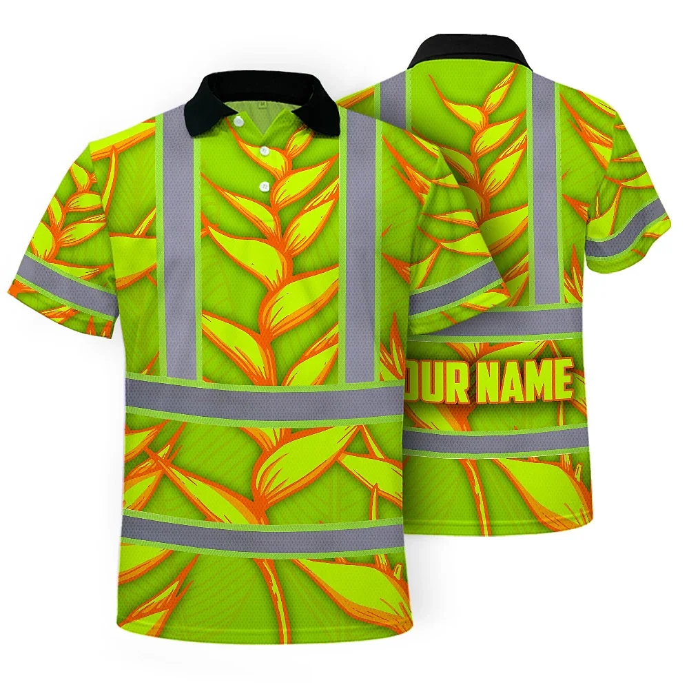 Hi Vis Polo Shirt Reflective Tapes Orange Neon Lime Heliconia Custom Name Safety Workwear For Workers, Truckers, Operators