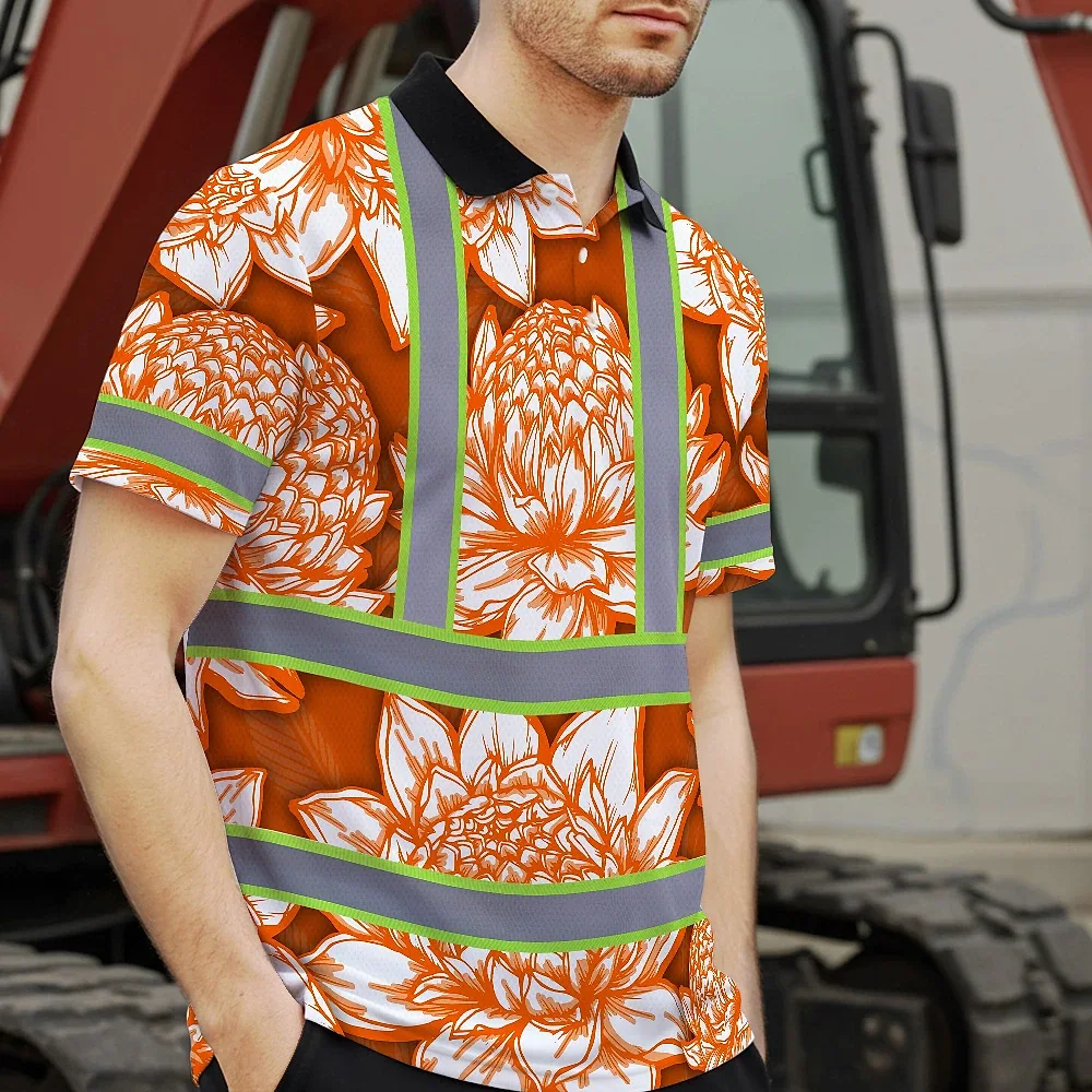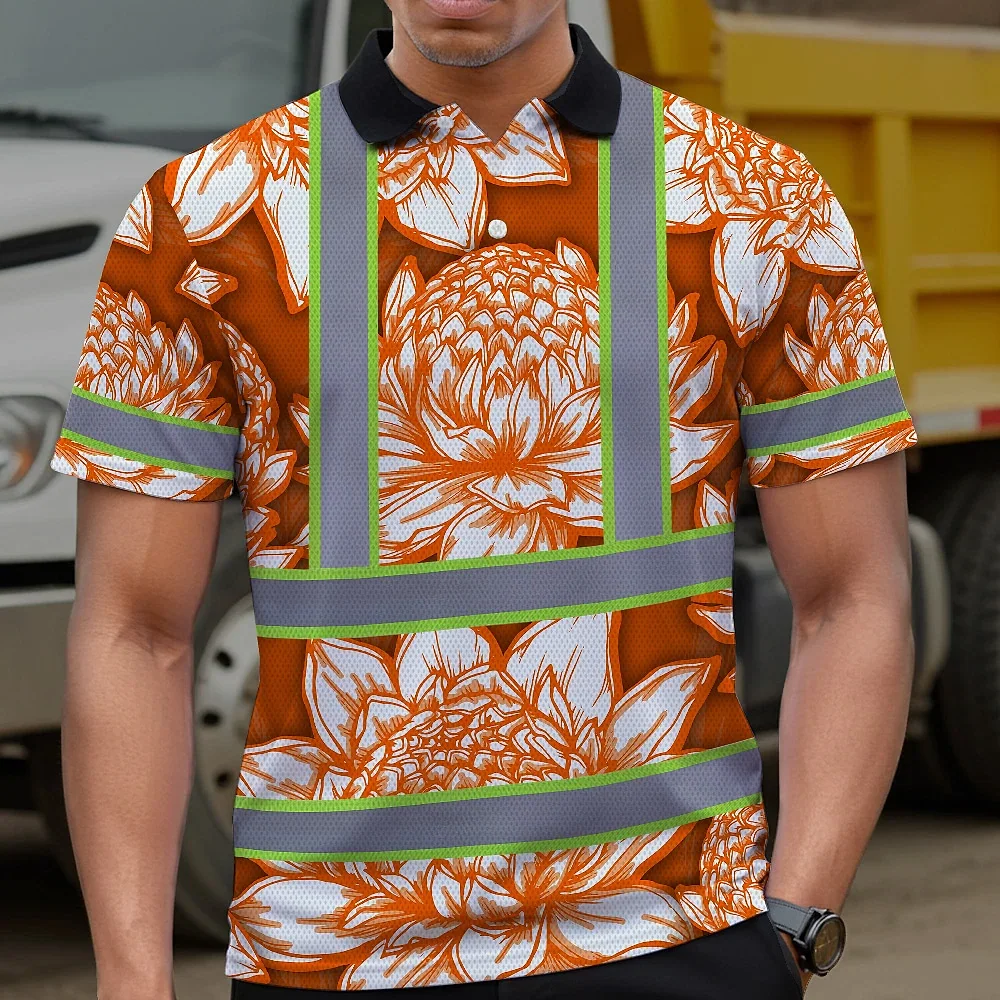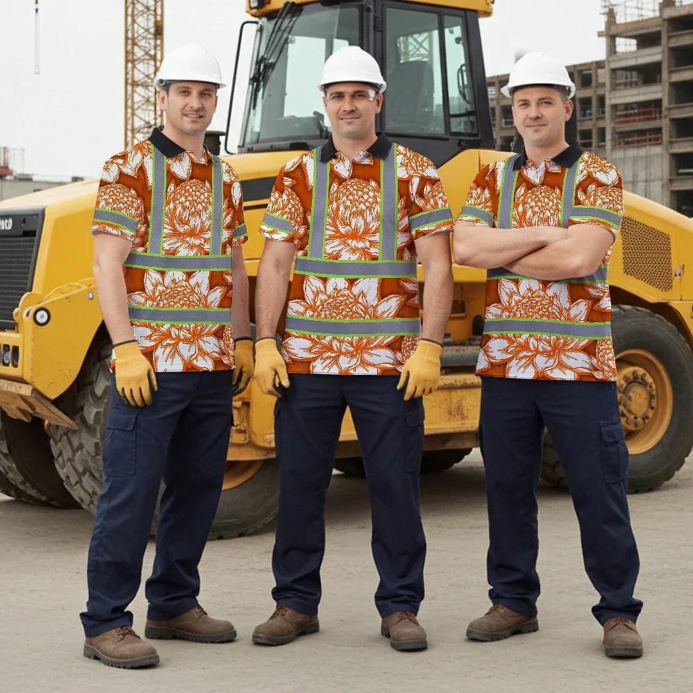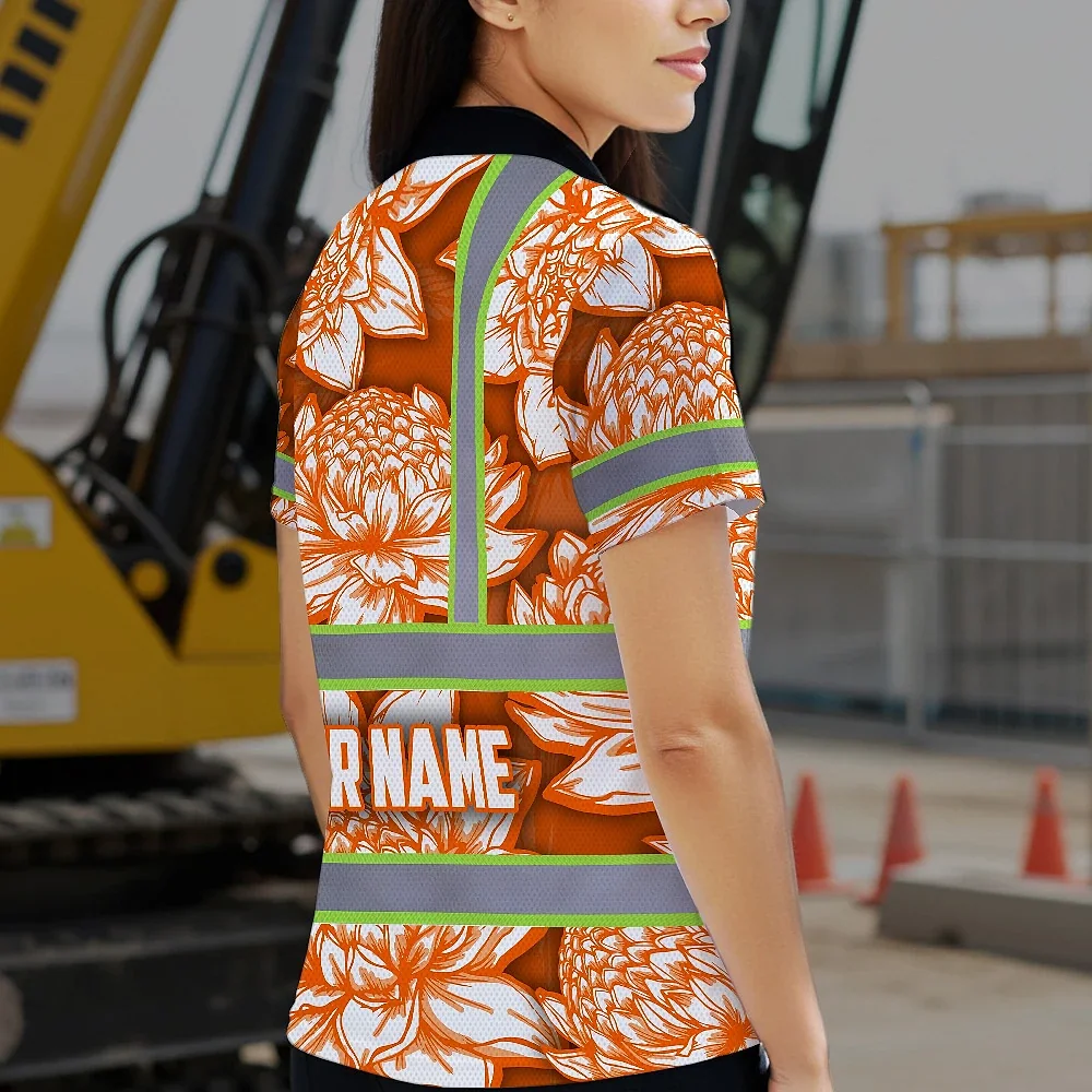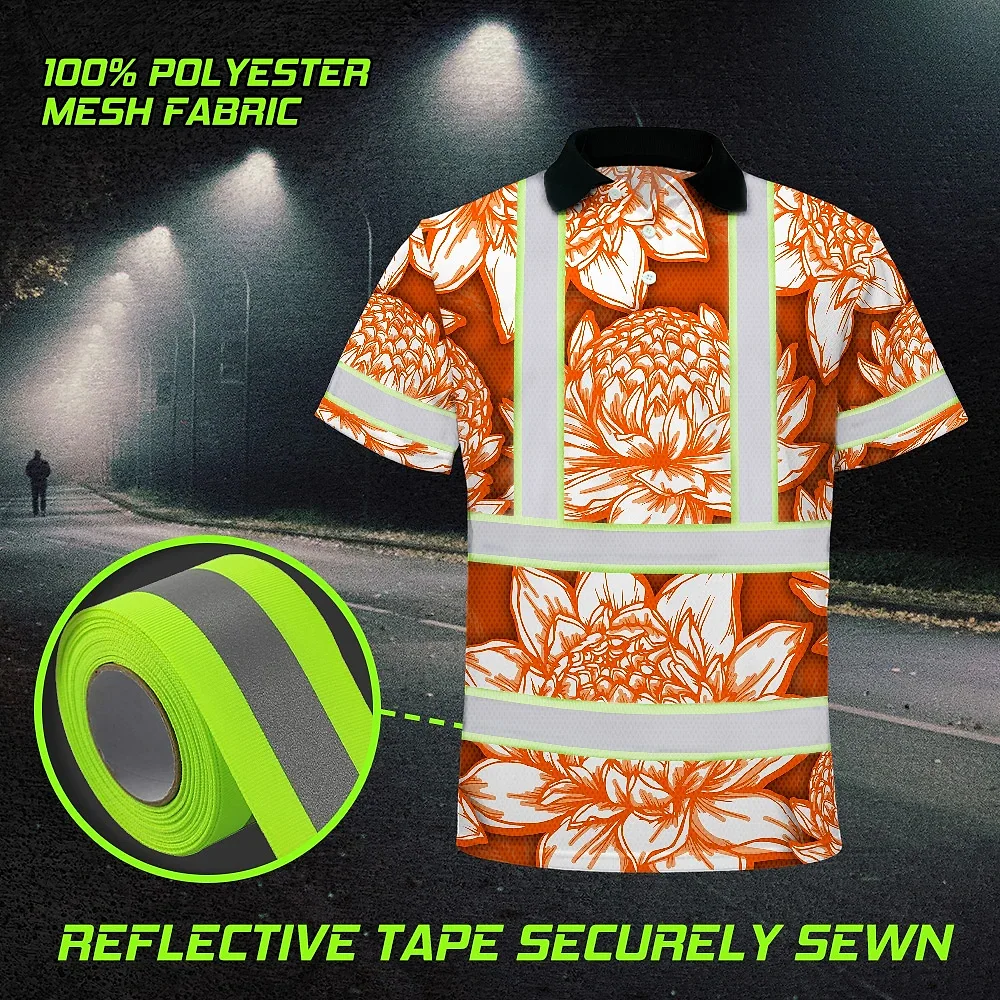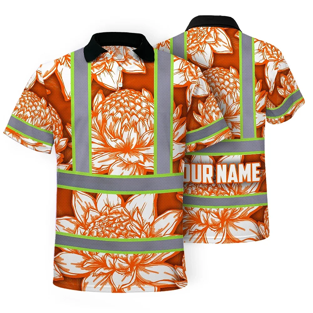 Hi Vis Polo Shirt Reflective Tapes Orange Neon White Protea Custom Name Safety Workwear For Workers, Truckers, Operators