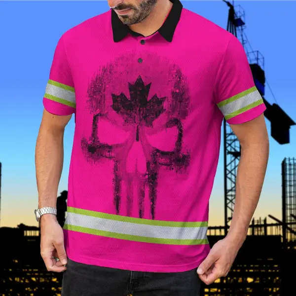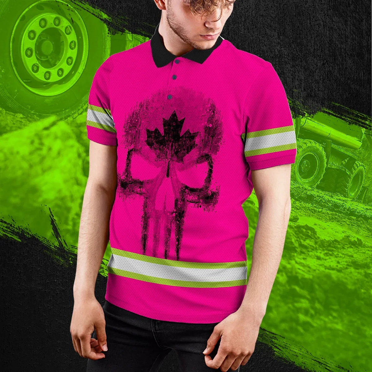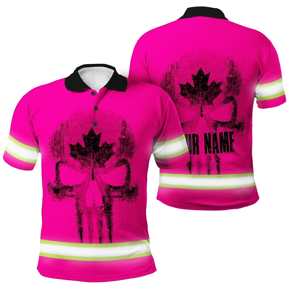 Hi Vis Polo Shirt Reflective Tapes Pink Neon Canada Custom Name Safety Workwear For Worker, Operator, Patriotic