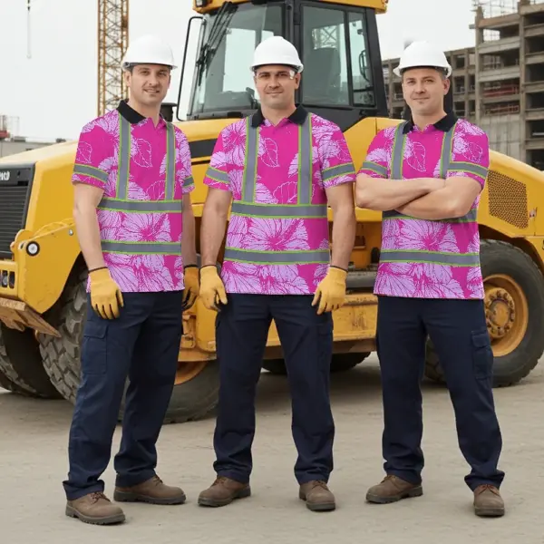 Be the first to review “Hi Vis Polo Shirt Reflective Tapes Pink Neon Hibiscus Custom Name Safety Workwear For Workers, Truckers, Operators”