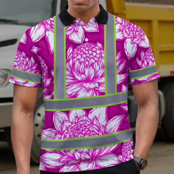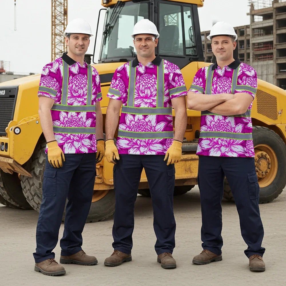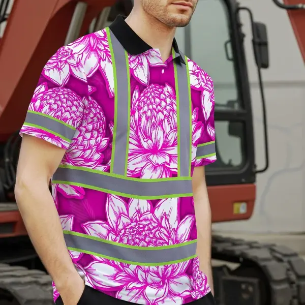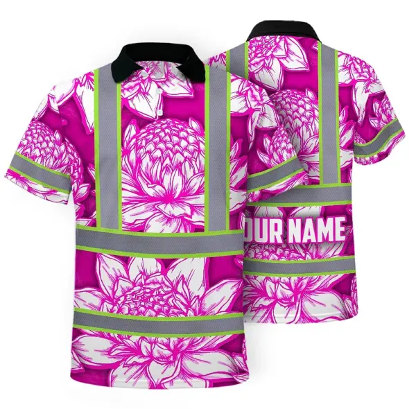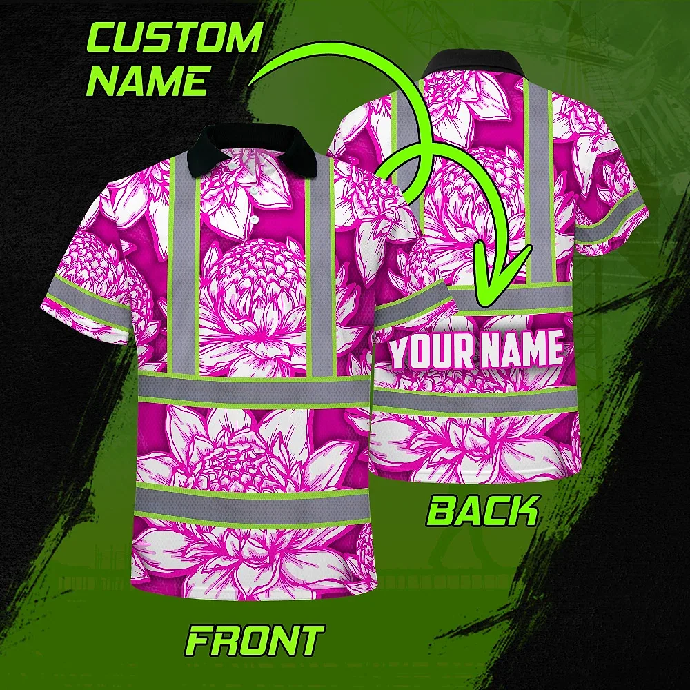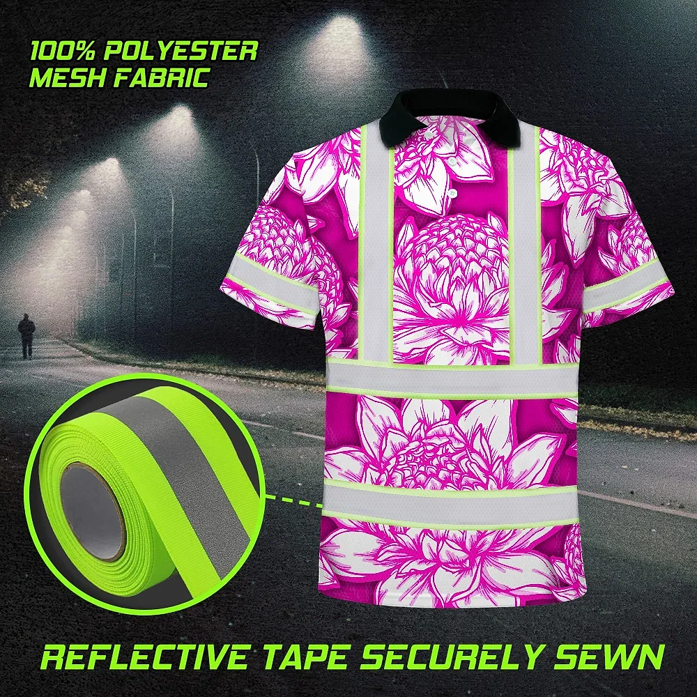 Hi Vis Polo Shirt Reflective Tapes Pink Neon White Protea Custom Name Safety Workwear For Workers, Truckers, Operators