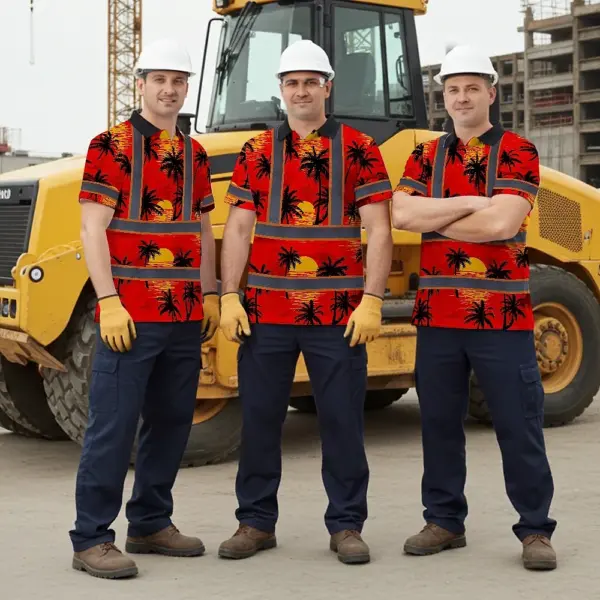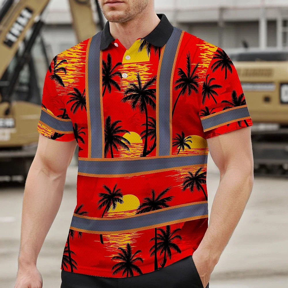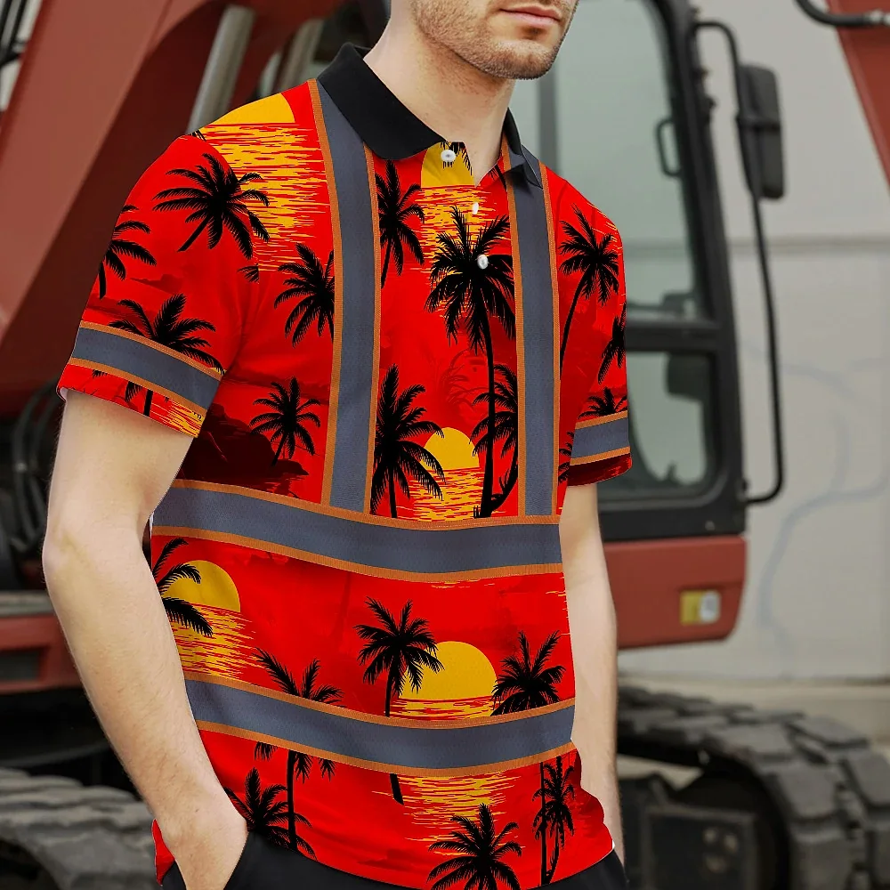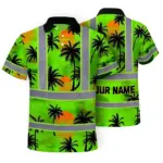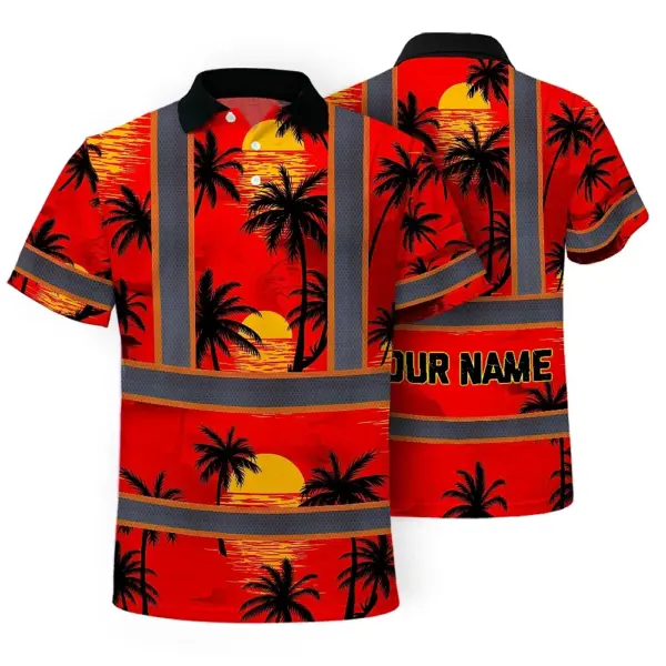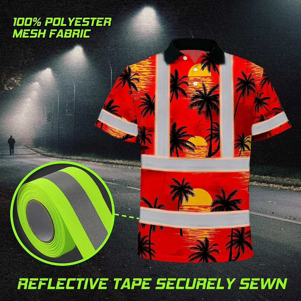 Hi Vis Polo Shirt Reflective Tapes Red Neon Flowers Custom Name