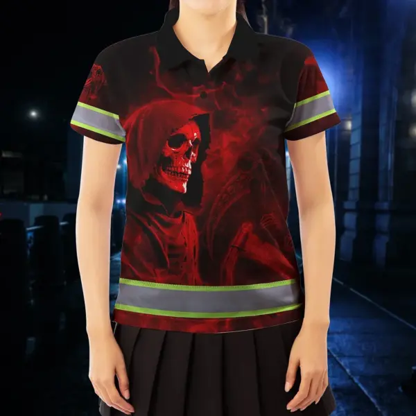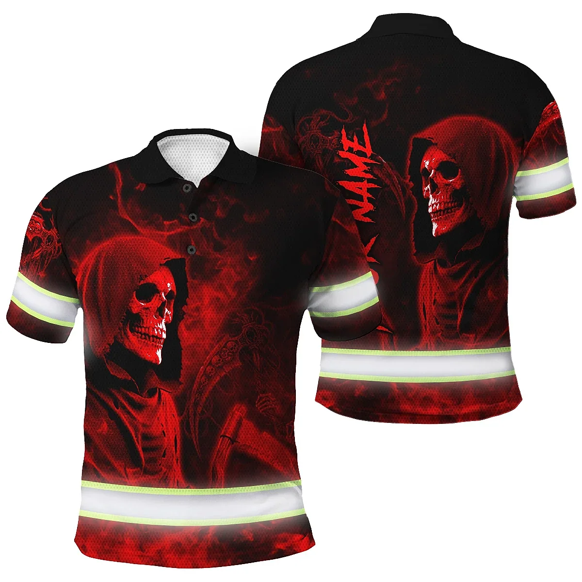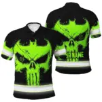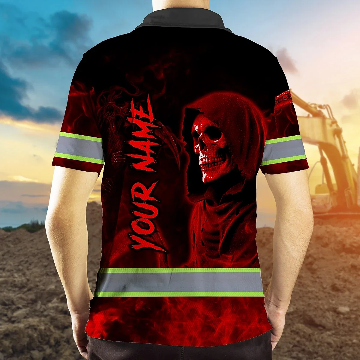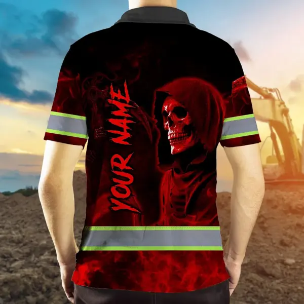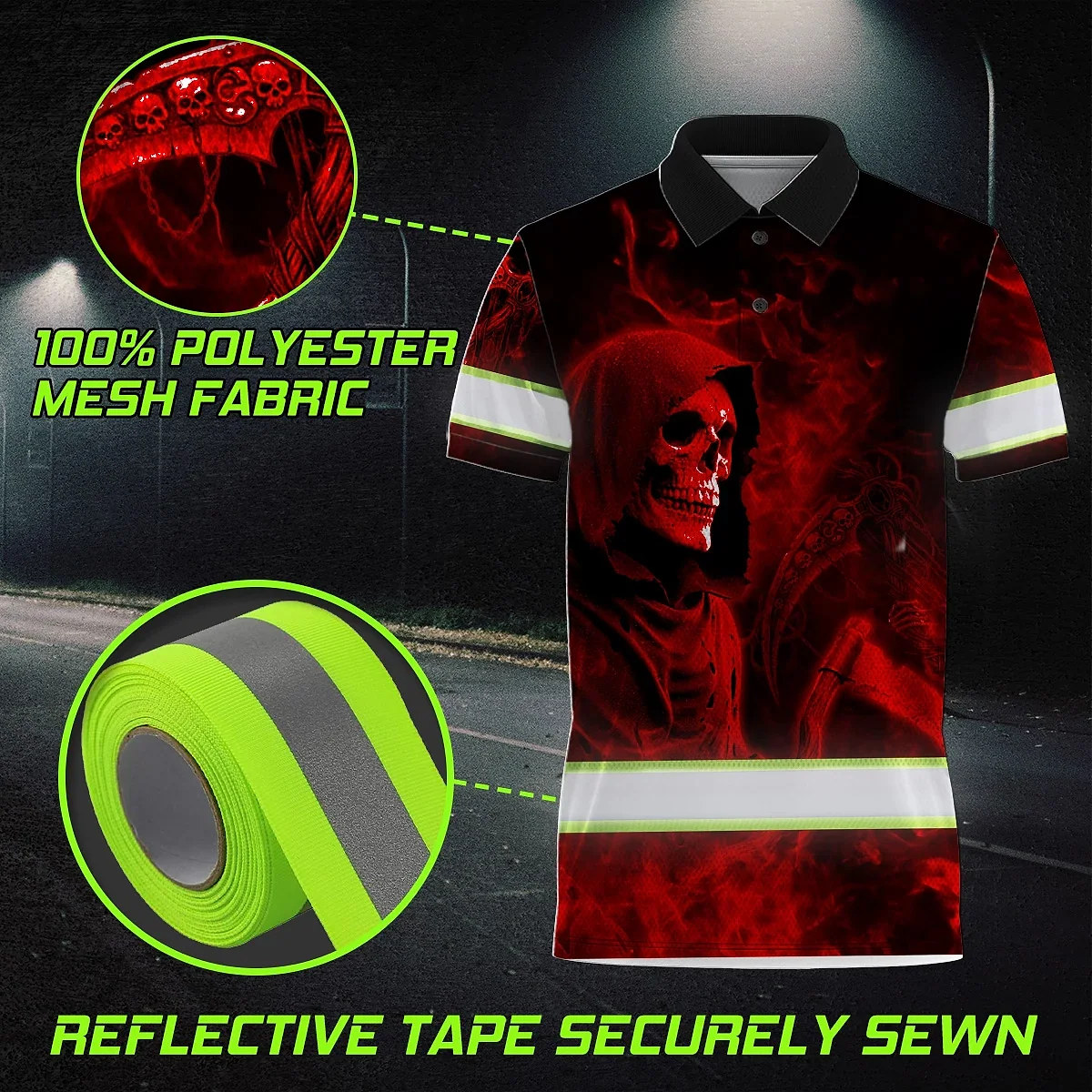 Hi Vis Polo Shirt Reflective Tapes Red Neon Skull Custom Name Safety Workwear For Workers, Truckers, Operators