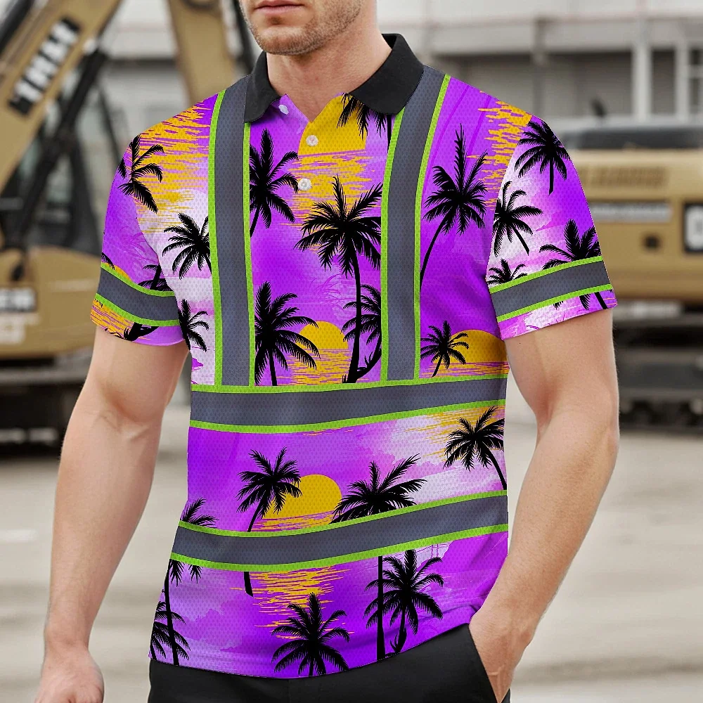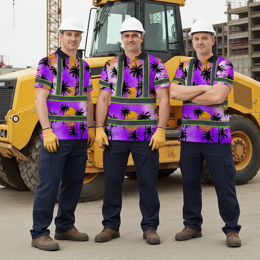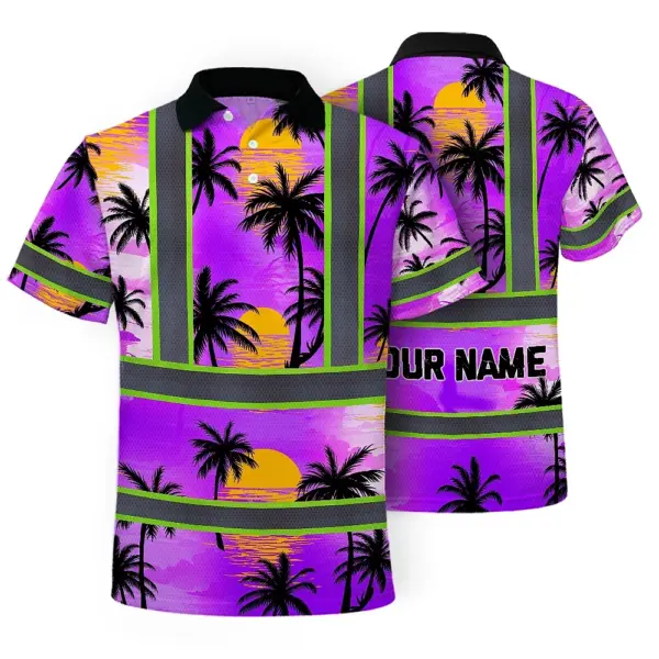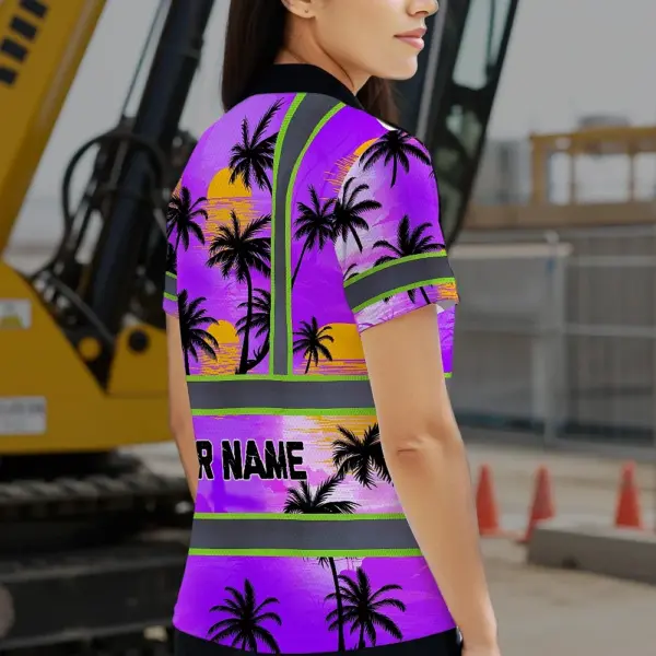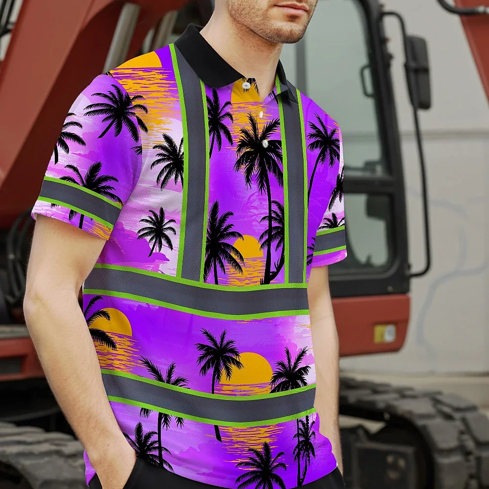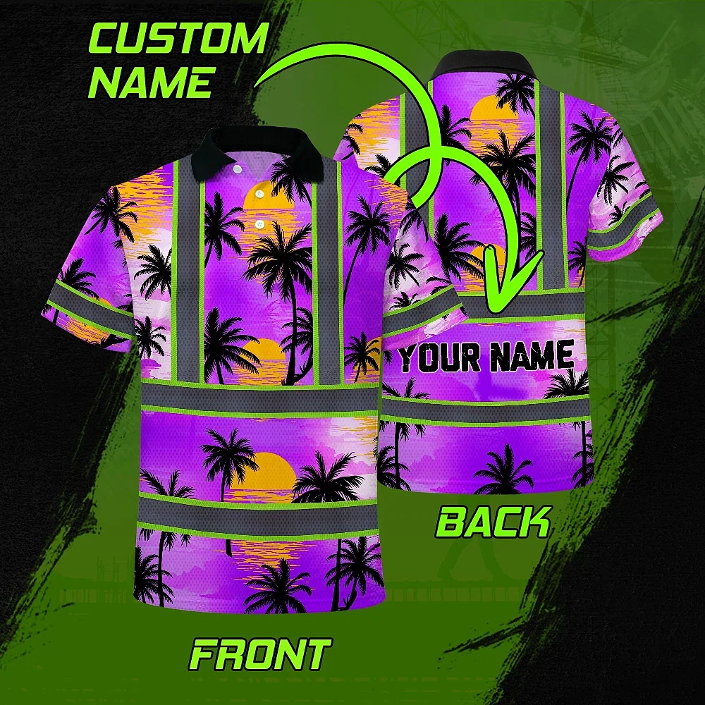 Hi Vis Polo Shirt Reflective Tapes Violet Neon Flowers Custom Name