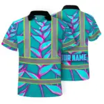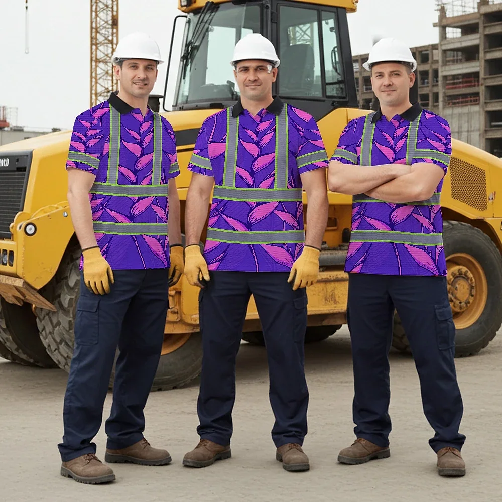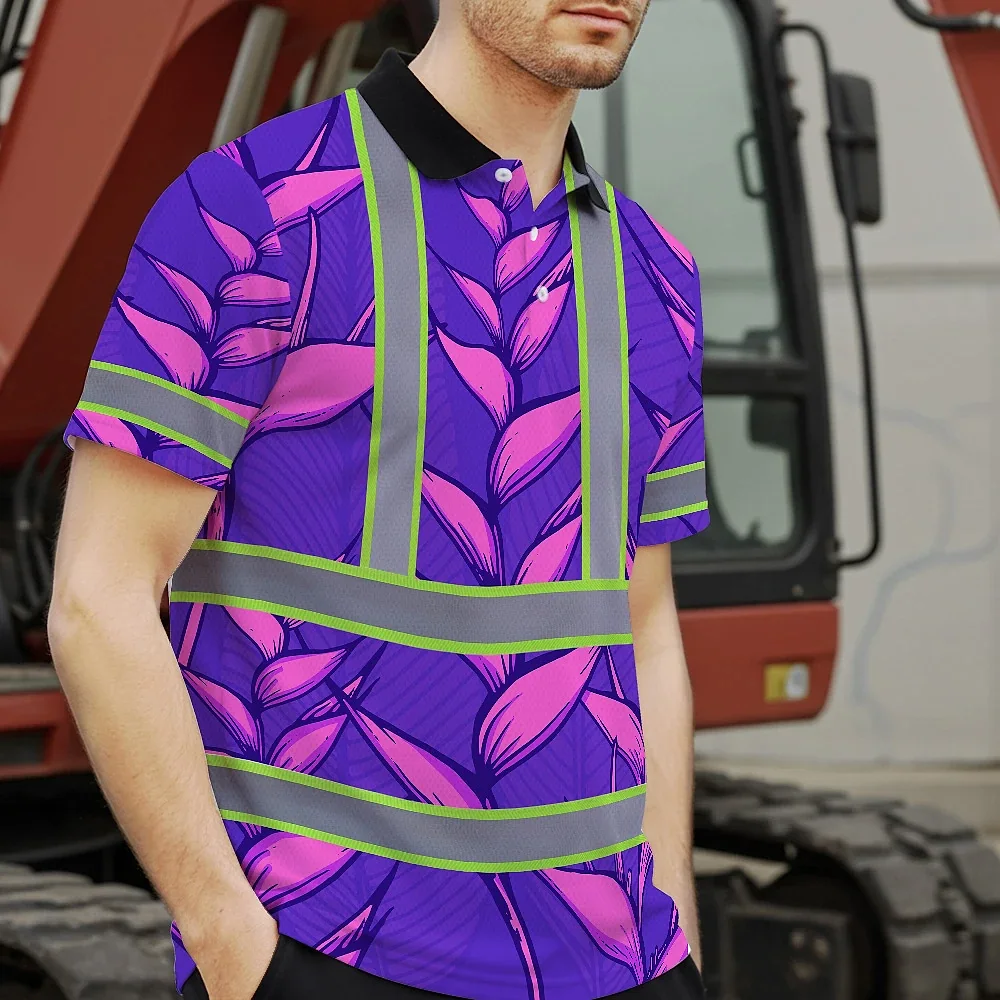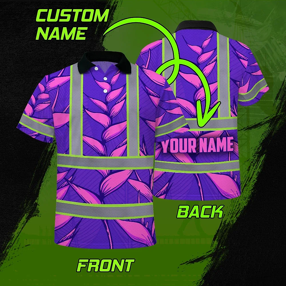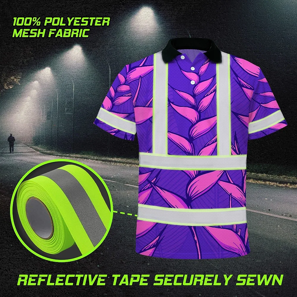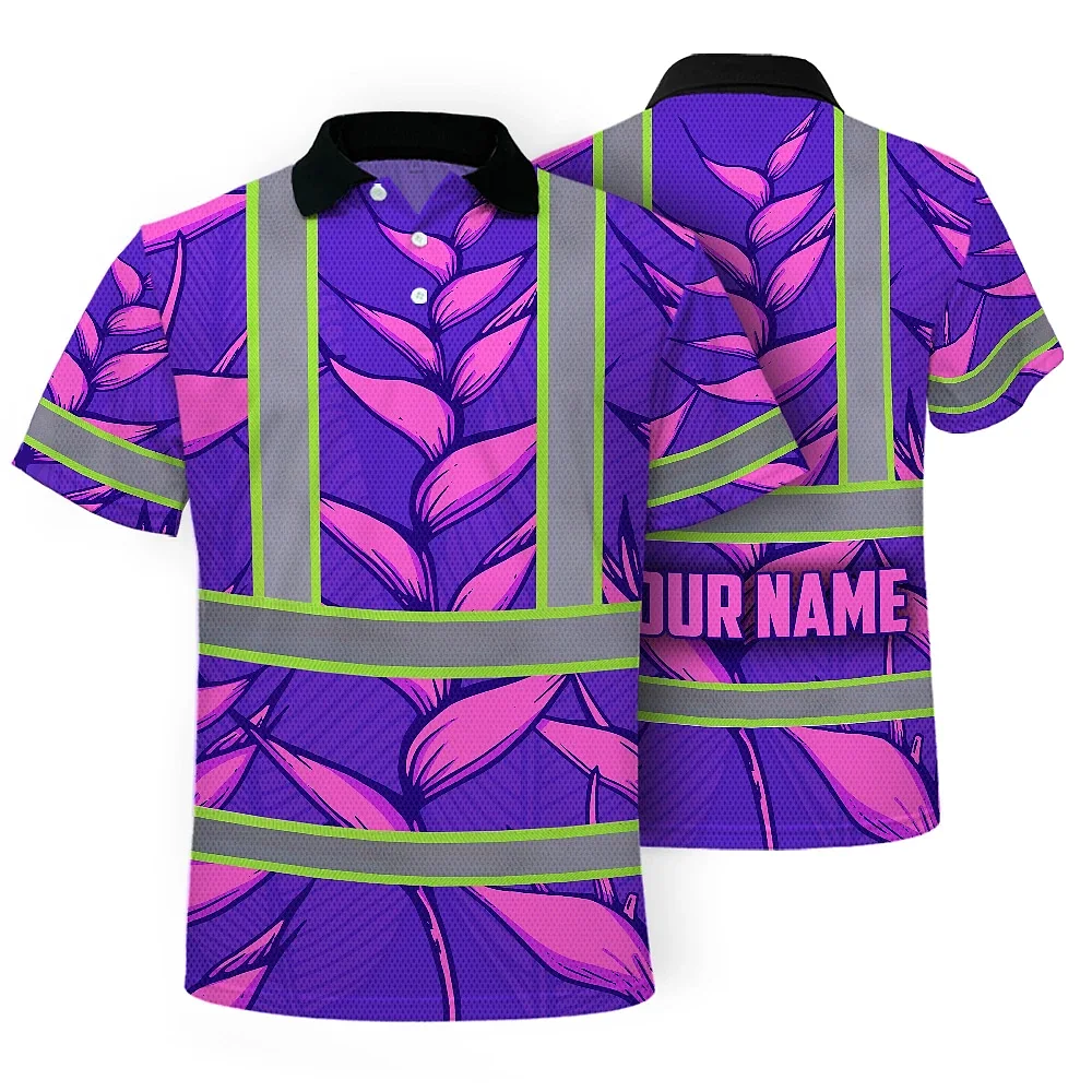 Hi Vis Polo Shirt Reflective Tapes Violet Neon Pink Heliconia Custom Name Safety Workwear For Workers, Truckers, Operators