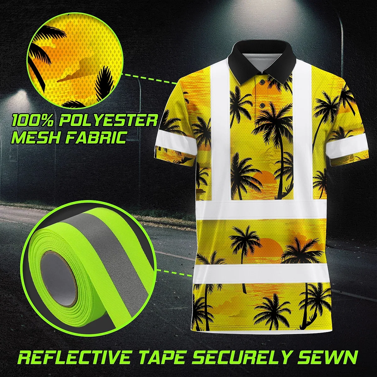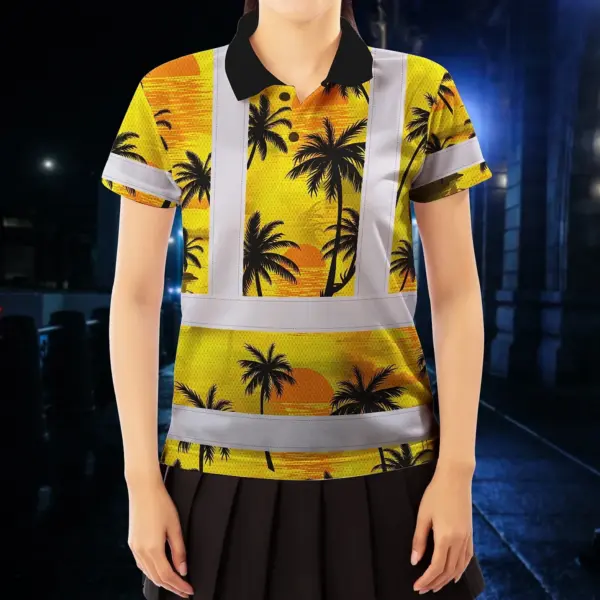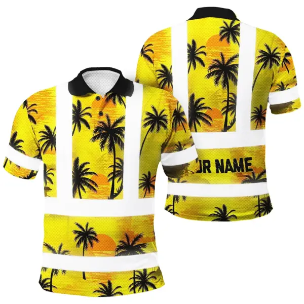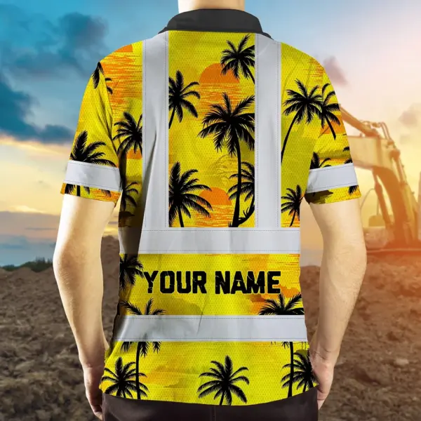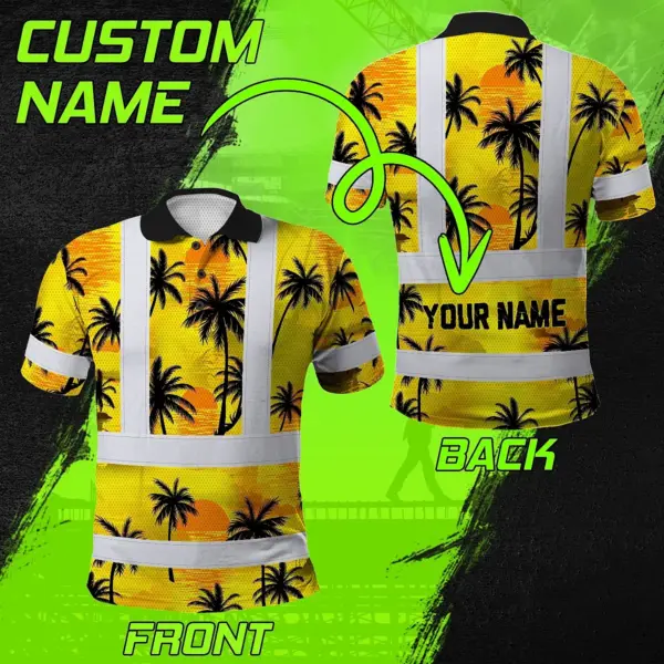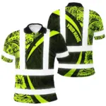 Hi Vis Polo Shirt Reflective Tapes Yellow Neon Flowers Custom Name Safety Workwear Workers, Truckers, Operators