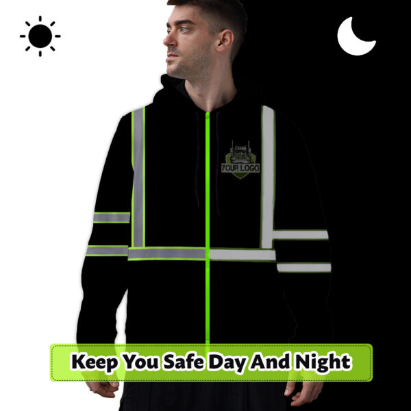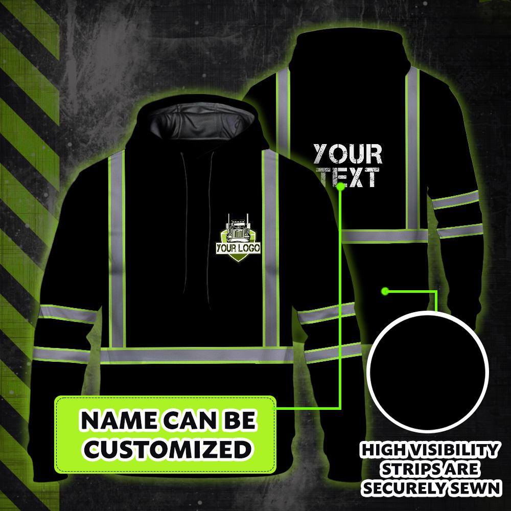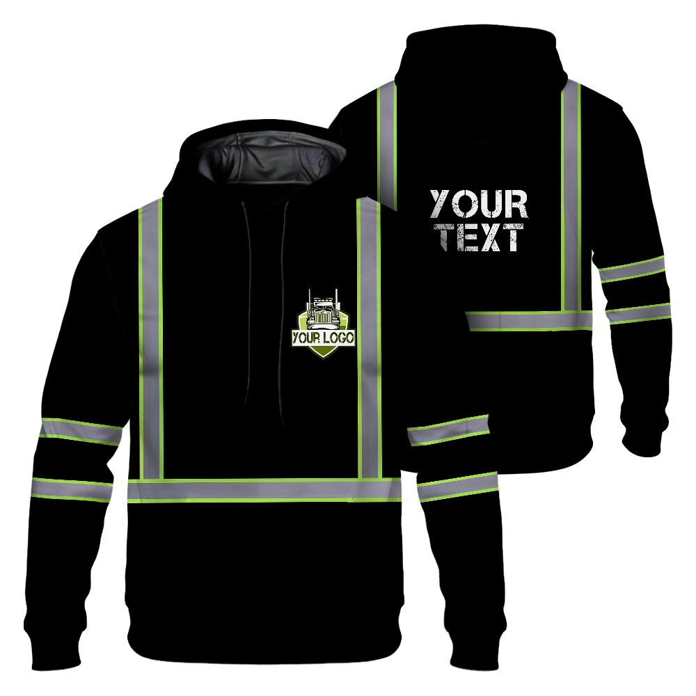 Hi Vis Reflective Black Custom Name And Logo Hoodie Safety Workwear