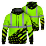 Select options This product has multiple variants. The options may be chosen on the product pageHi Vis Hoodie Patriotic Collection, Hi Vis Hoodies, Hi Vis Patriotic Products, Hi Vis Shirts, Reflective Safety HoodieHi Vis Hoodie Reflective Black Lime USA Flag Safety Workwear For Workers, Runners, Cyclists