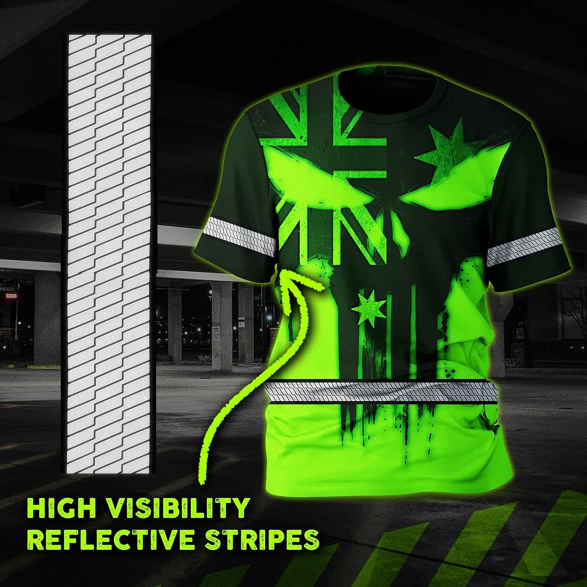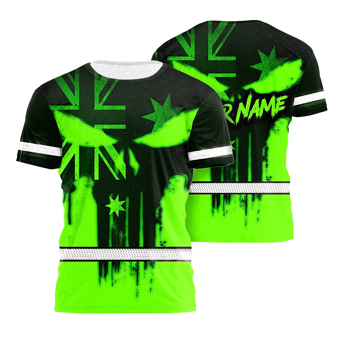 Hi Vis Shirt Reflective Australia Flag Skull Safety Workwear For Workers