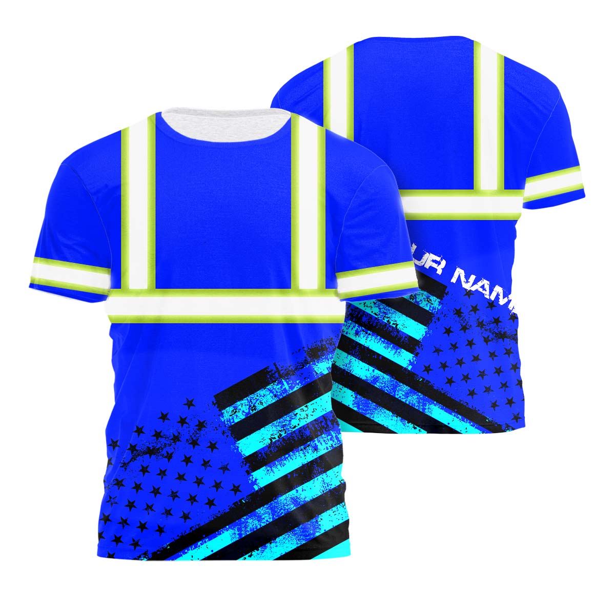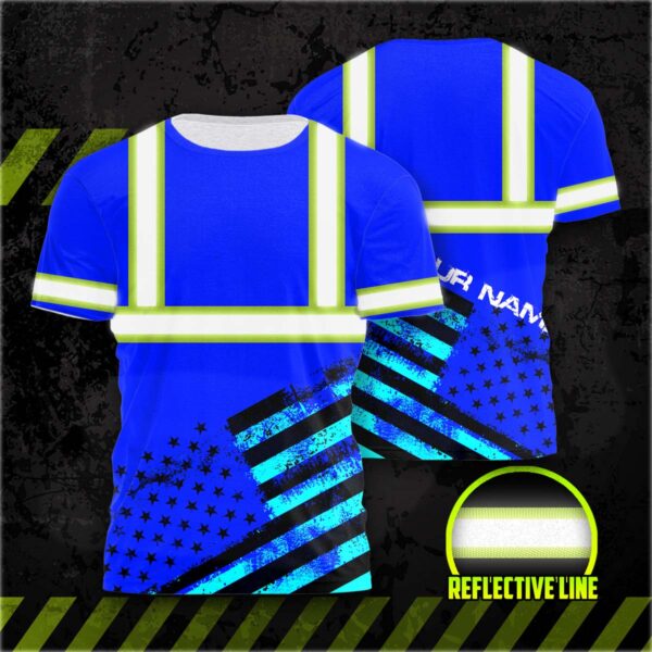 Hi Vis Shirt Reflective Black And Blue Neon USA Flag Custom Name Safety Workwear