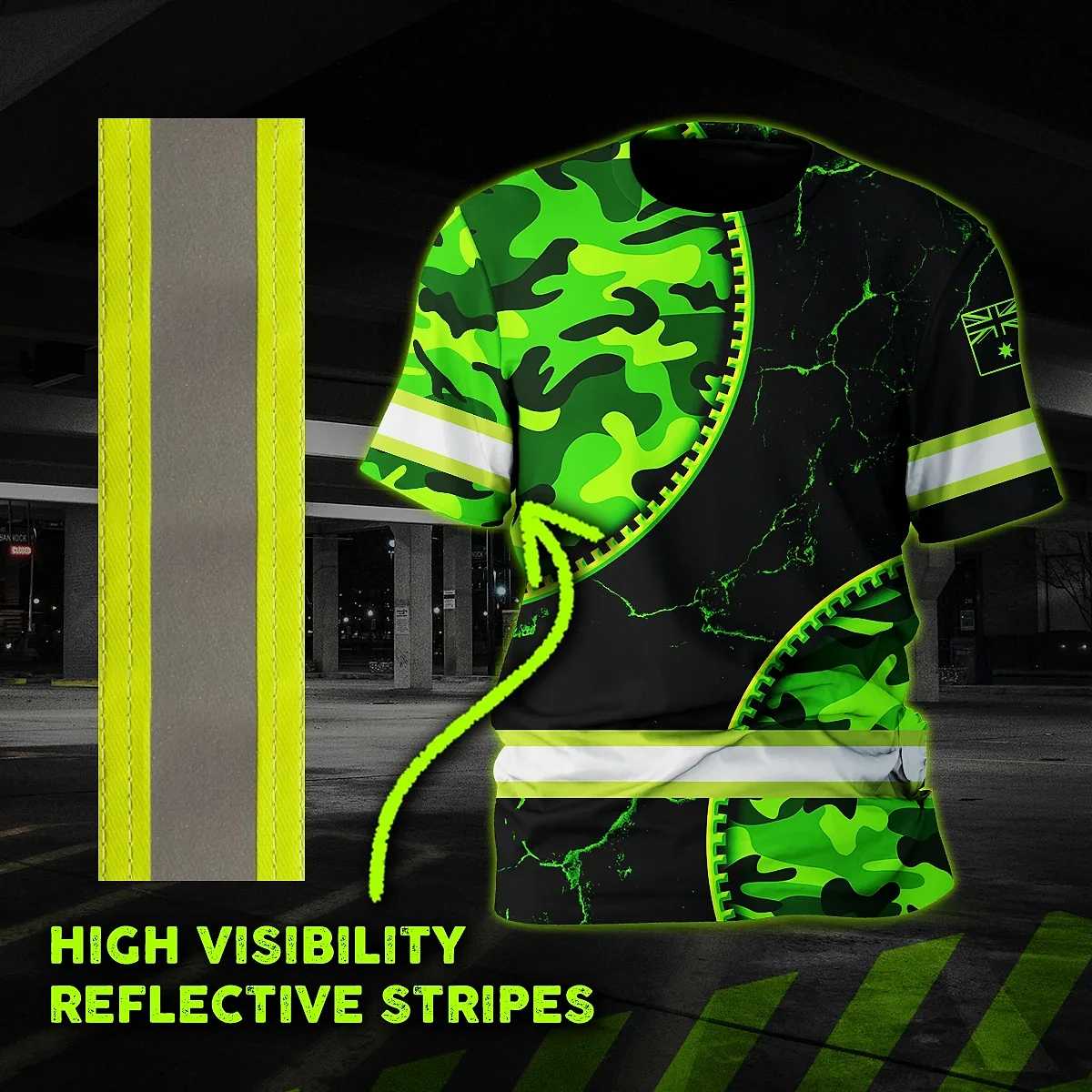 Hi Vis Shirt Reflective Camo Green Neon AU Flag Safety Workwear