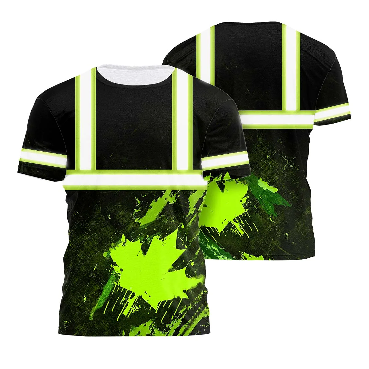 Hi Vis Shirt Reflective Canada Flag Custom Name Safety Workwear For Canadian