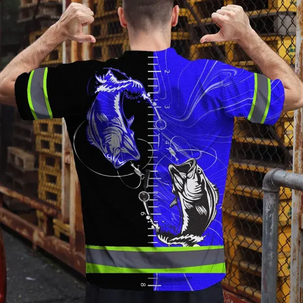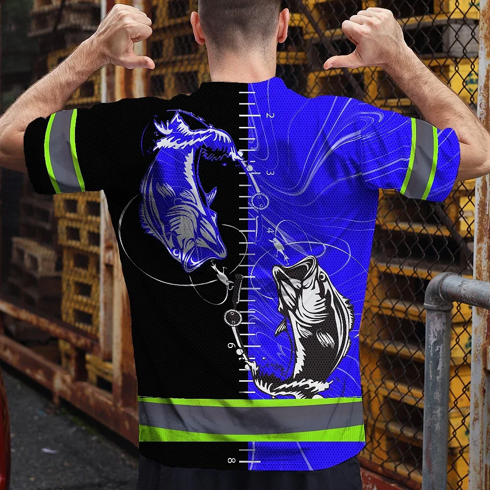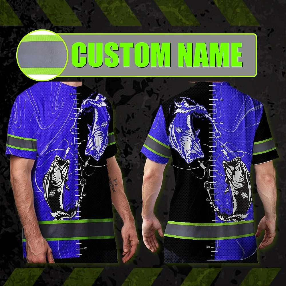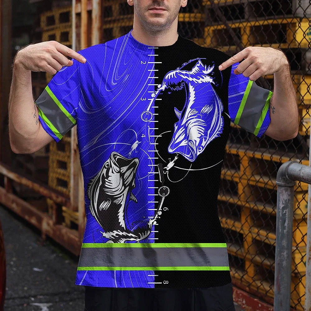 Hi Vis Shirt Reflective Fishing Blue Neon Safety Workwear For Fishing Lovers Workers, Runners, Cyclists, Trucker, Operator, Patriotic