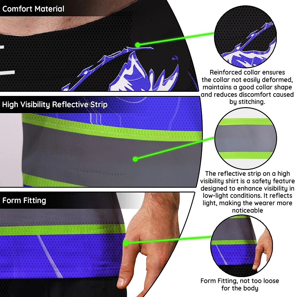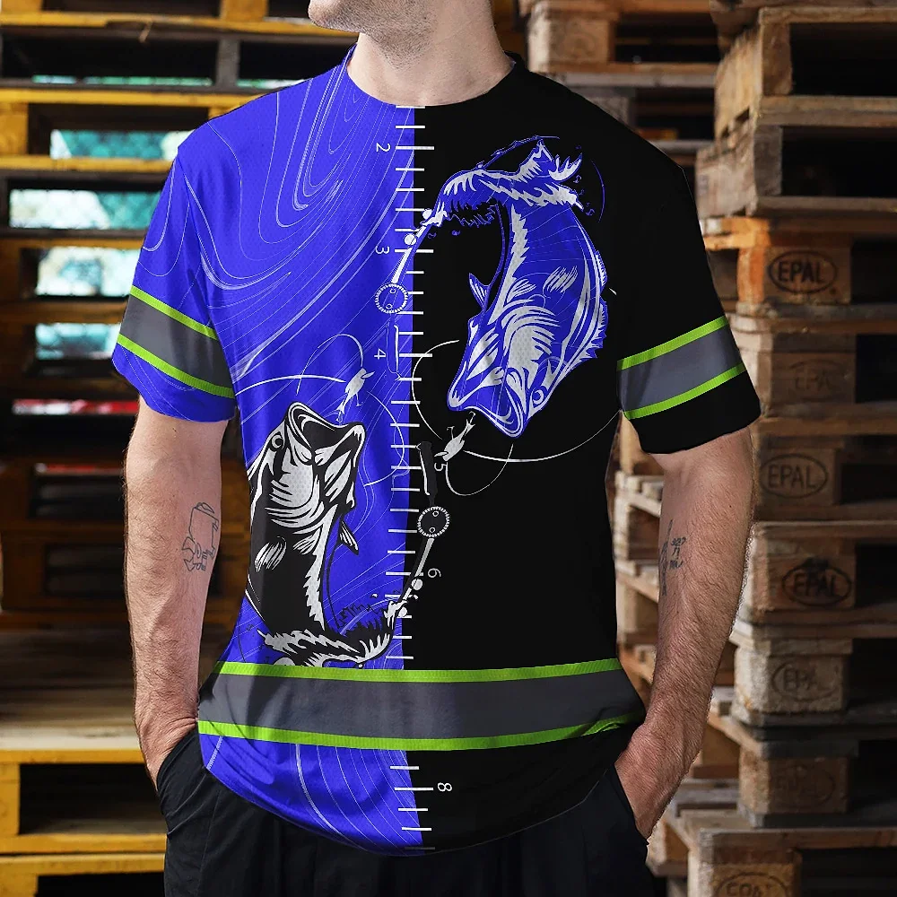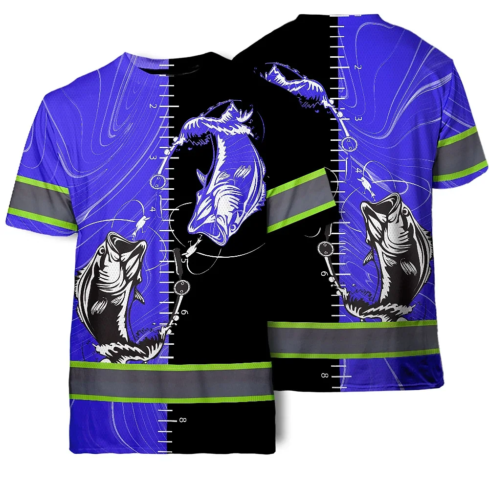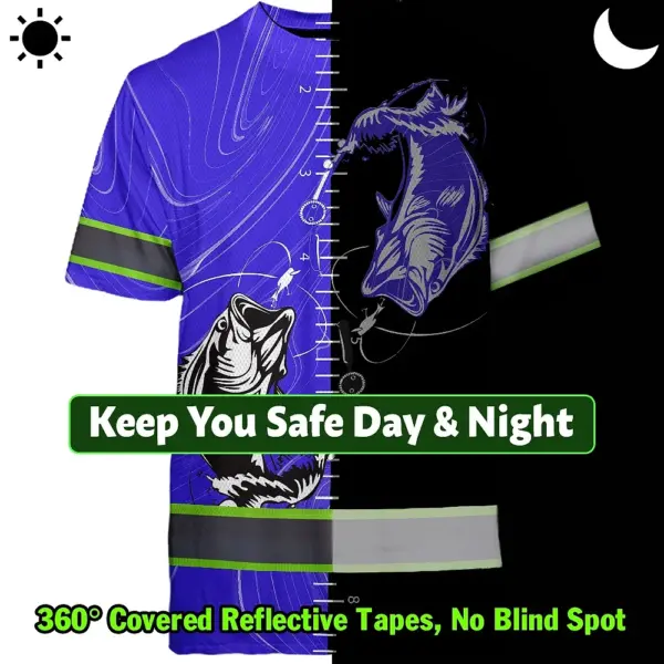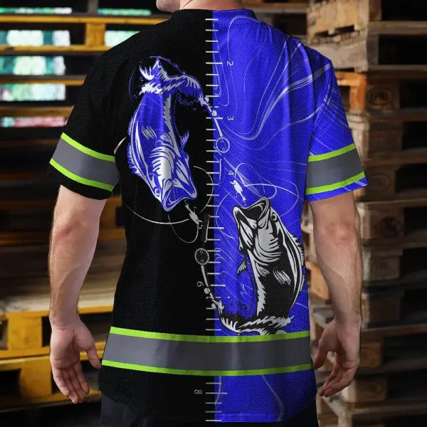 Hi Vis Shirt Reflective Fishing Blue Neon Safety Workwear For Fishing Lovers Workers, Runners, Cyclists, Trucker, Operator, Patriotic