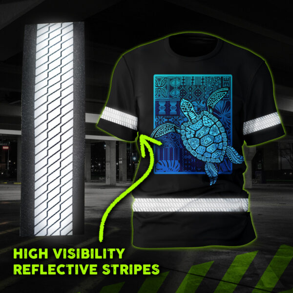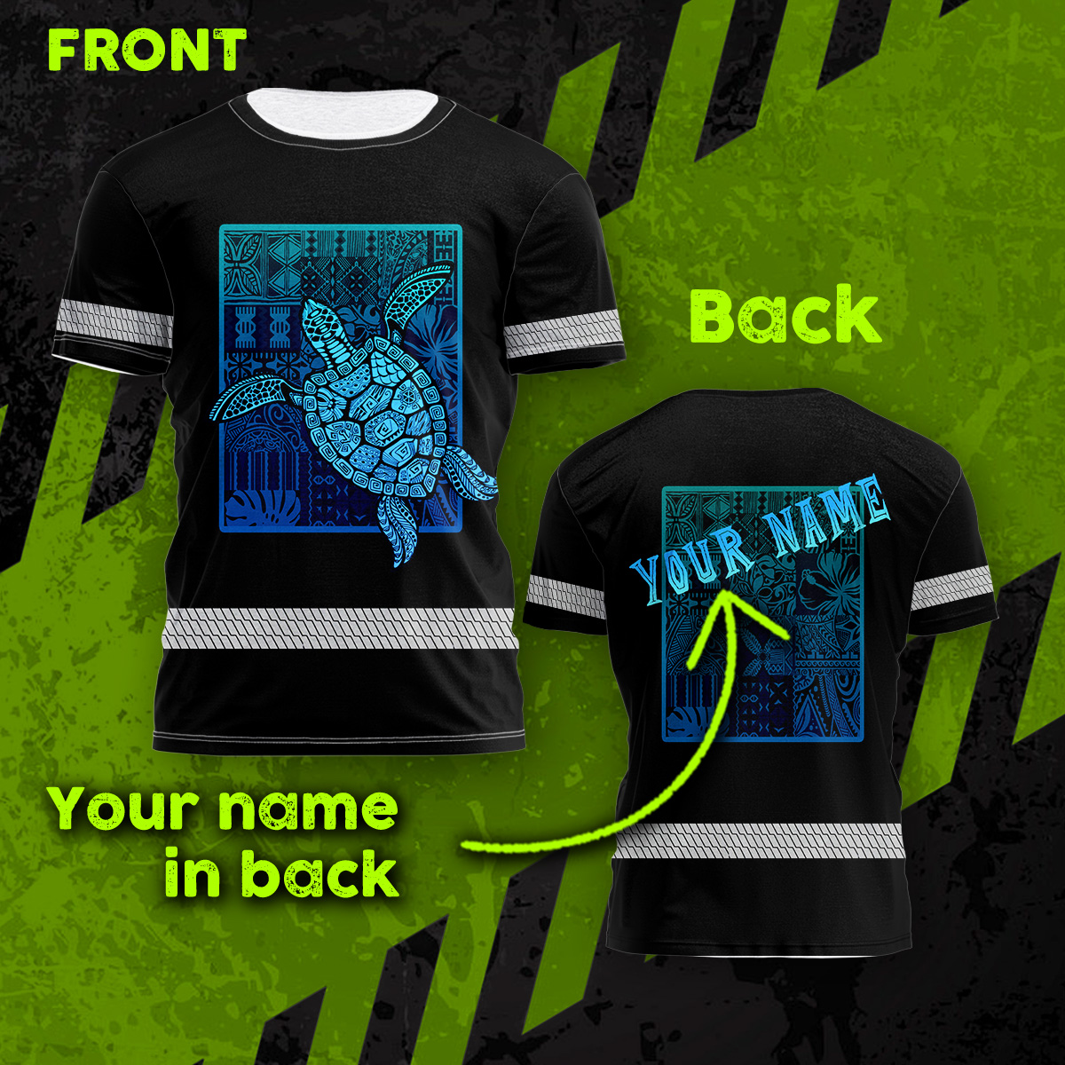 Hi Vis Shirt Reflective Gradient Blue Neon Polynesian Tribal Turtle Hawaiian Custom Name Safety Workwear