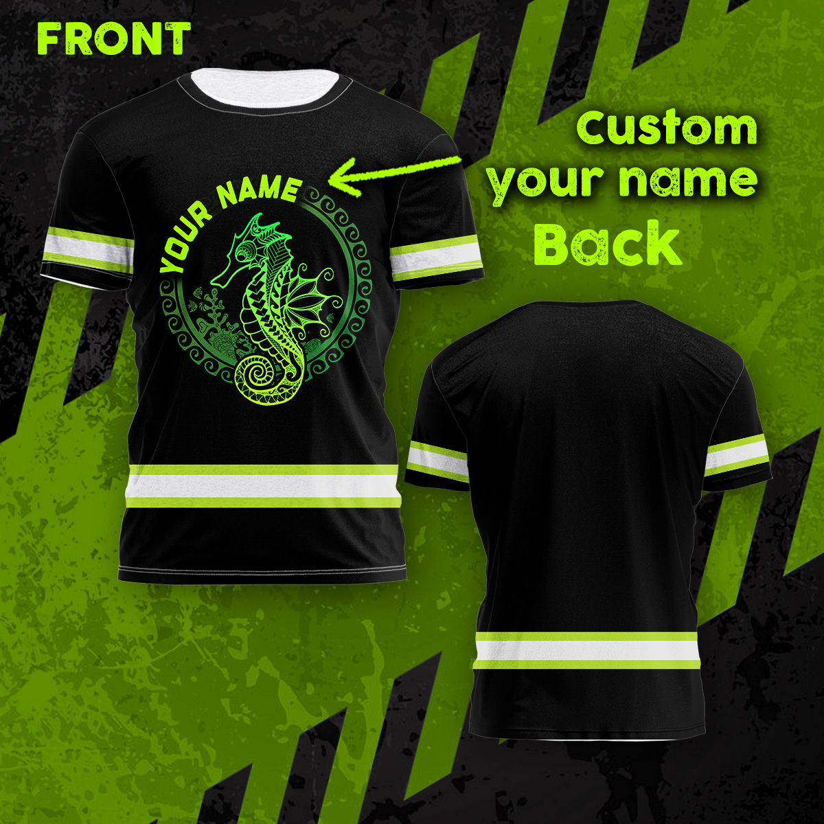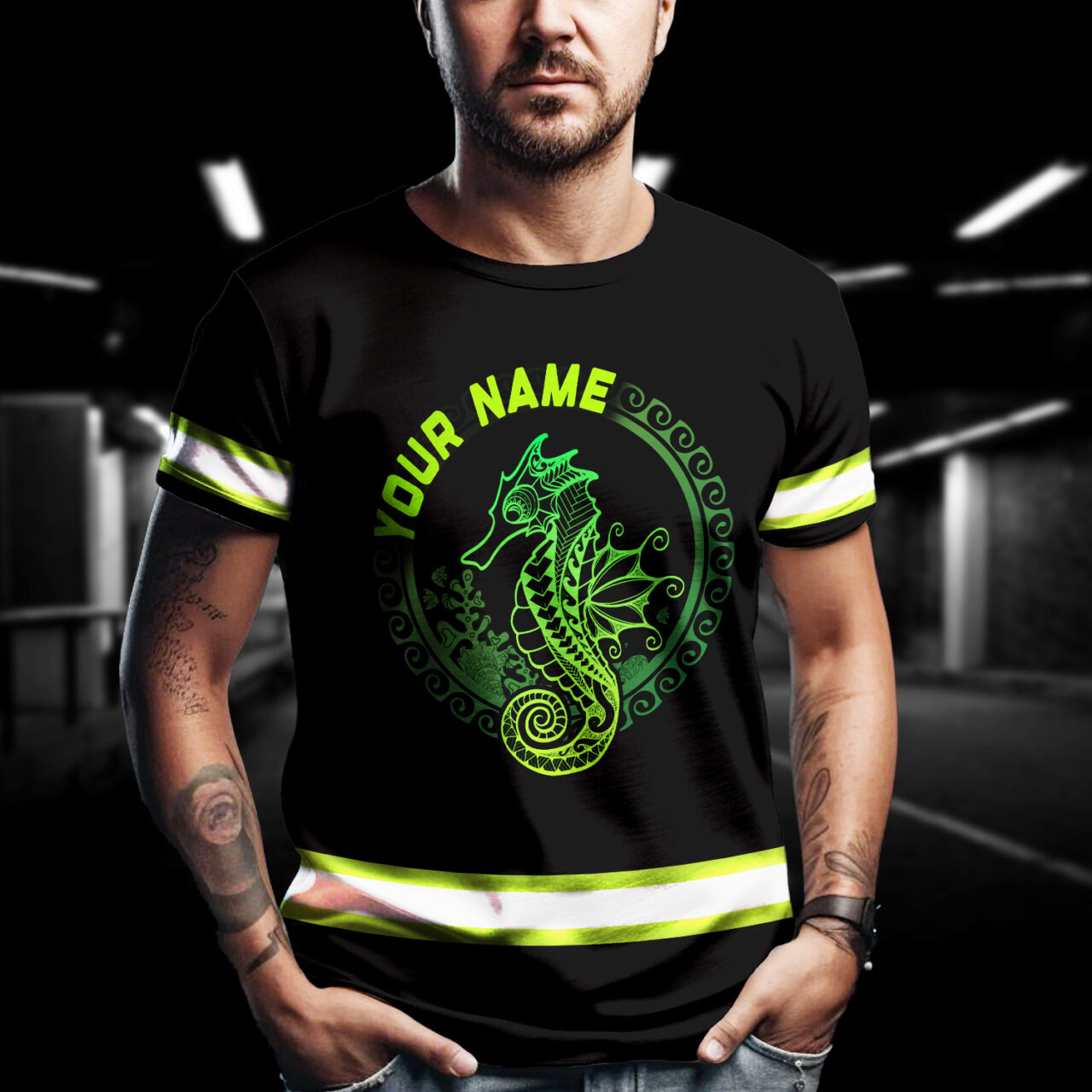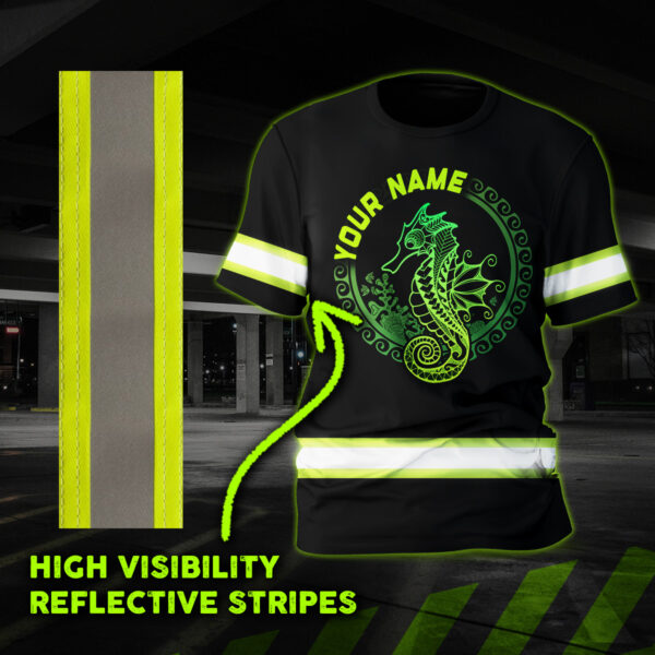 Be the first to review “Hi Vis Shirt Reflective Gradient Green Neon Polynesian Tribal Seahorse And Marine Animals Hawaiian Custom Name”