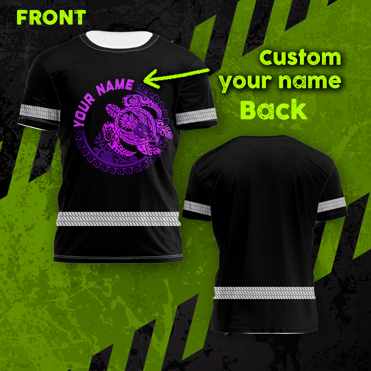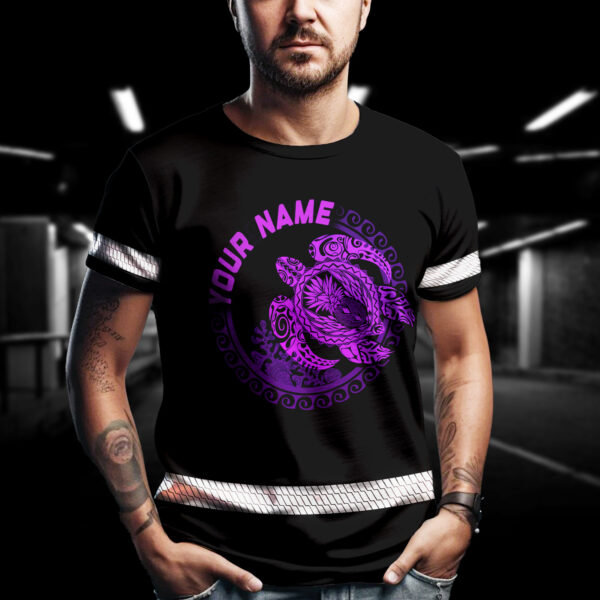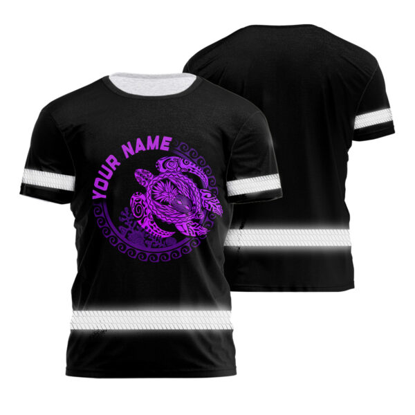Hi Vis Shirt Reflective Gradient Violet Neon Polynesian Turtle Hawaiian Custom Name Safety Workwear