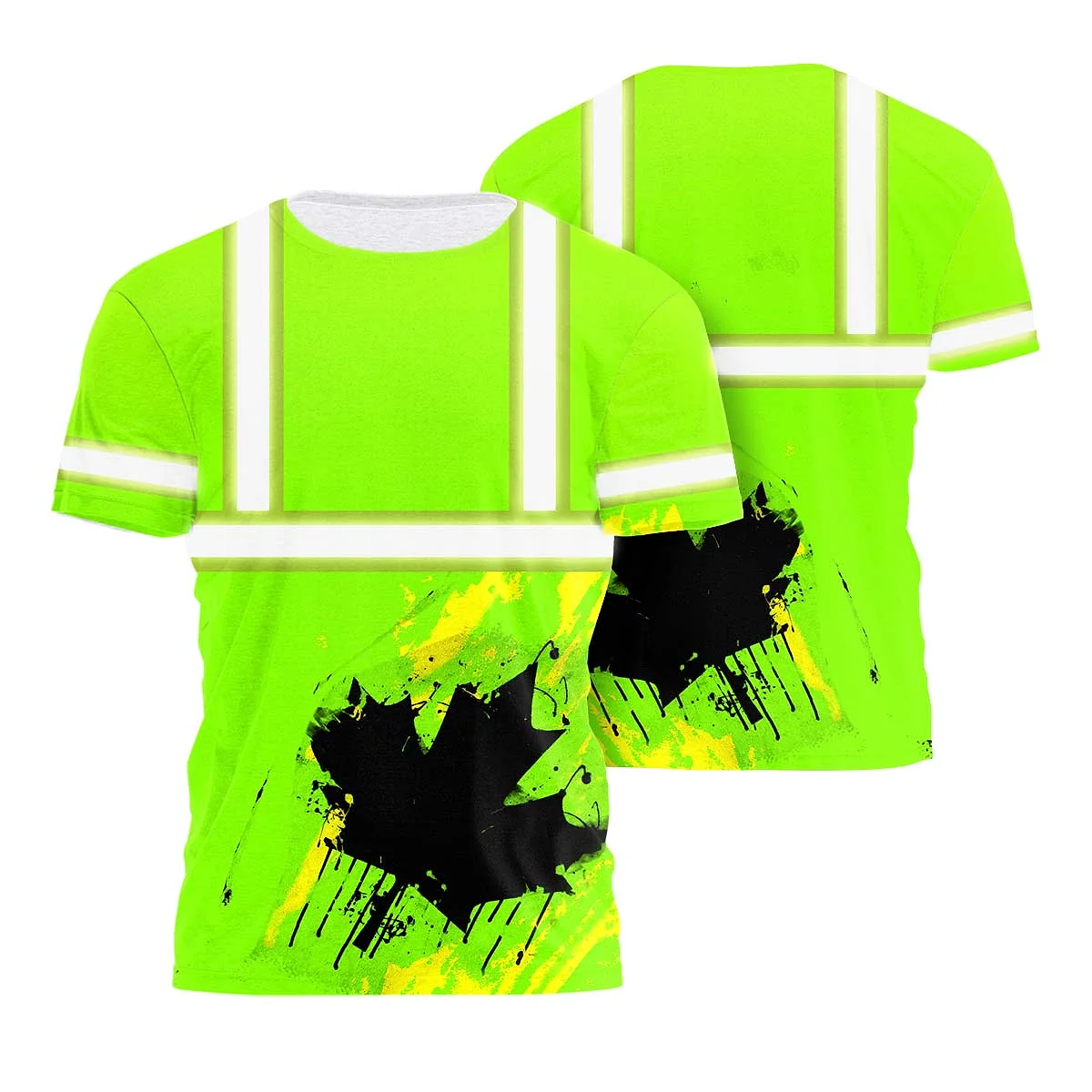 Hi Vis Shirt Reflective Green Canada Flag Safety Workwear For Worker, Operator, Patriotic
