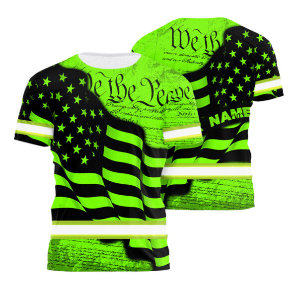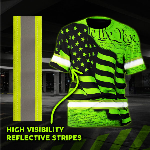 Hi Vis Shirt Reflective Green Neon Pattern Flag Custom Name Safety Workwear For Runners, Cyclists, Patriotic