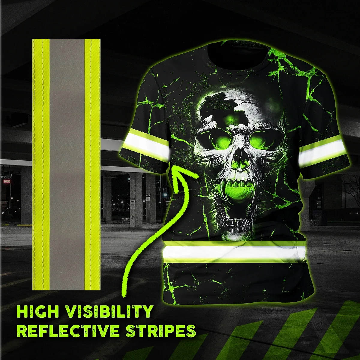 Hi Vis Shirt Reflective Green Neon Skull Safety Workwear For Skull Lover