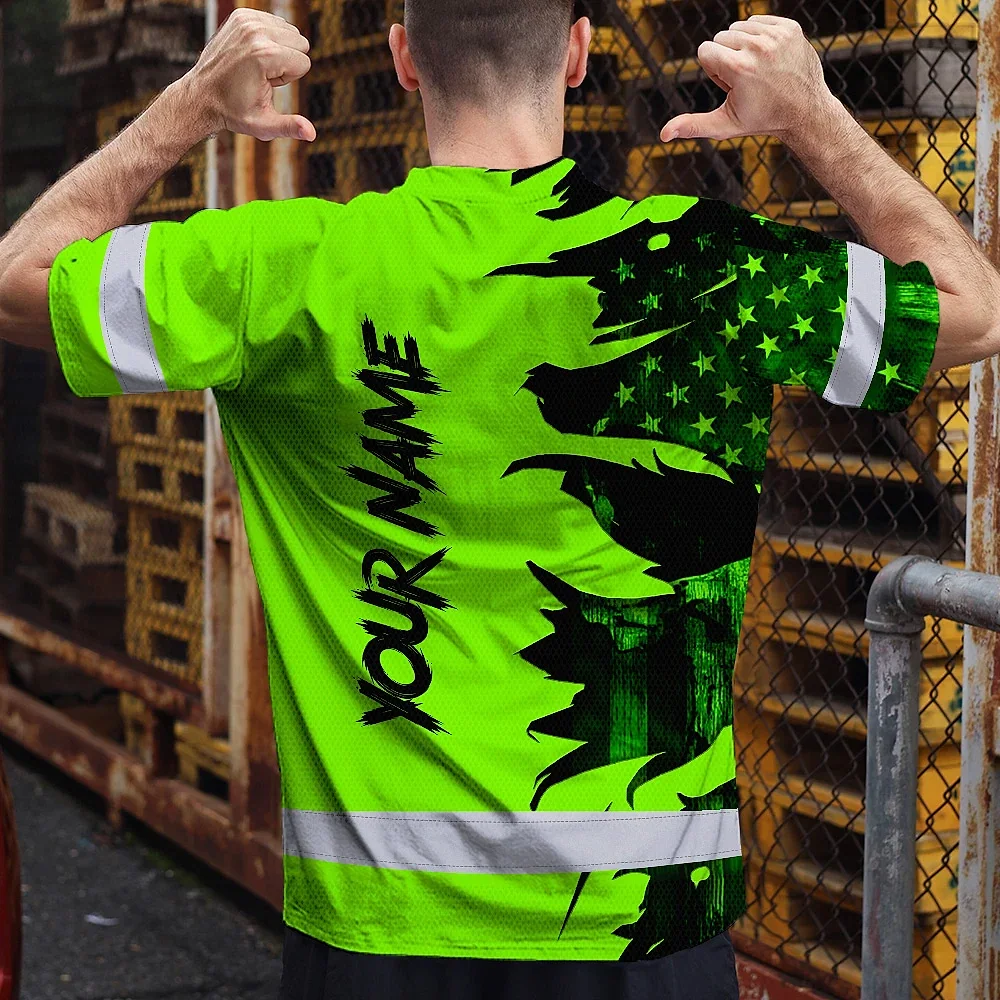 Select options This product has multiple variants. The options may be chosen on the product pageCustomized Reflective Eagle Hi Vis Green Tshirt USA Flag Safety Clothing