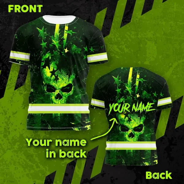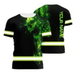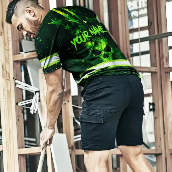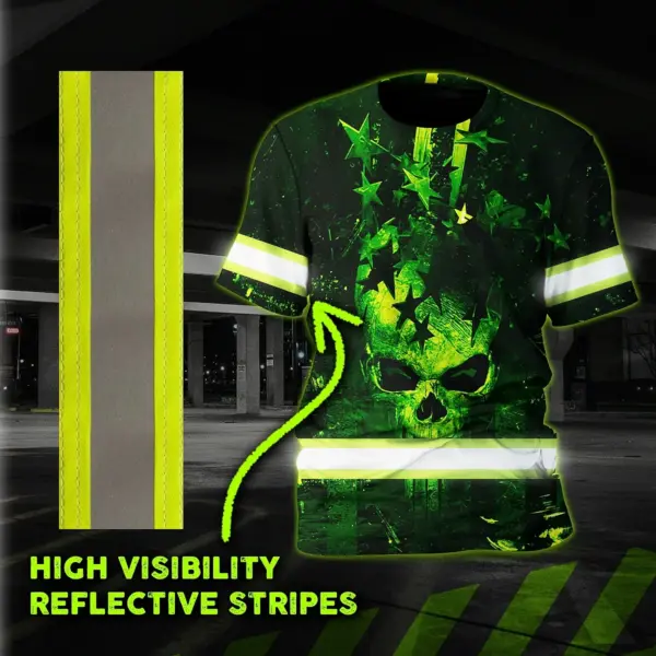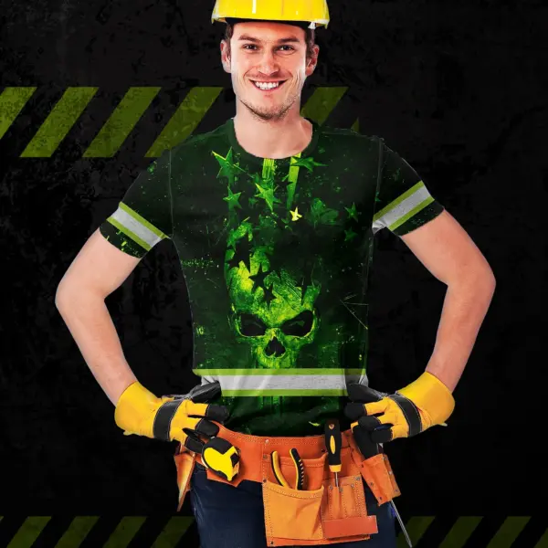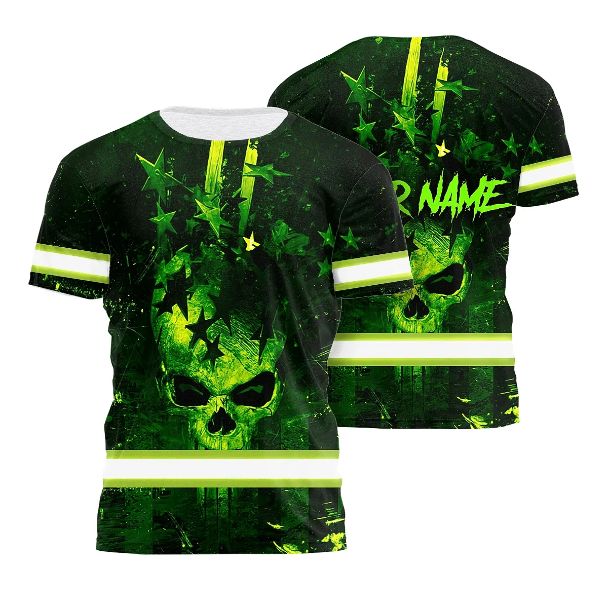 Hi Vis Shirt Reflective Green Skull American Flag Safety Workwear For Workers, Truckers, Operators