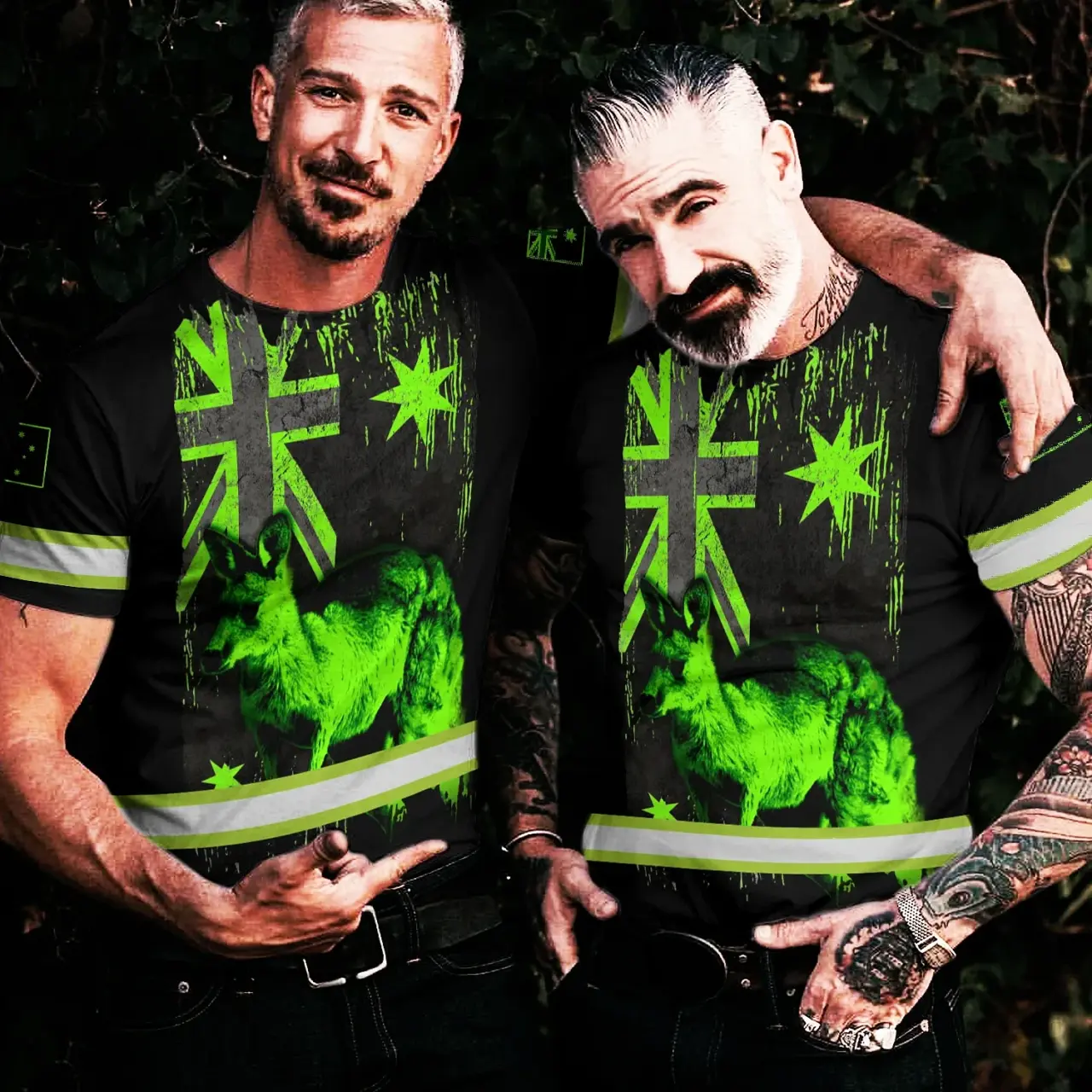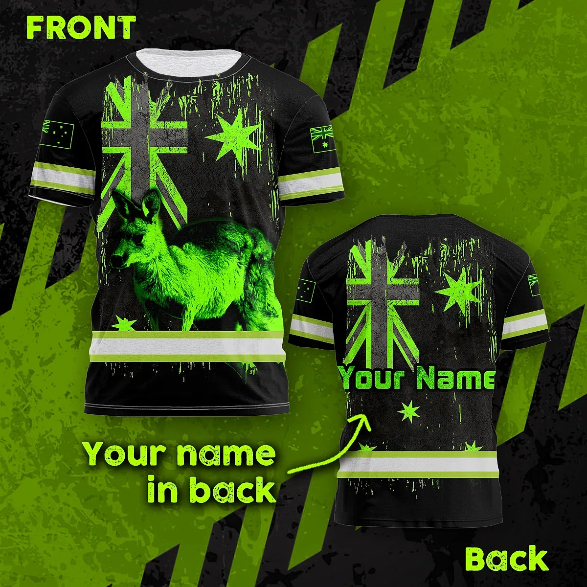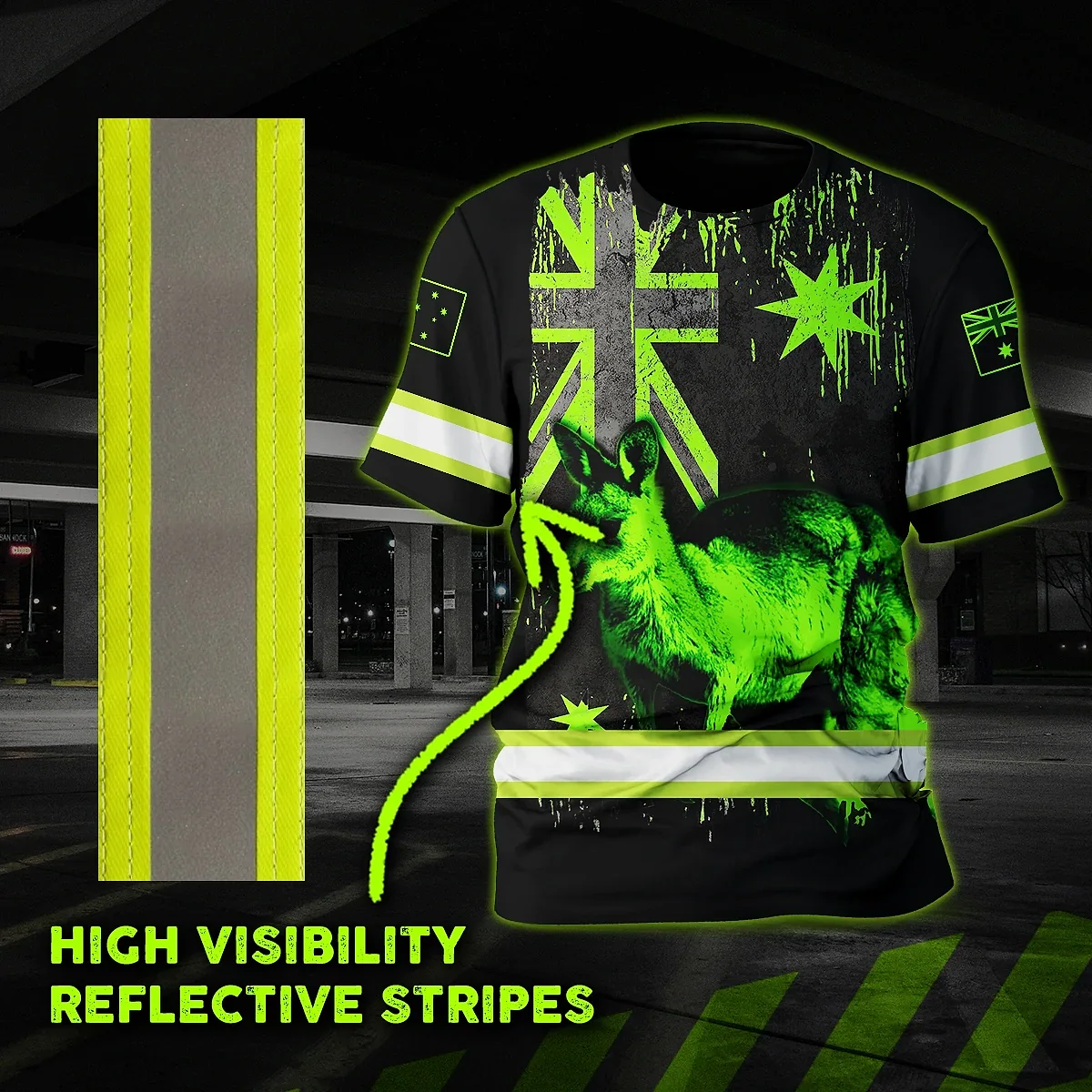 Hi Vis Shirt Reflective Kangaroo AU Flag Green Neon Safety