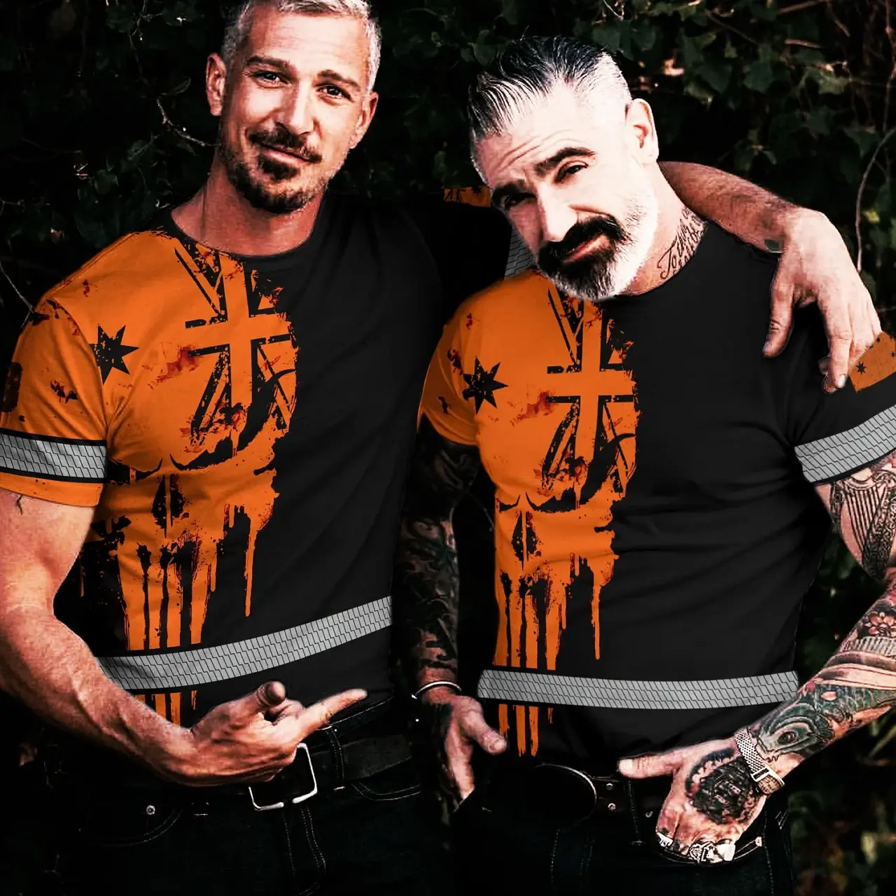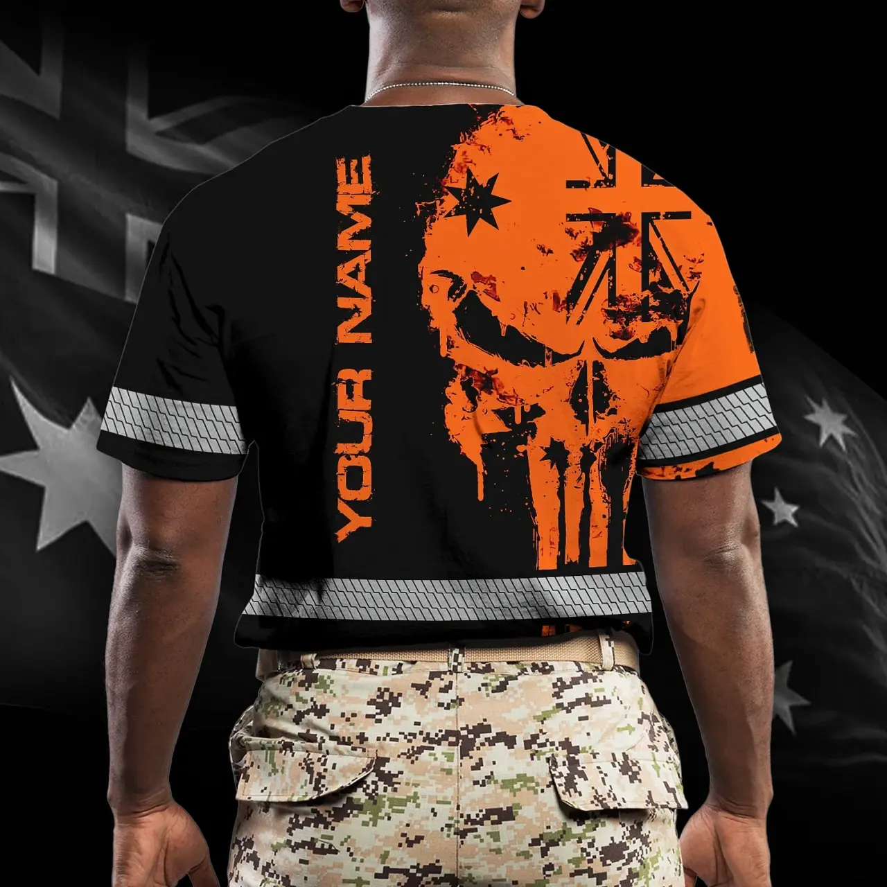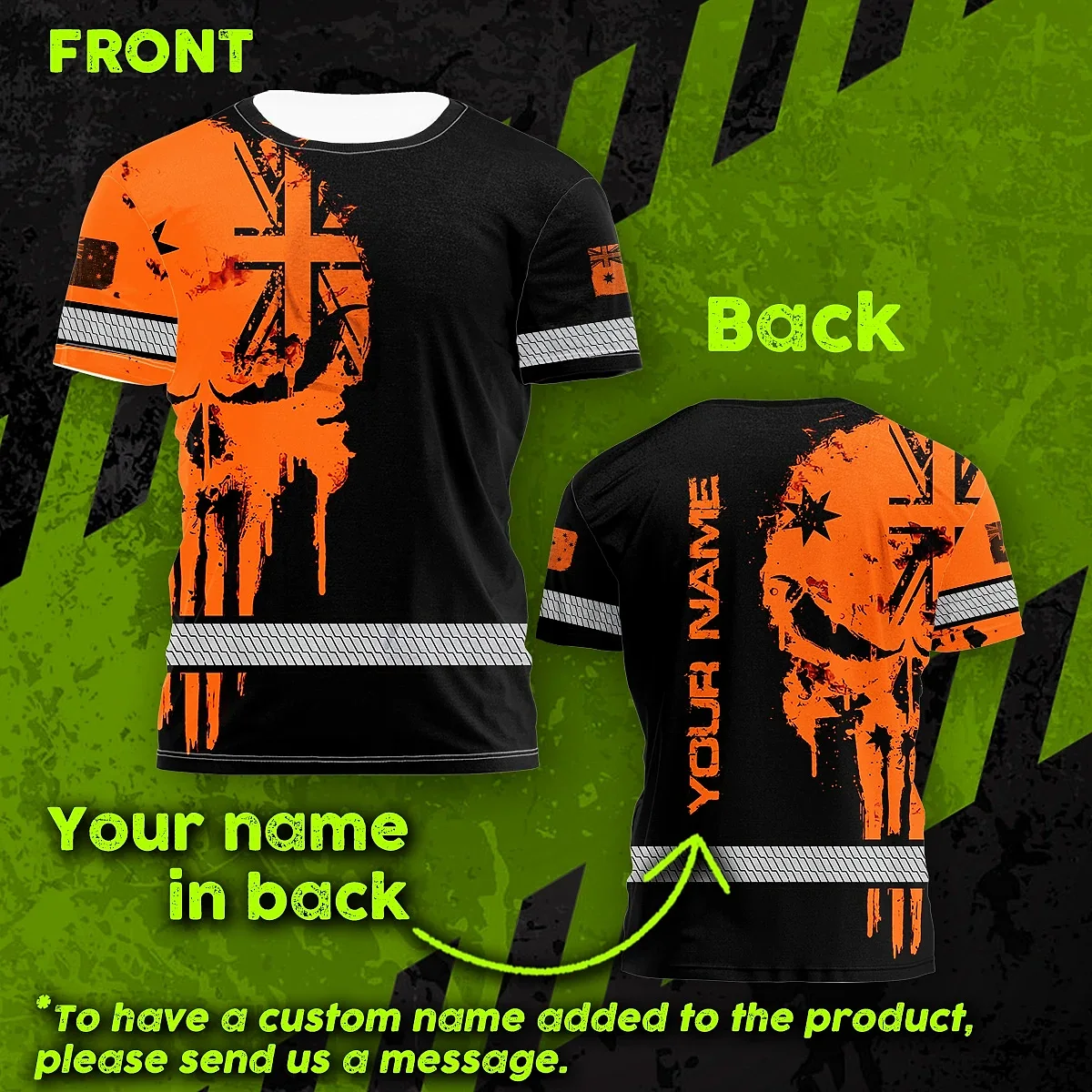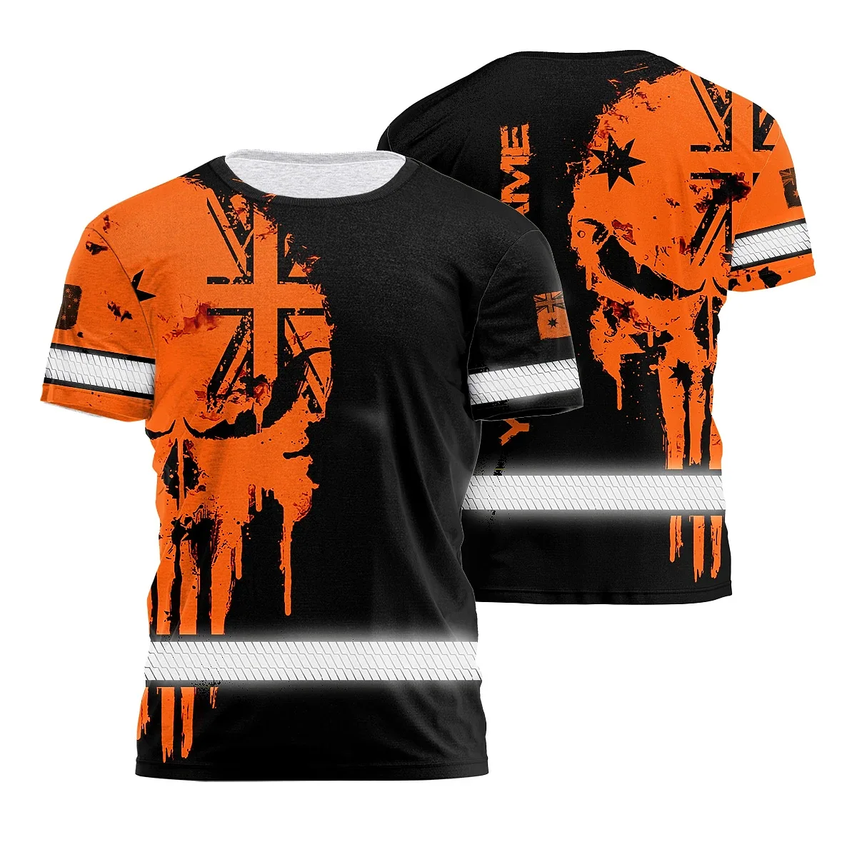 Hi Vis Shirt Reflective Orange Neon Skull AU Flag