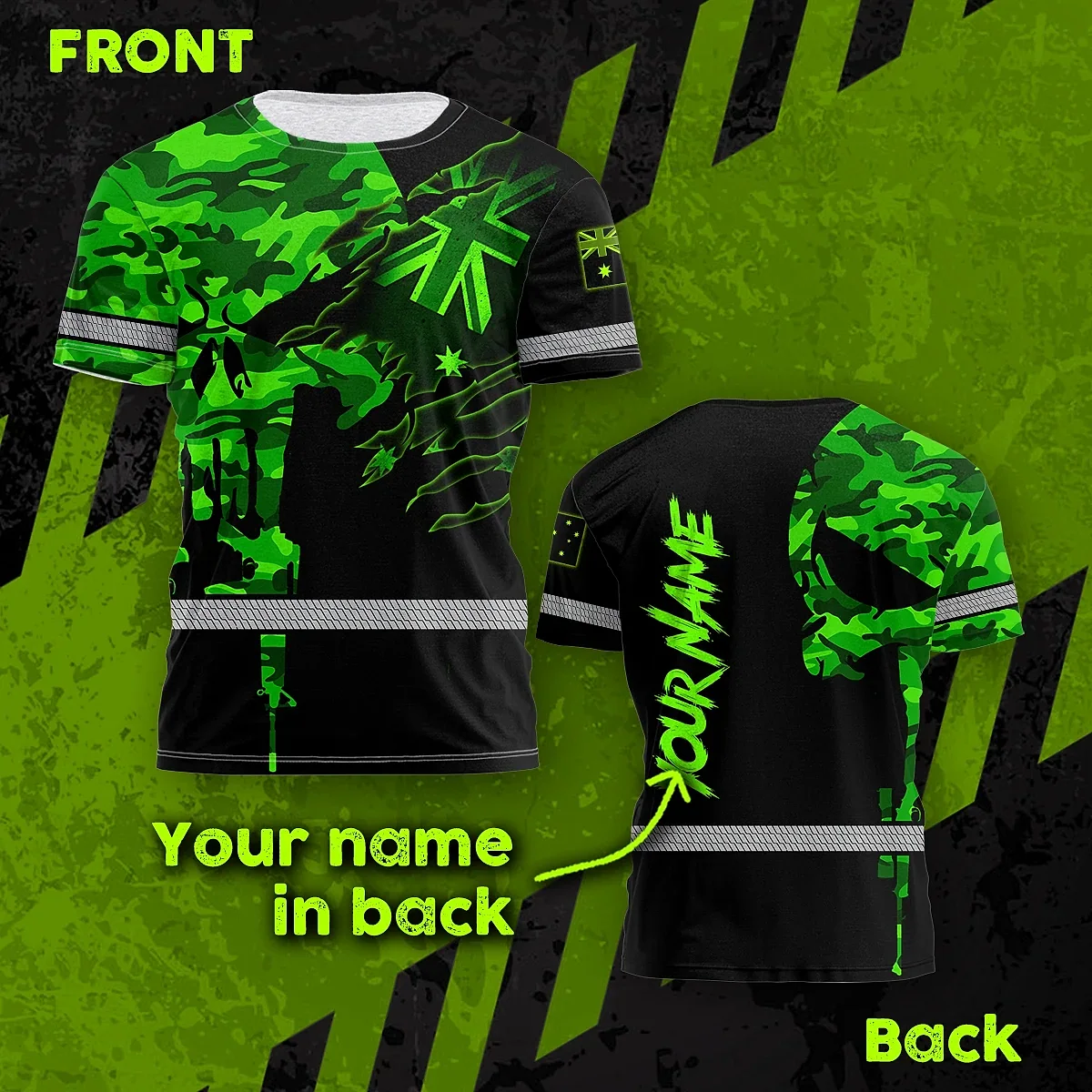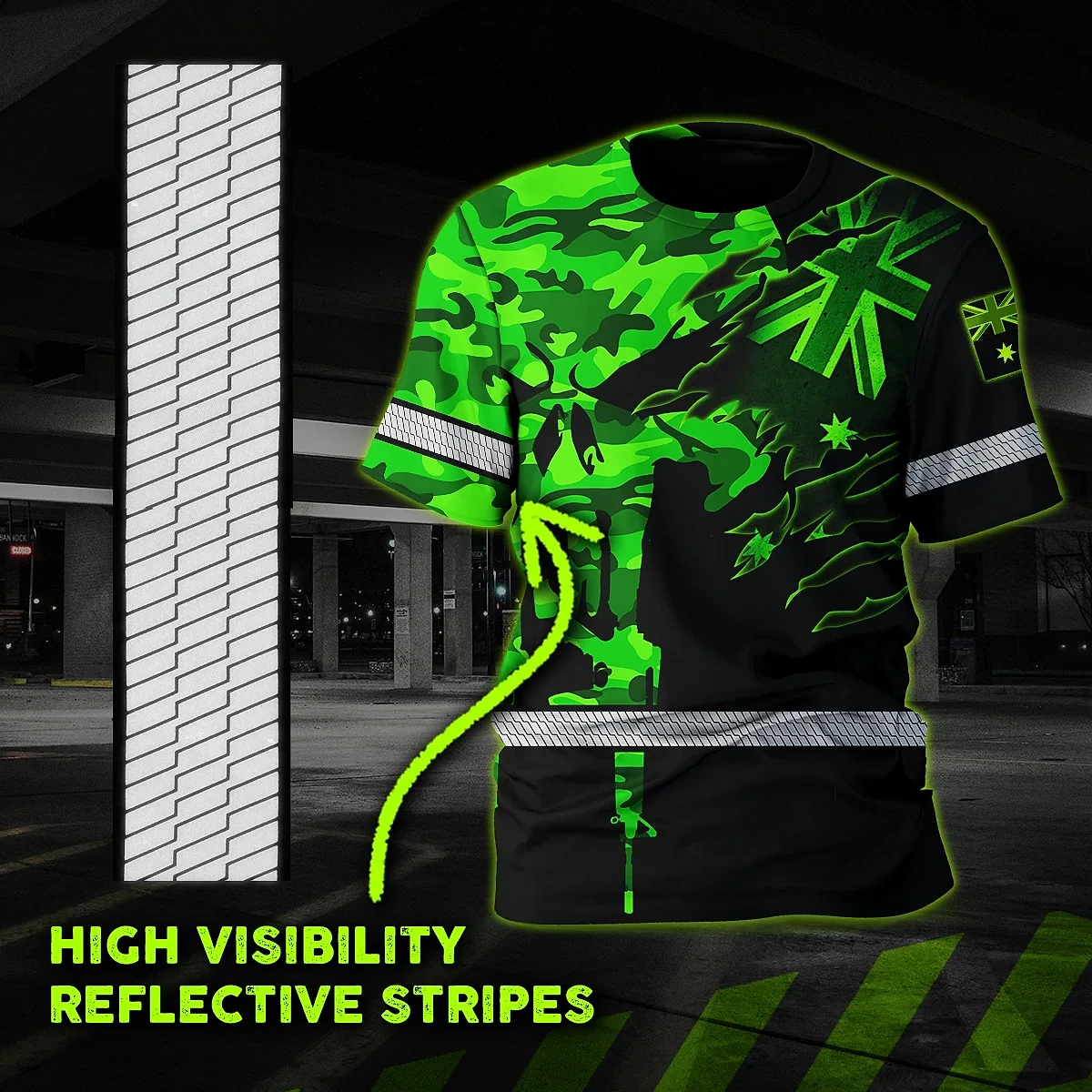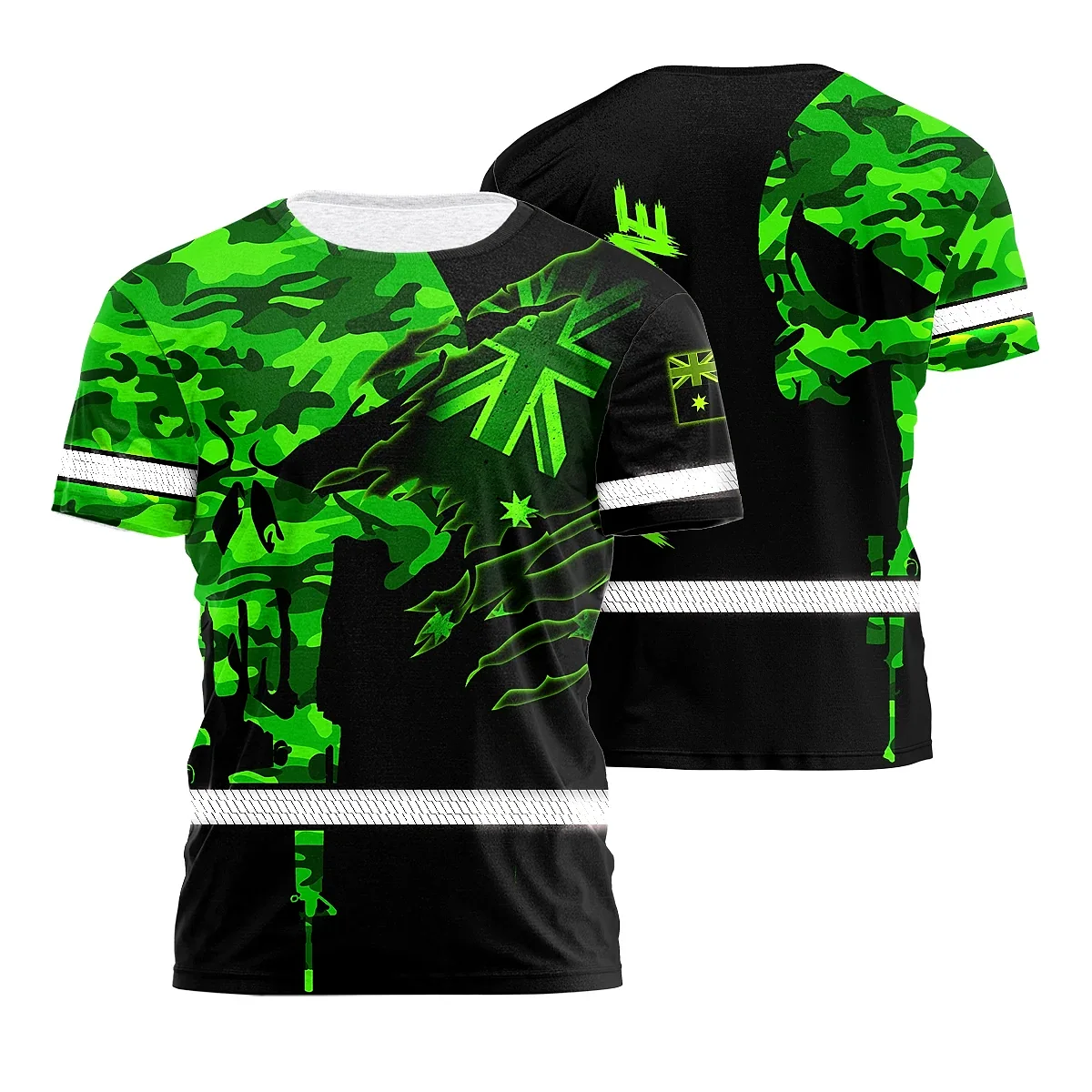 Hi Vis Shirt Reflective Skull Scratch Green Neon AU Flag Military Soldier