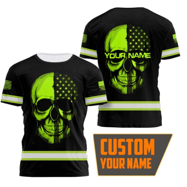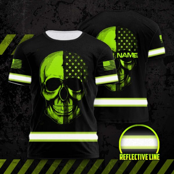 Hi Vis Shirt Reflective Skull With US Flag Custom Name Safety Workwear For Skull Lover
