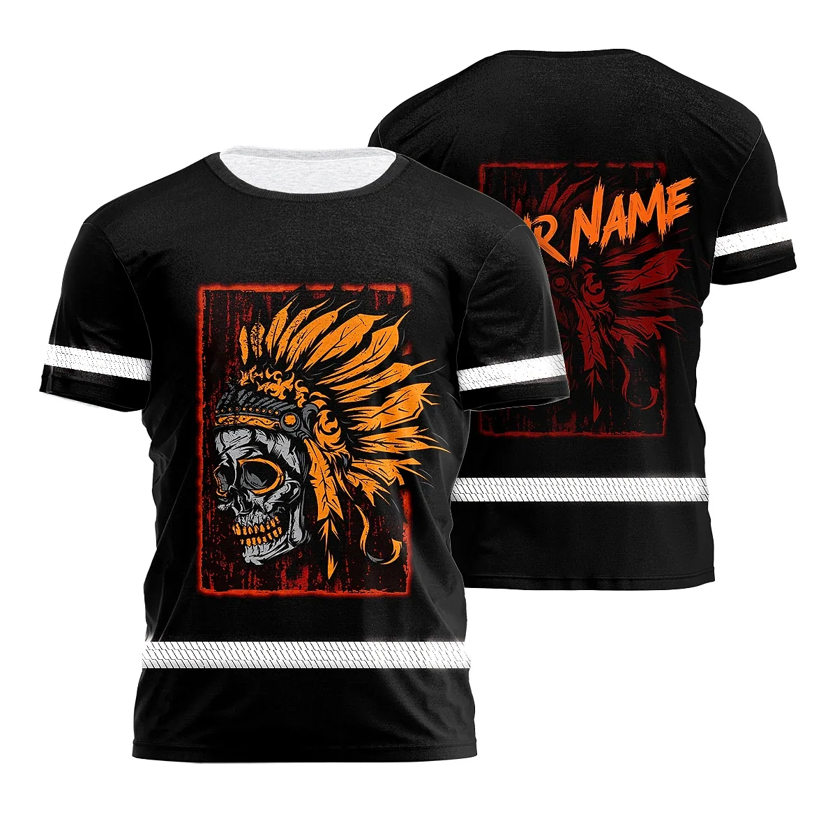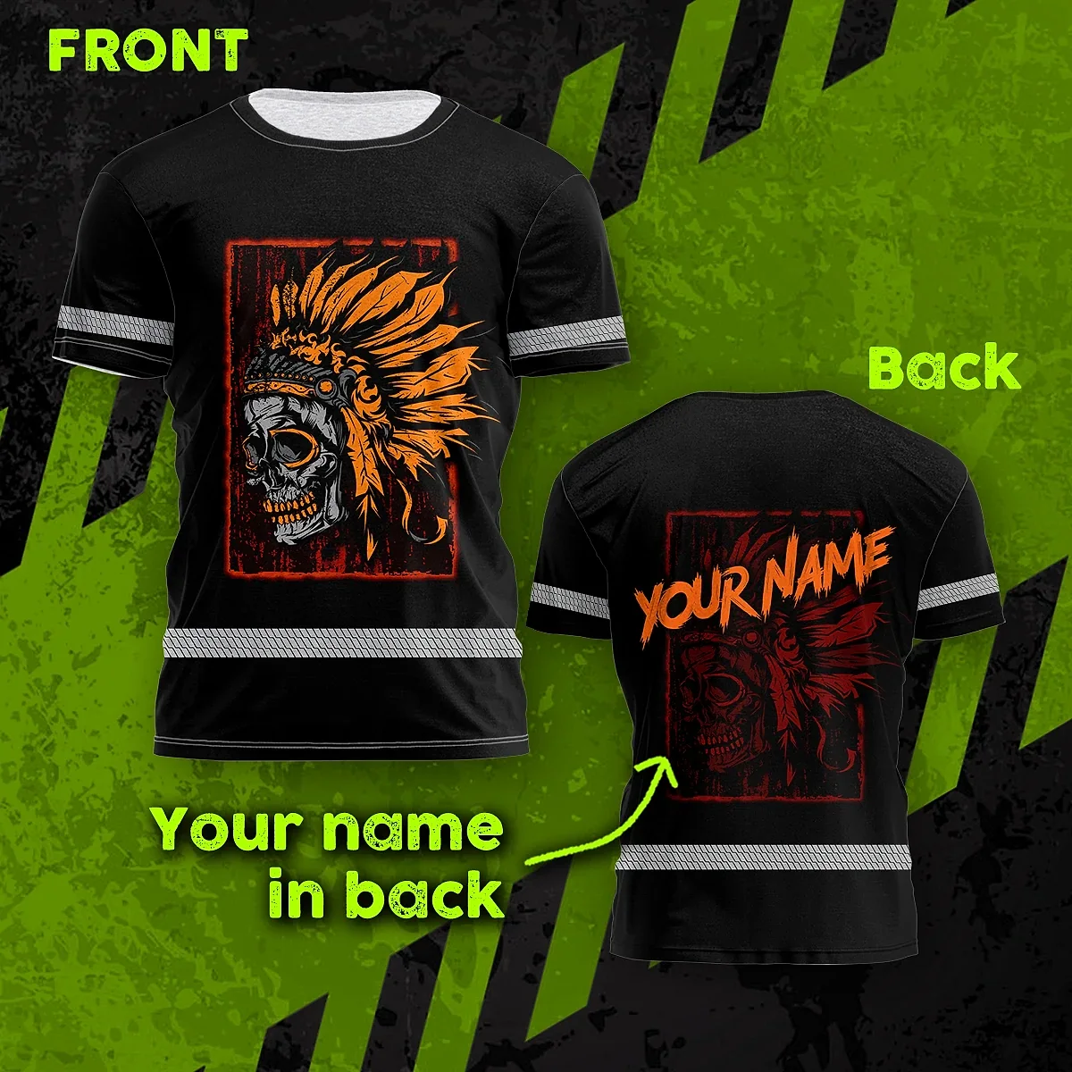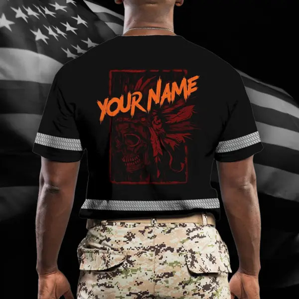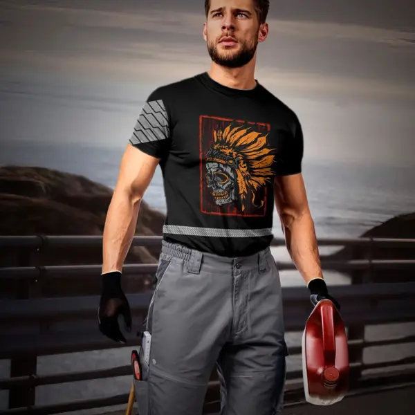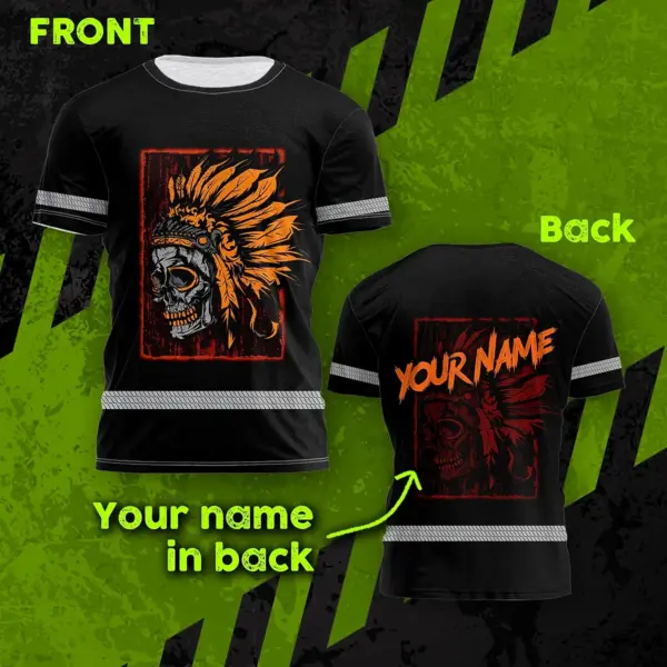 Hi Vis Shirt Reflective Tapes Black Orange Skull Native Shirt Custom Name Safety Workwear For Workers, Truckers, Operators