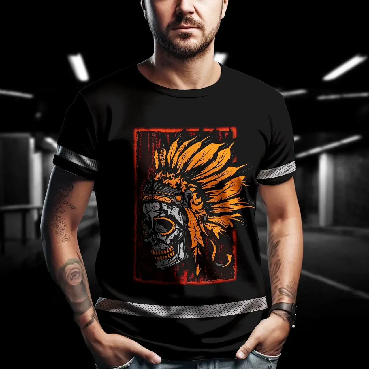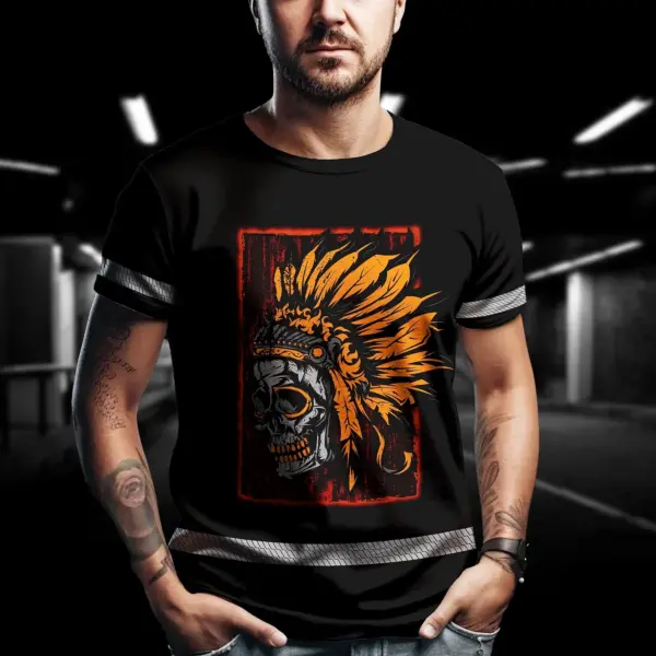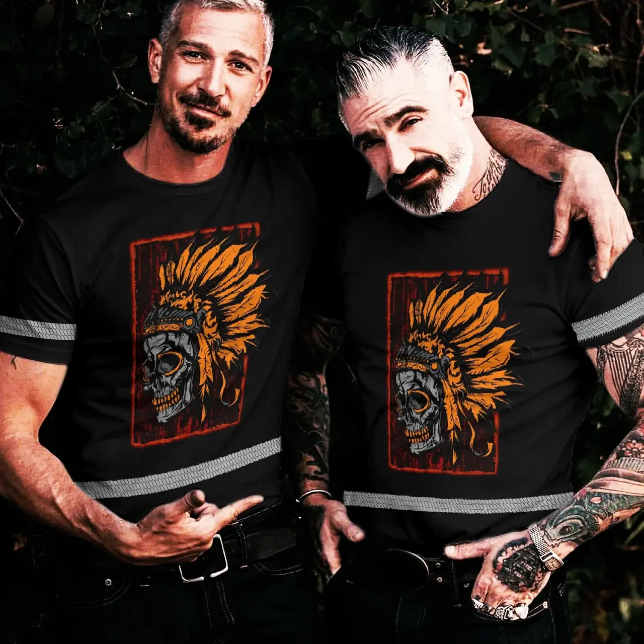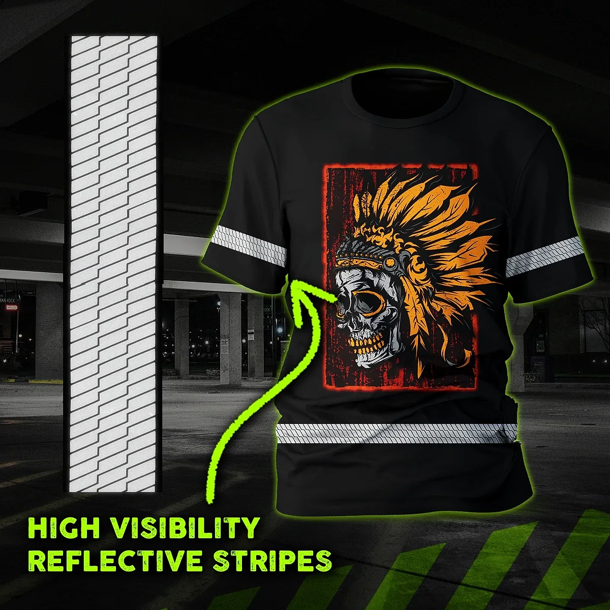 Hi Vis Shirt Reflective Tapes Black Orange Skull Native Shirt Custom Name Safety Workwear For Workers, Truckers, Operators