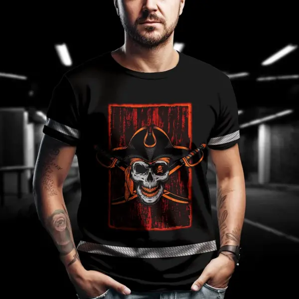 Hi Vis Shirt Reflective Tapes Black Orange Skull Sword Shirt Custom Name Safety Workwear For Workers, Truckers, Operators