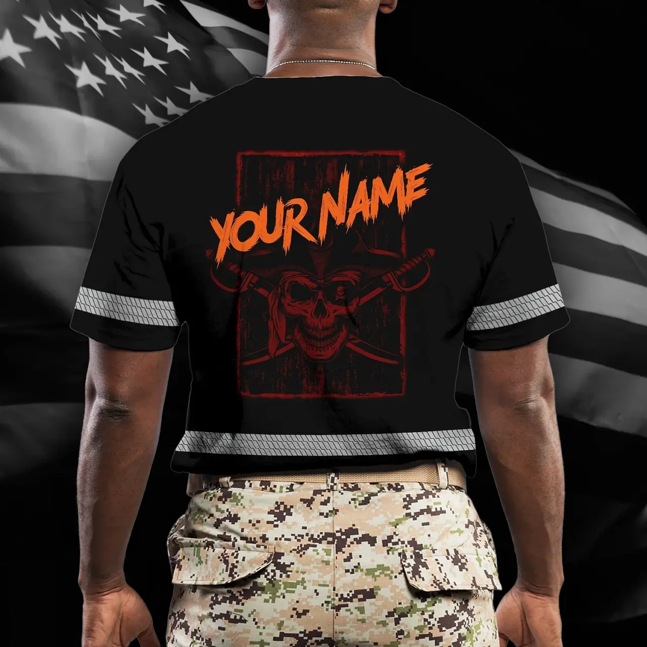 Select options This product has multiple variants. The options may be chosen on the product pageHi Vis Shirt Reflective Skull With US Flag Custom Name Safety Workwear For Skull Lover