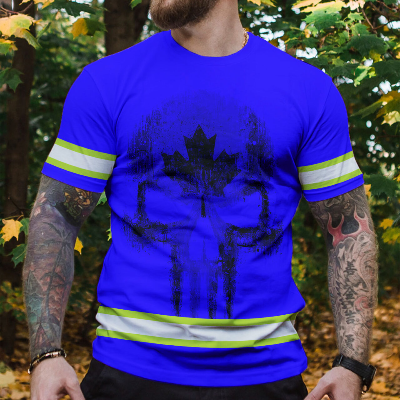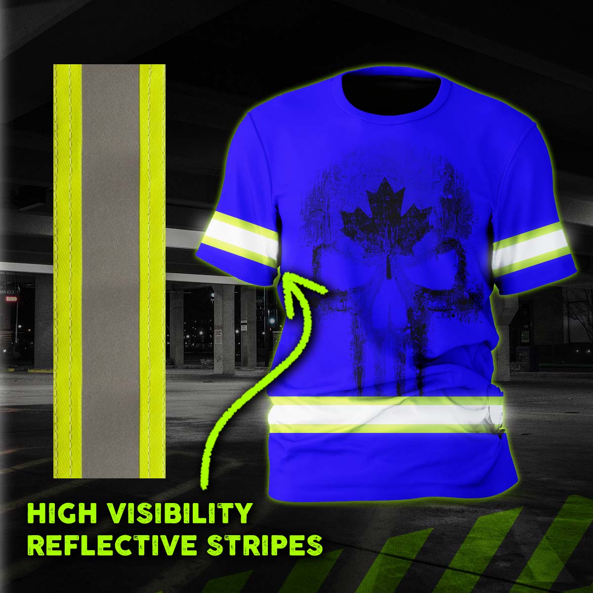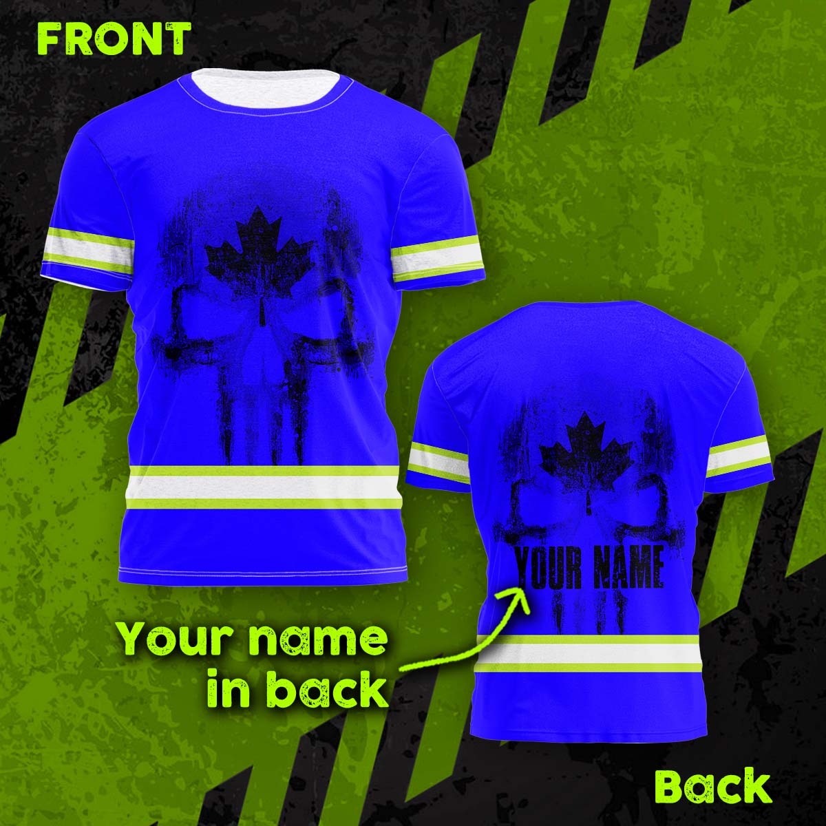 Hi Vis Shirt Reflective Tapes Blue Neon Canada Flag Custom Name