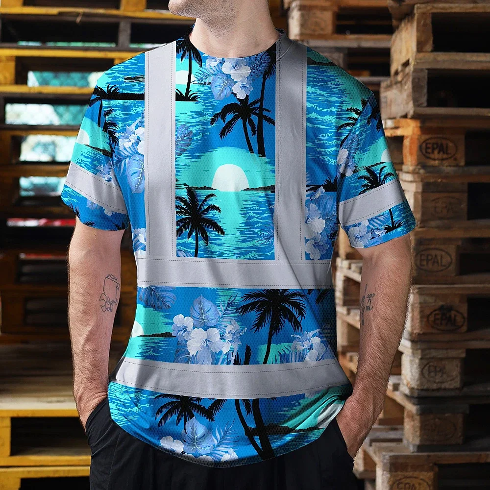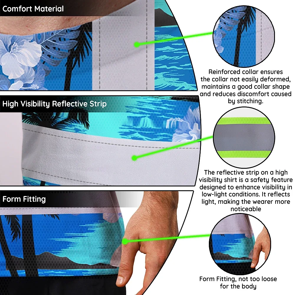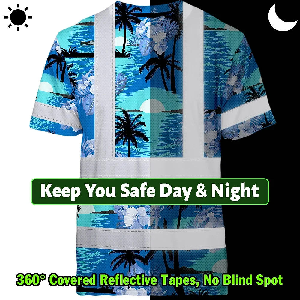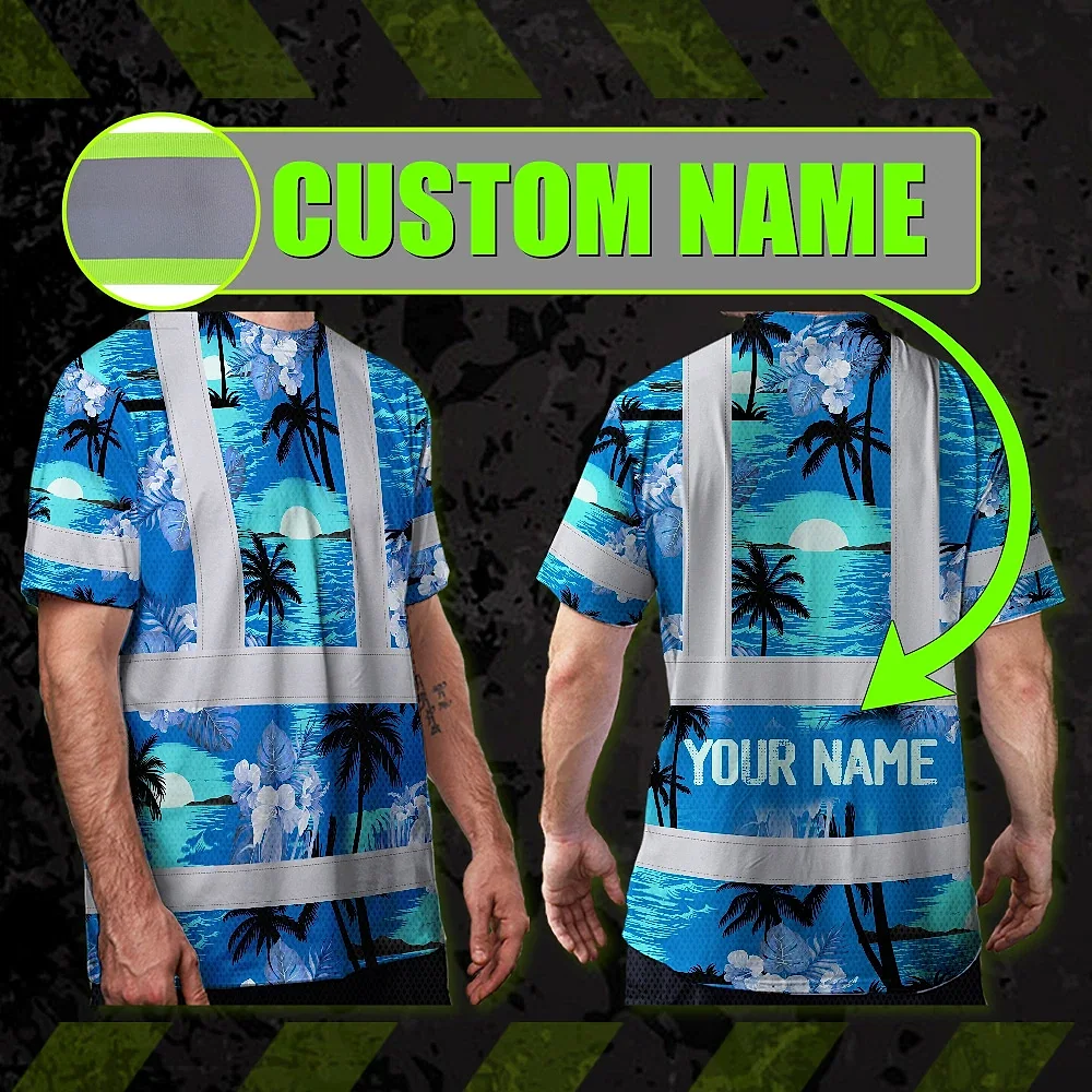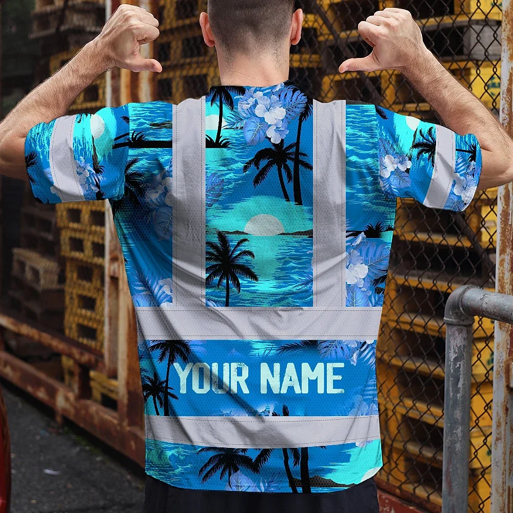 Hi Vis Shirt Reflective Tapes Blue Neon Flowers 4 Custom Name