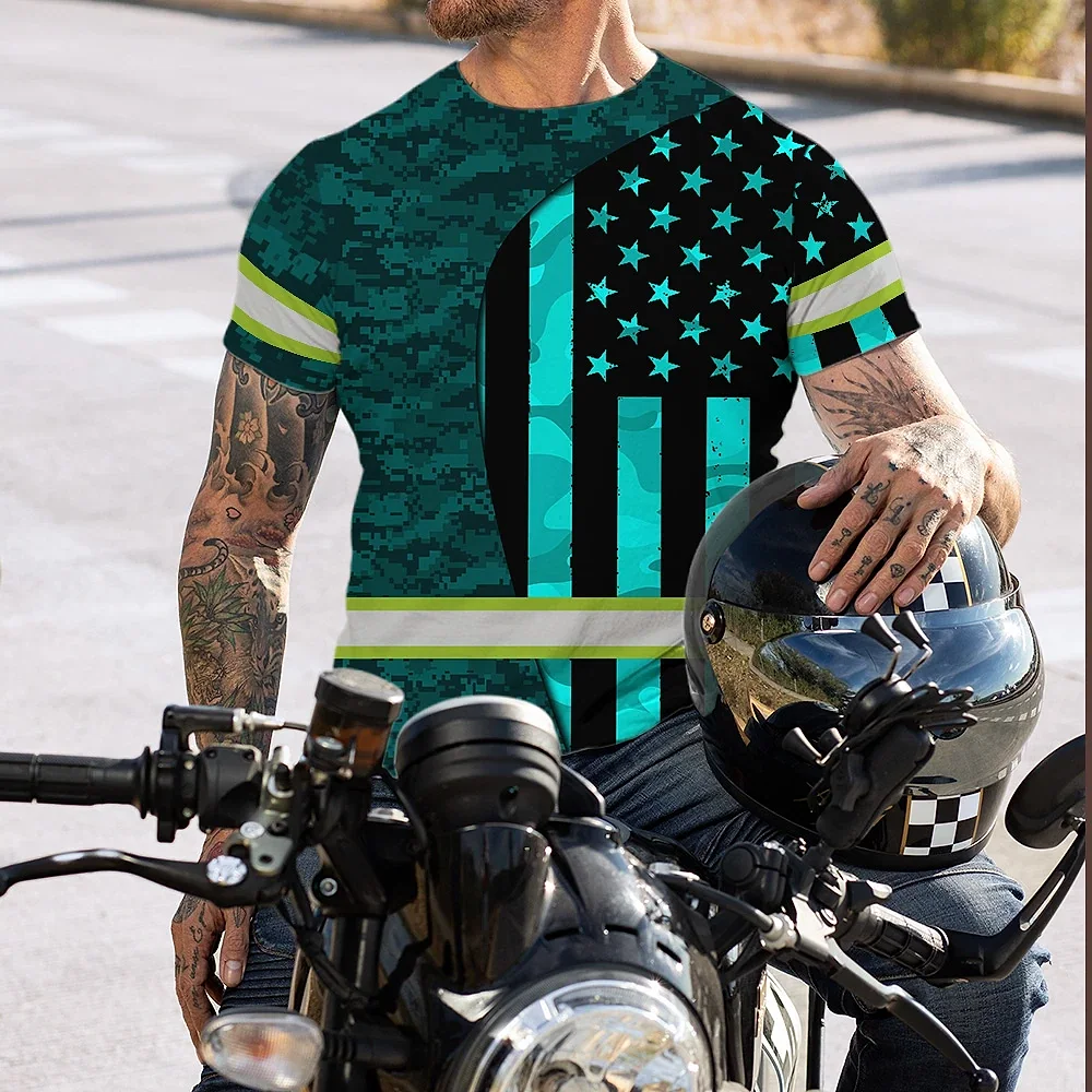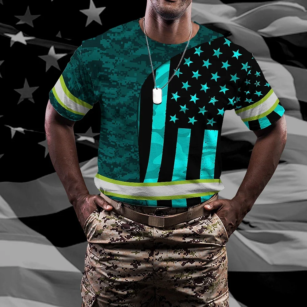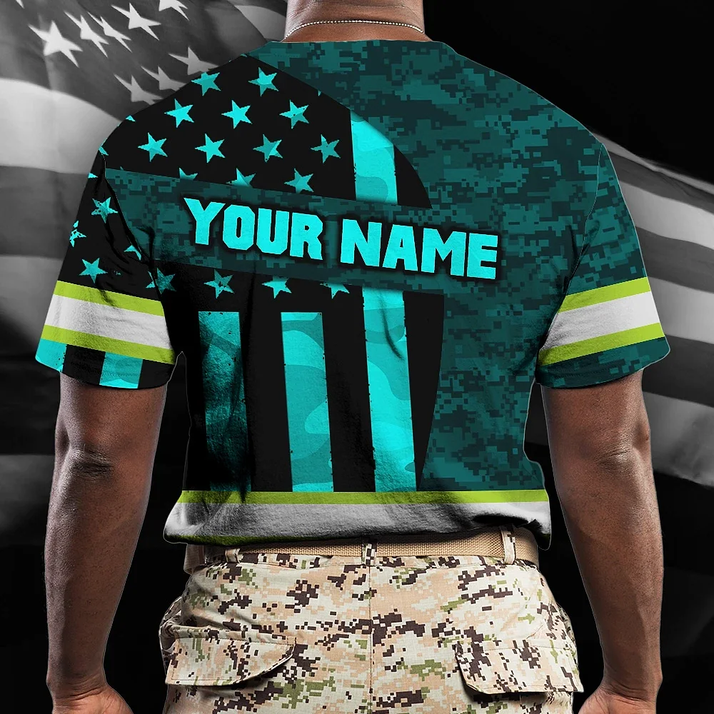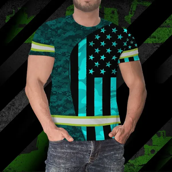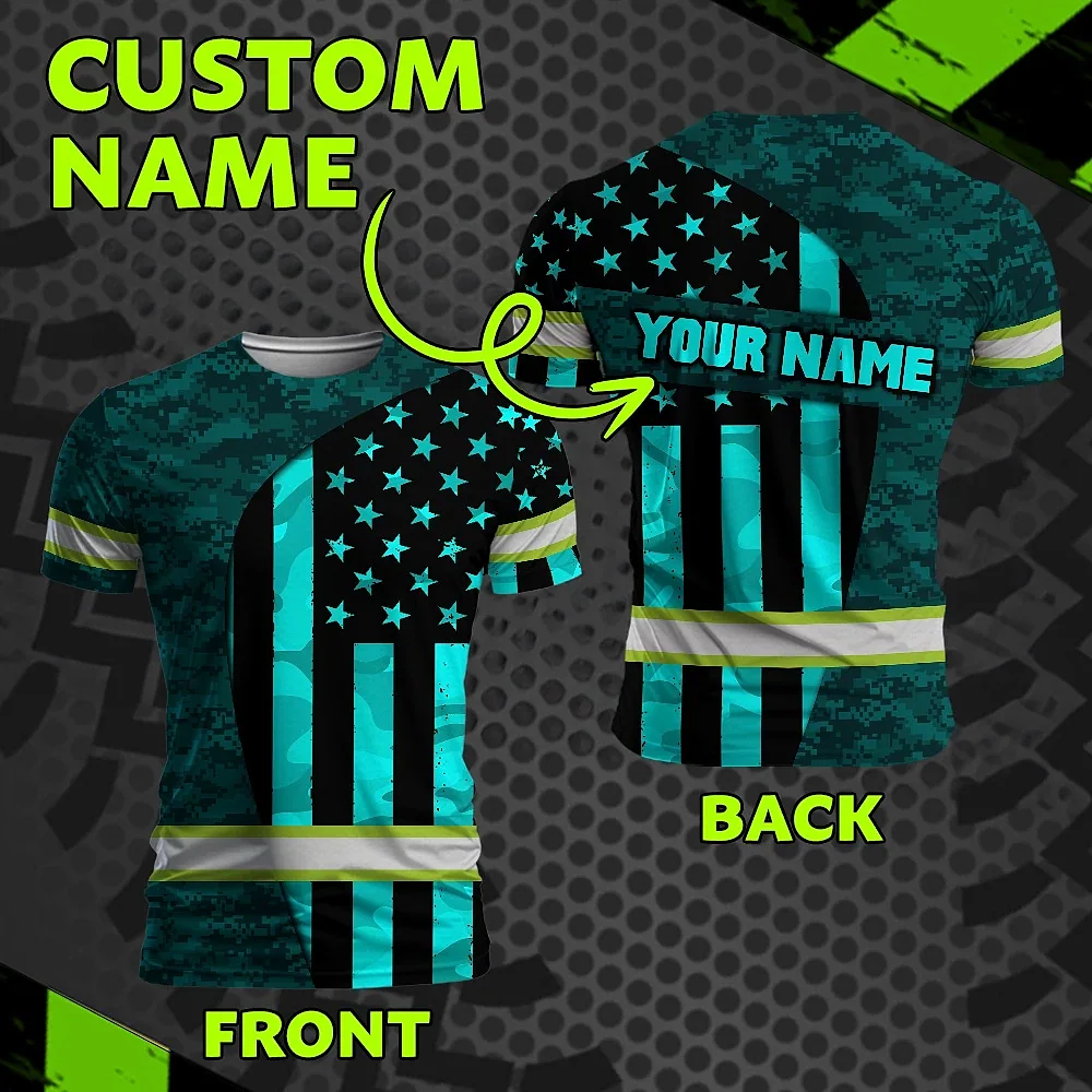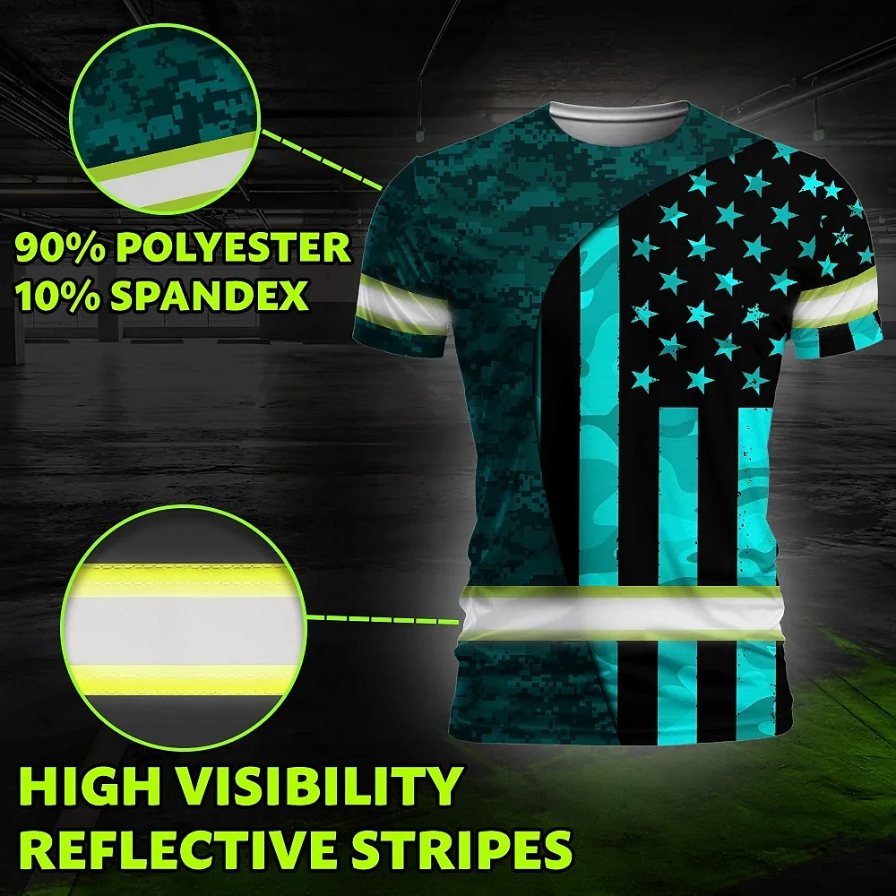 Hi Vis Shirt Reflective Tapes Blue Neon US Flag Camo Custom Name Safety Workwear For Workers, Runners, Cyclists