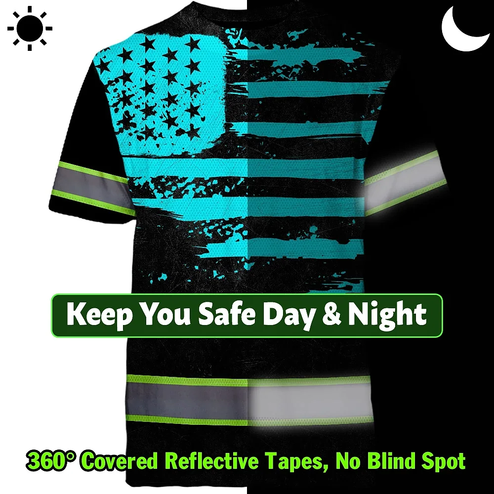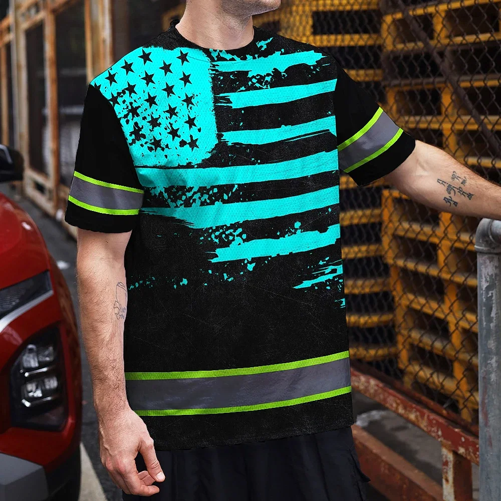 Select options This product has multiple variants. The options may be chosen on the product pageGreen Hi Vis Shirts Reflective Safety Work Tshirt Custom Neon American Flag Design