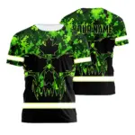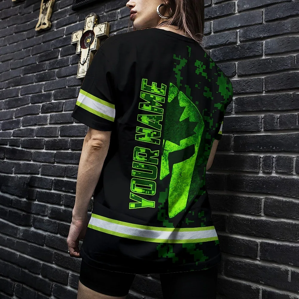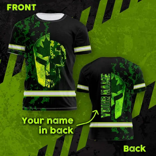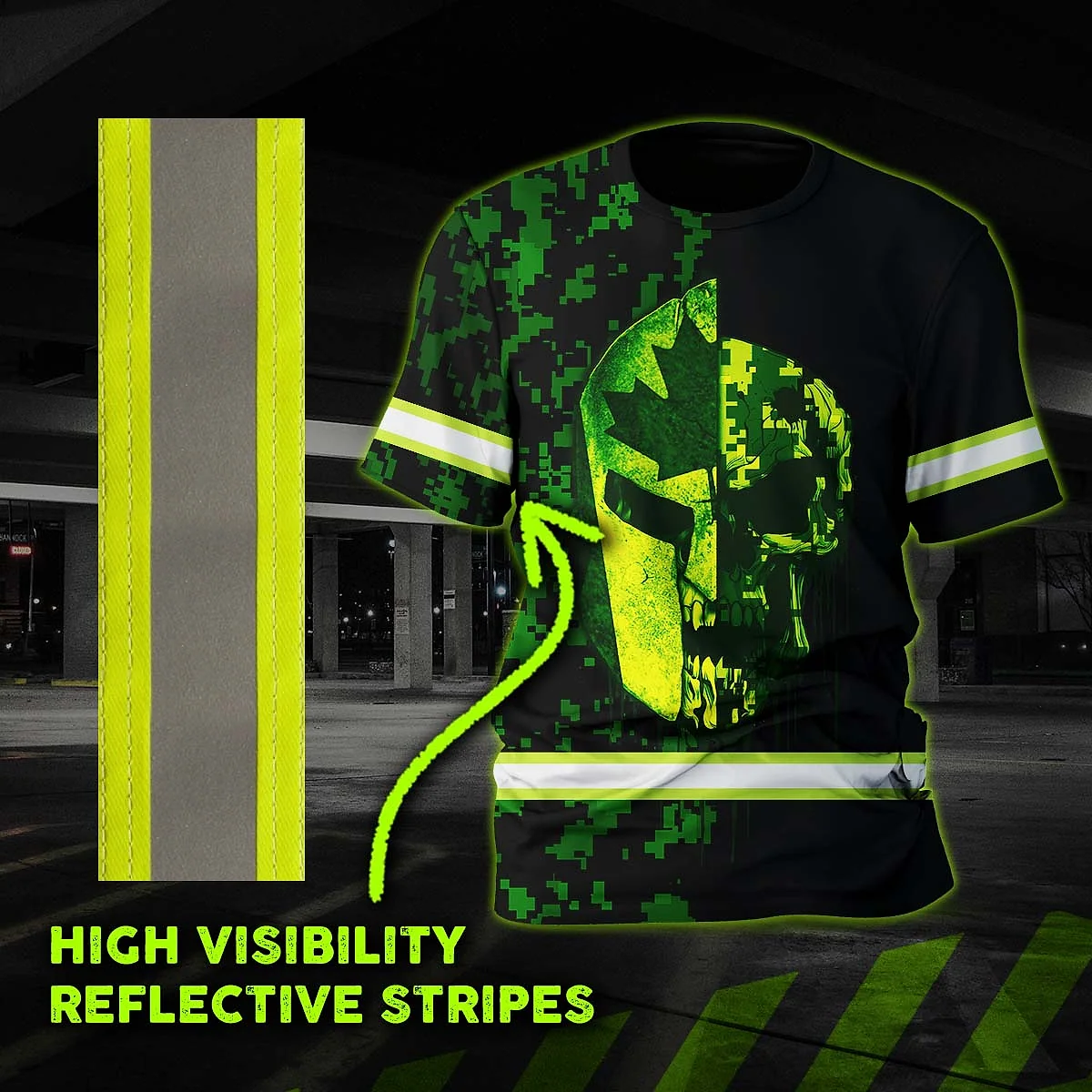 Hi Vis Shirt Reflective Tapes Camo Green Neon Black And Canada Flag Custom Name Safety Workwear For Worker, Operator, Patriotic