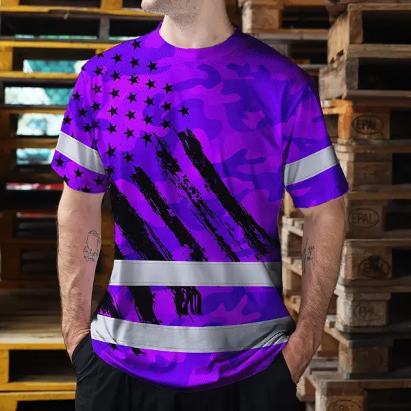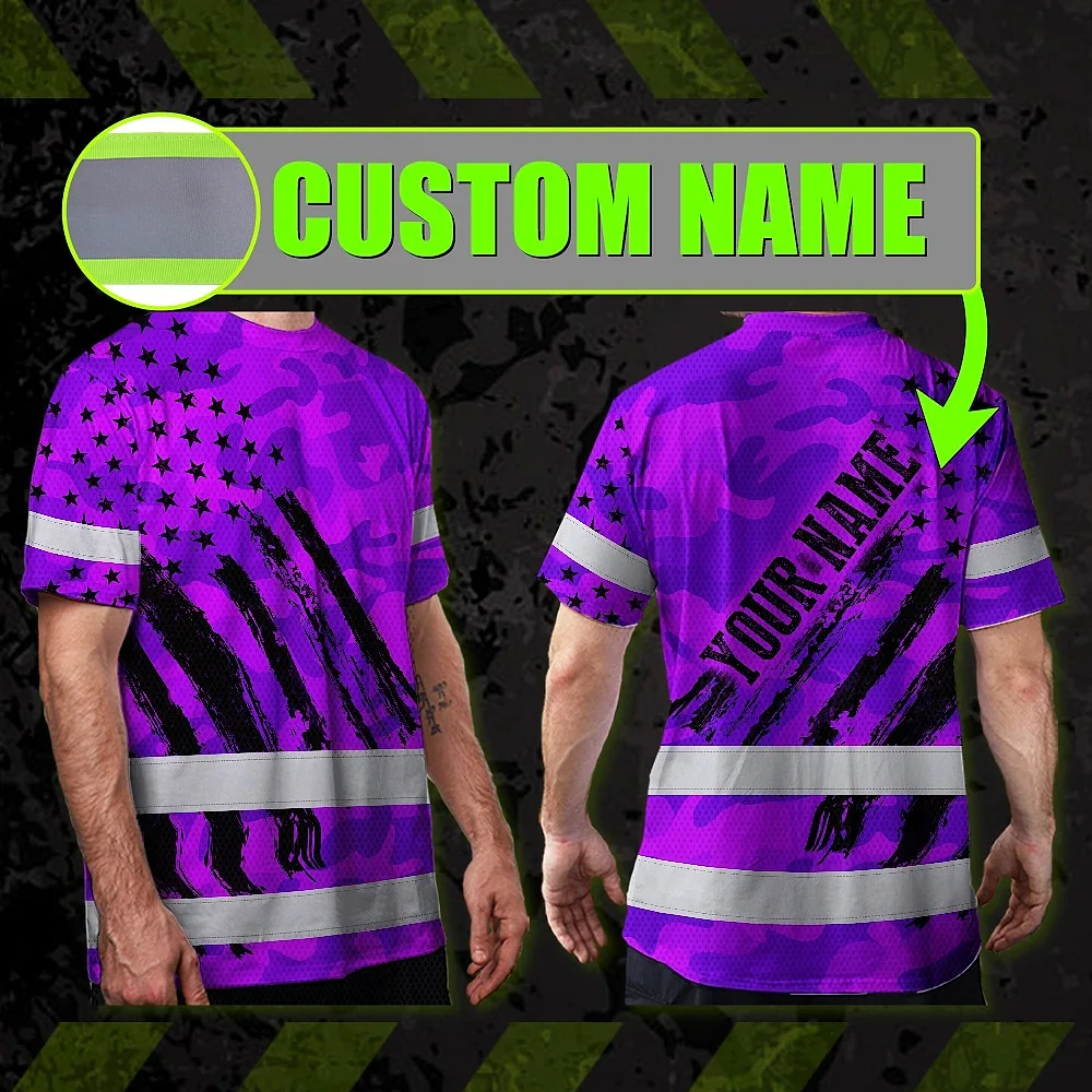Hi Vis Shirt Reflective Tapes Camo Violet Neon US Flag Custom Name Safety Workwear