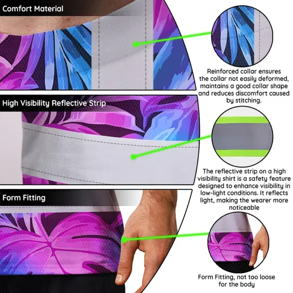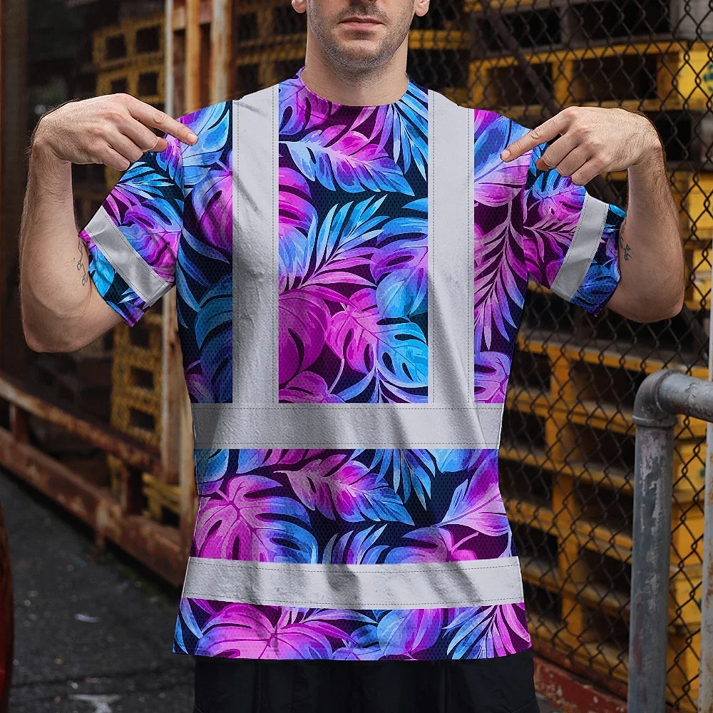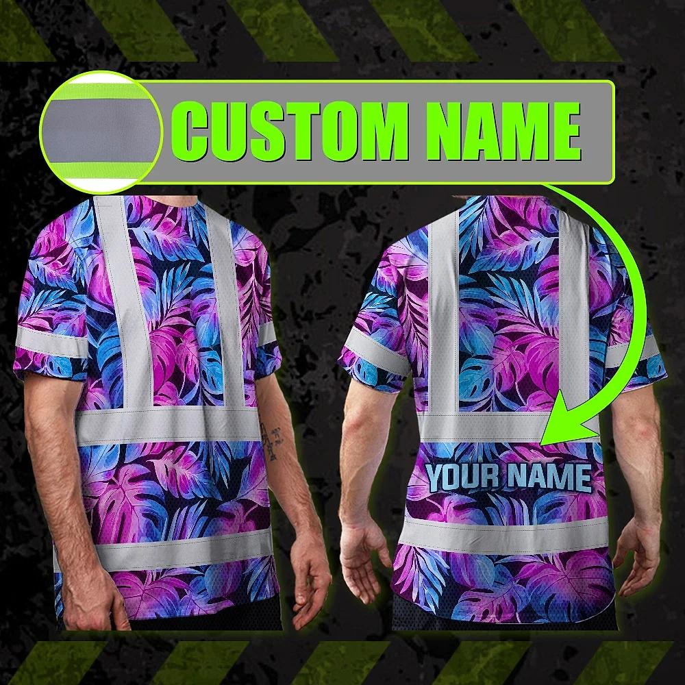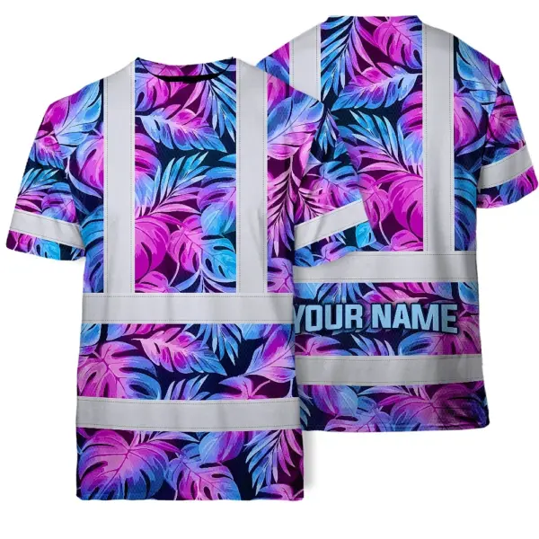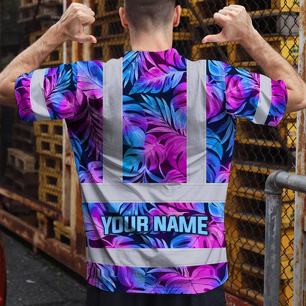 Hi Vis Shirt Reflective Tapes Gradient Blue Violet Custom Name Safety Workwear For Workers, Truckers, Operators