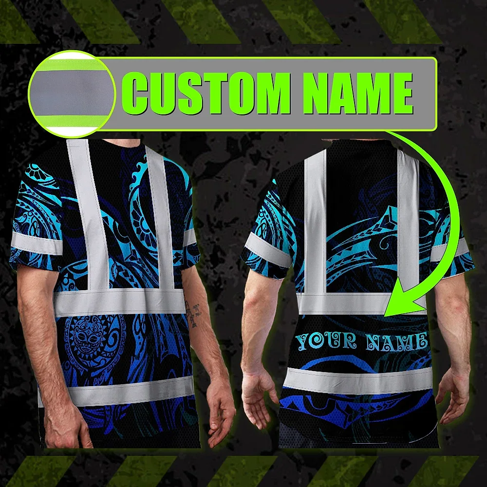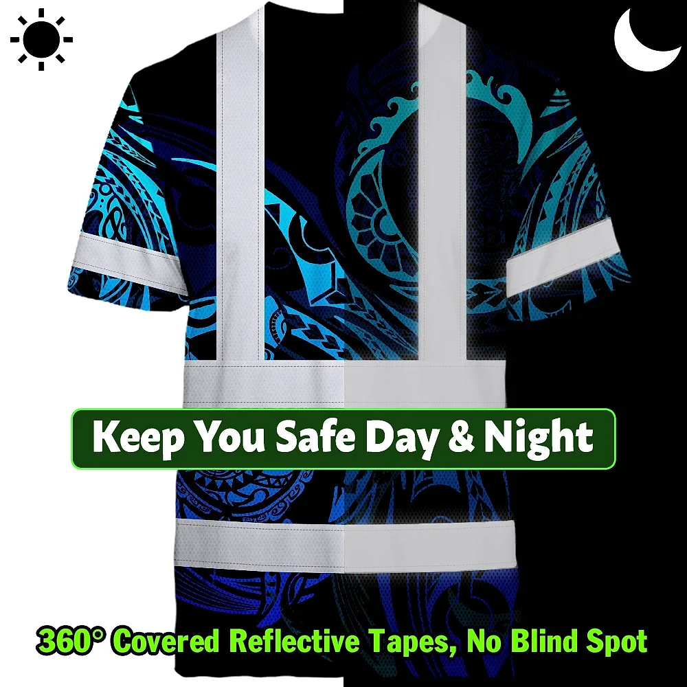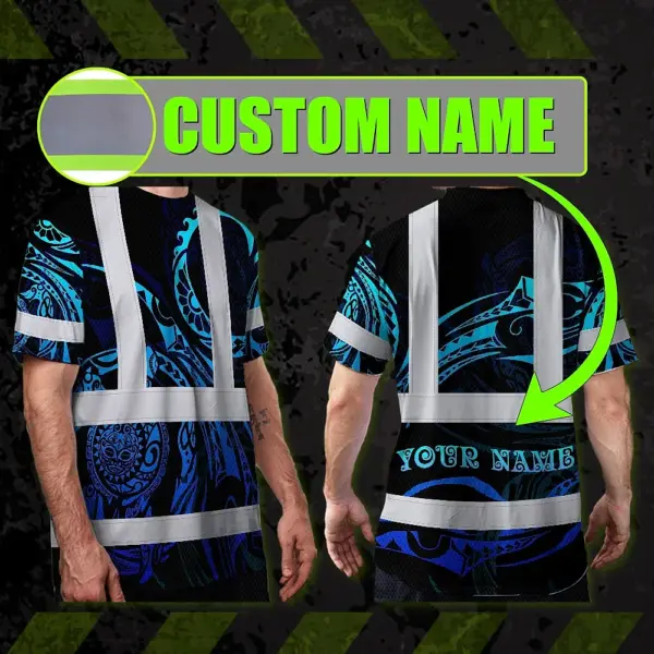 Hi Vis Shirt Reflective Tapes Gradient Turtle Hawaiian Polynesian Tribal Custom Name