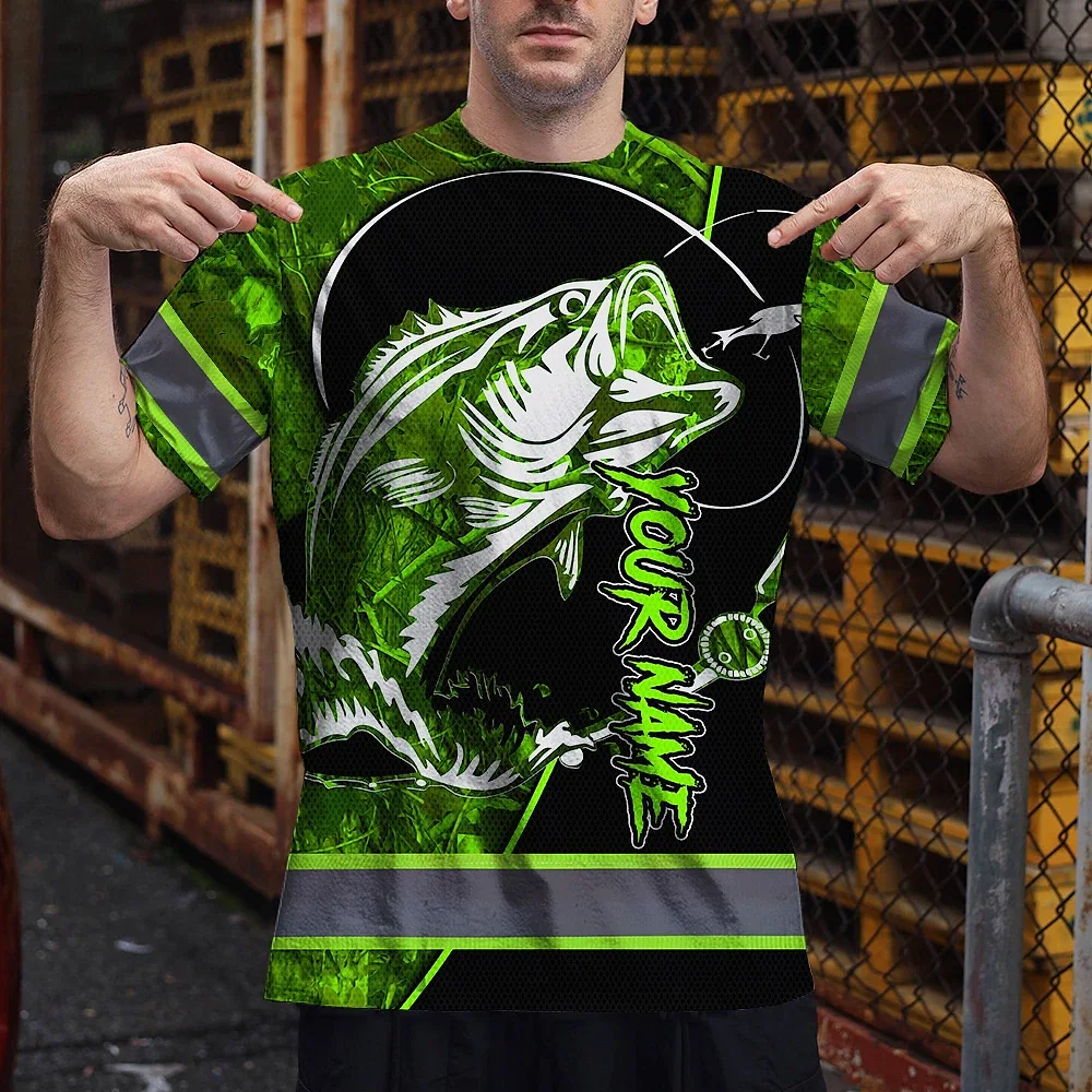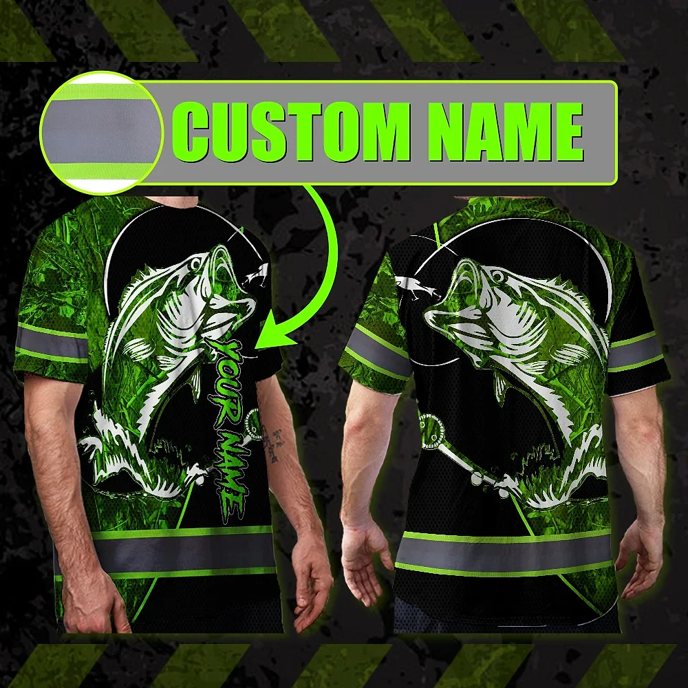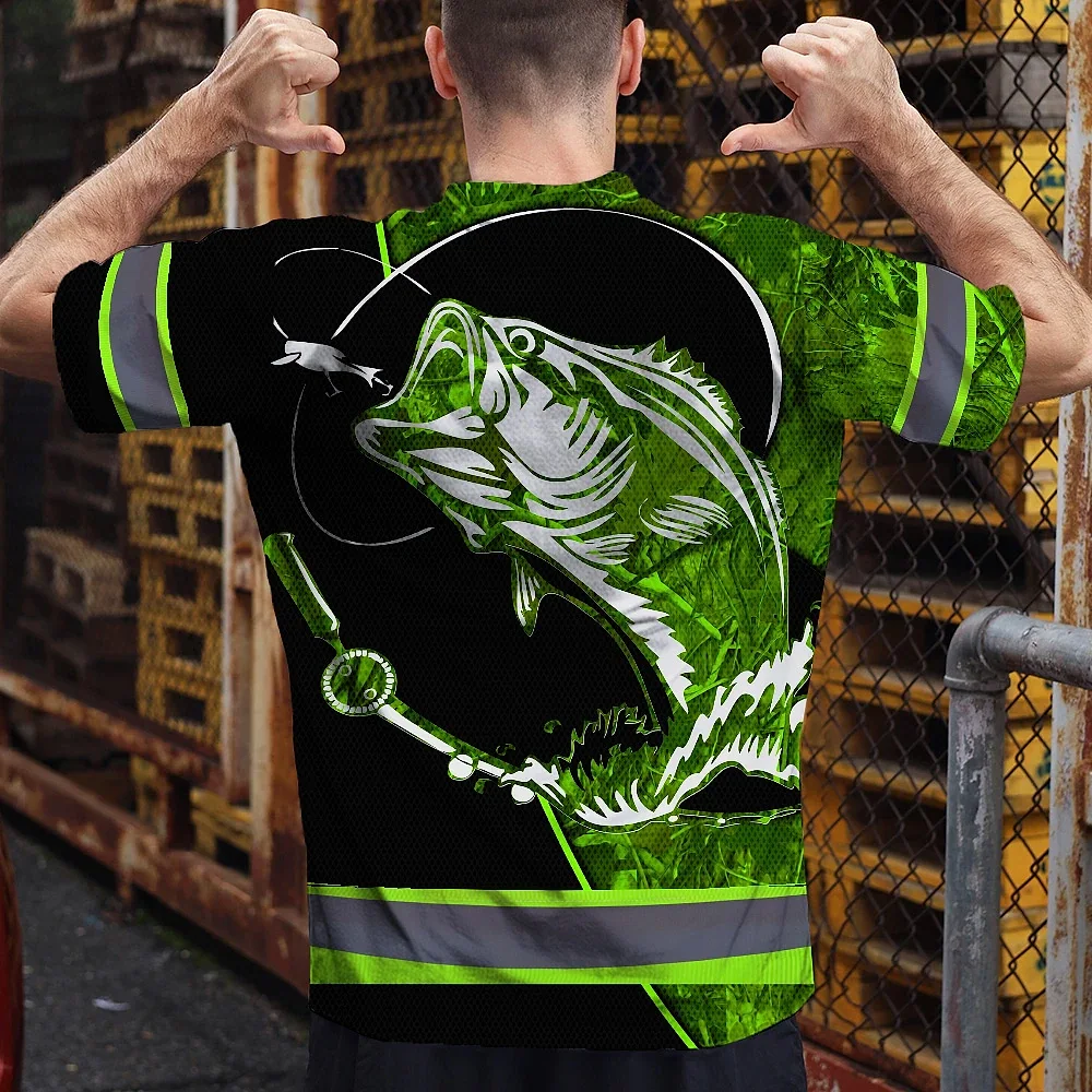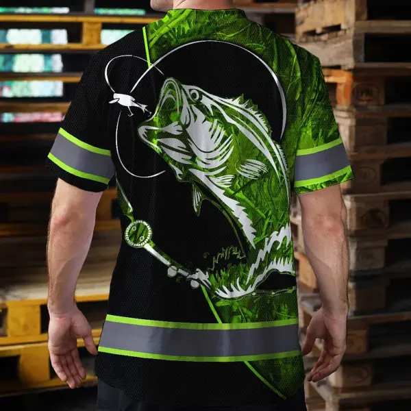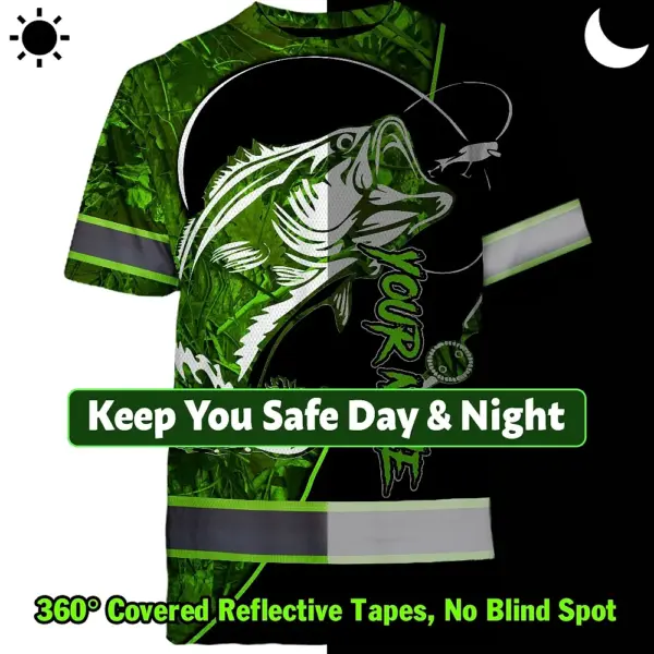 Hi Vis Shirt Reflective Tapes Green Bass Fish Fishing Safety Workwear For Fishing Lovers Workers, Runners, Cyclists, Trucker, Operator, Patriotic